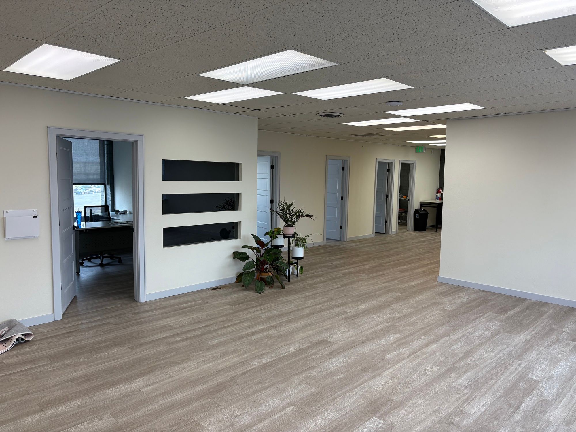Four fully finished office suites with shared common areas.