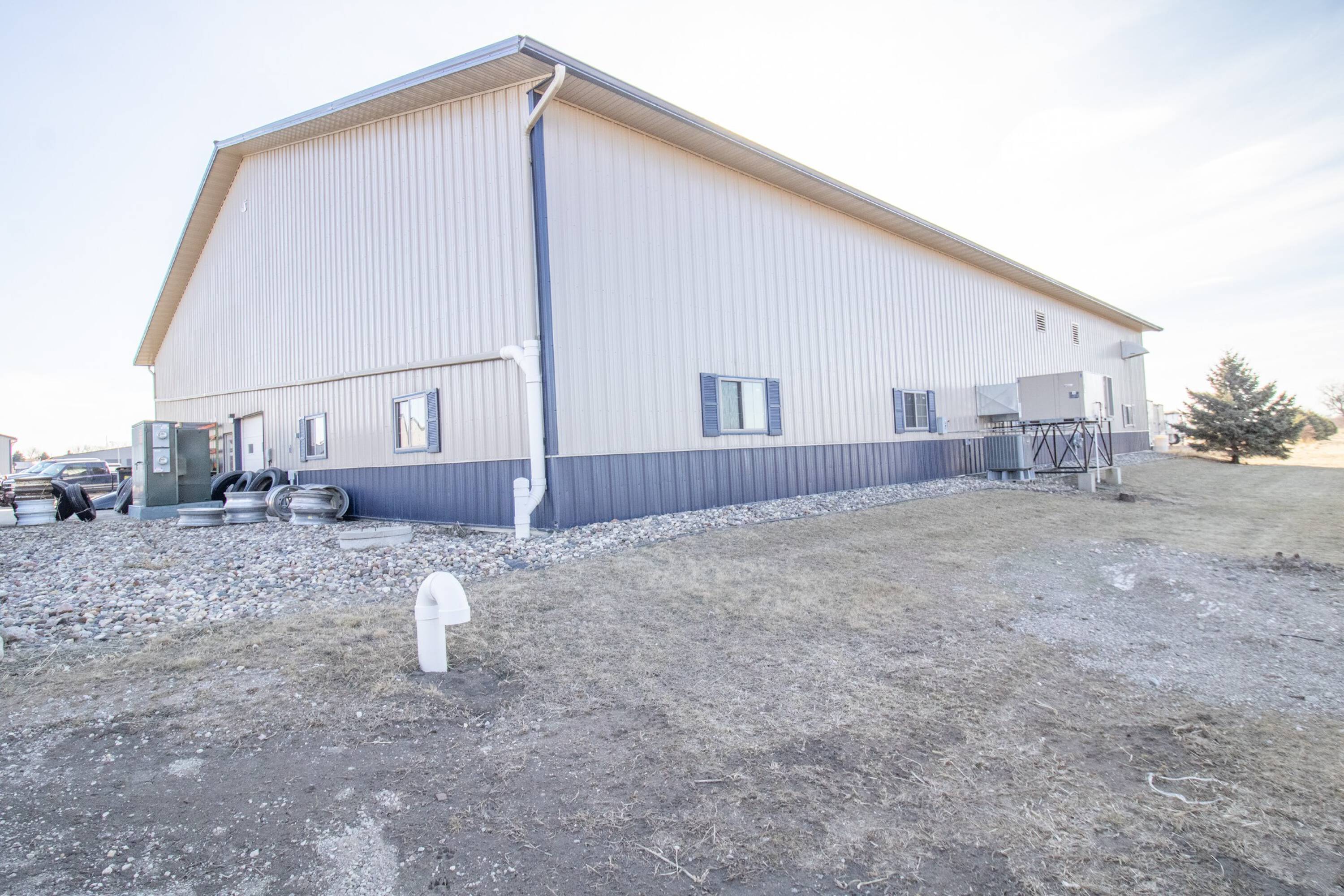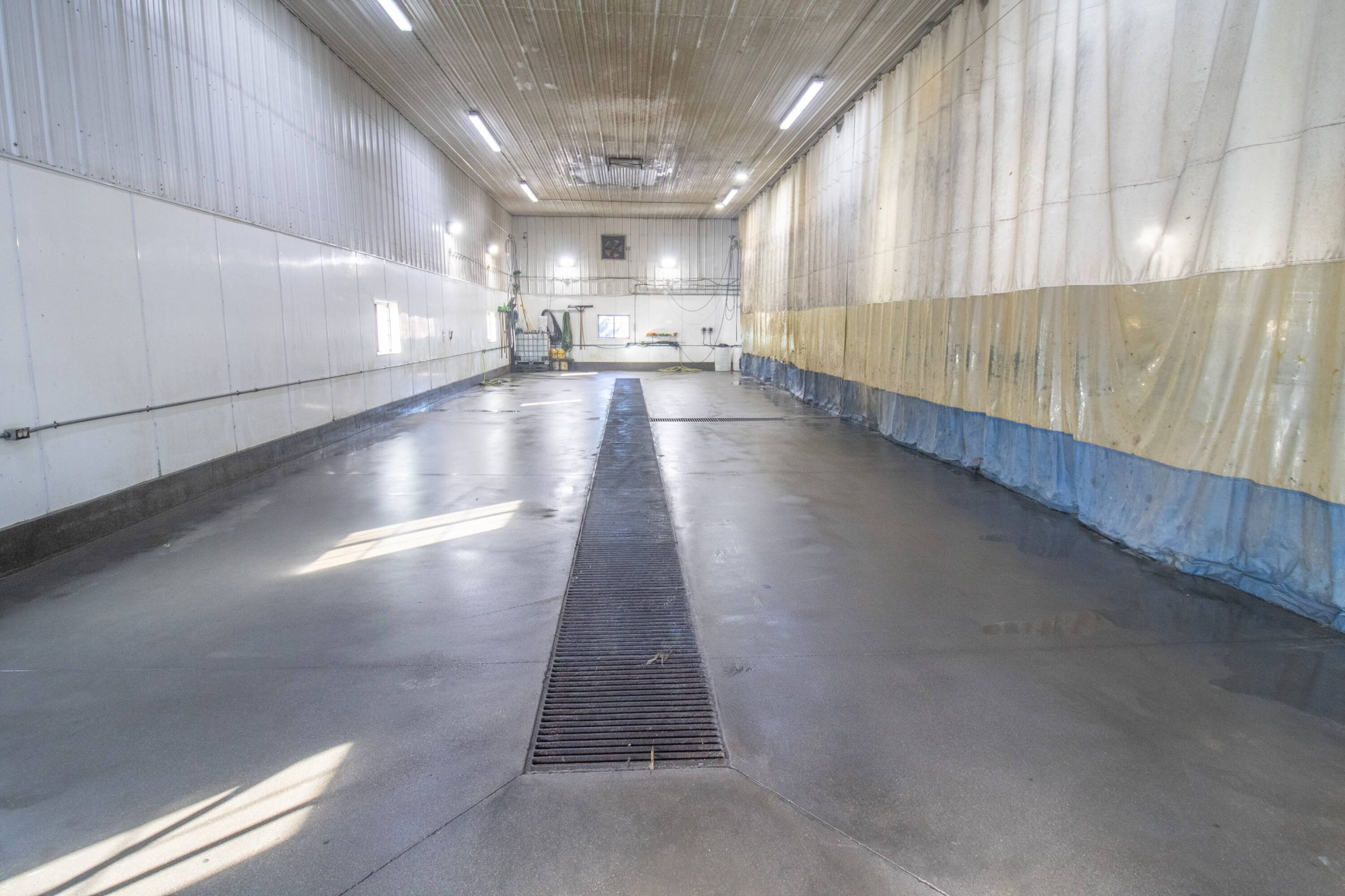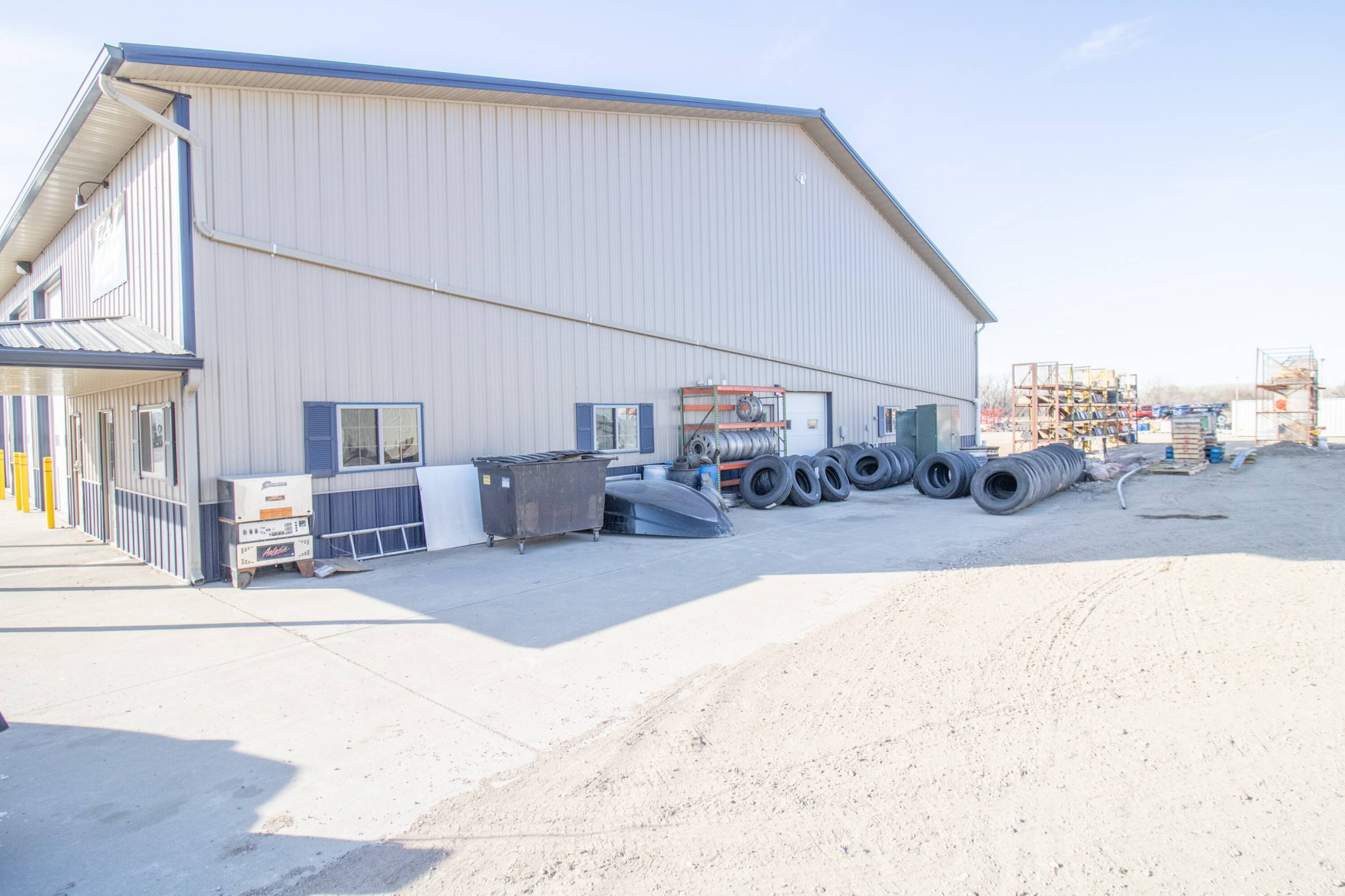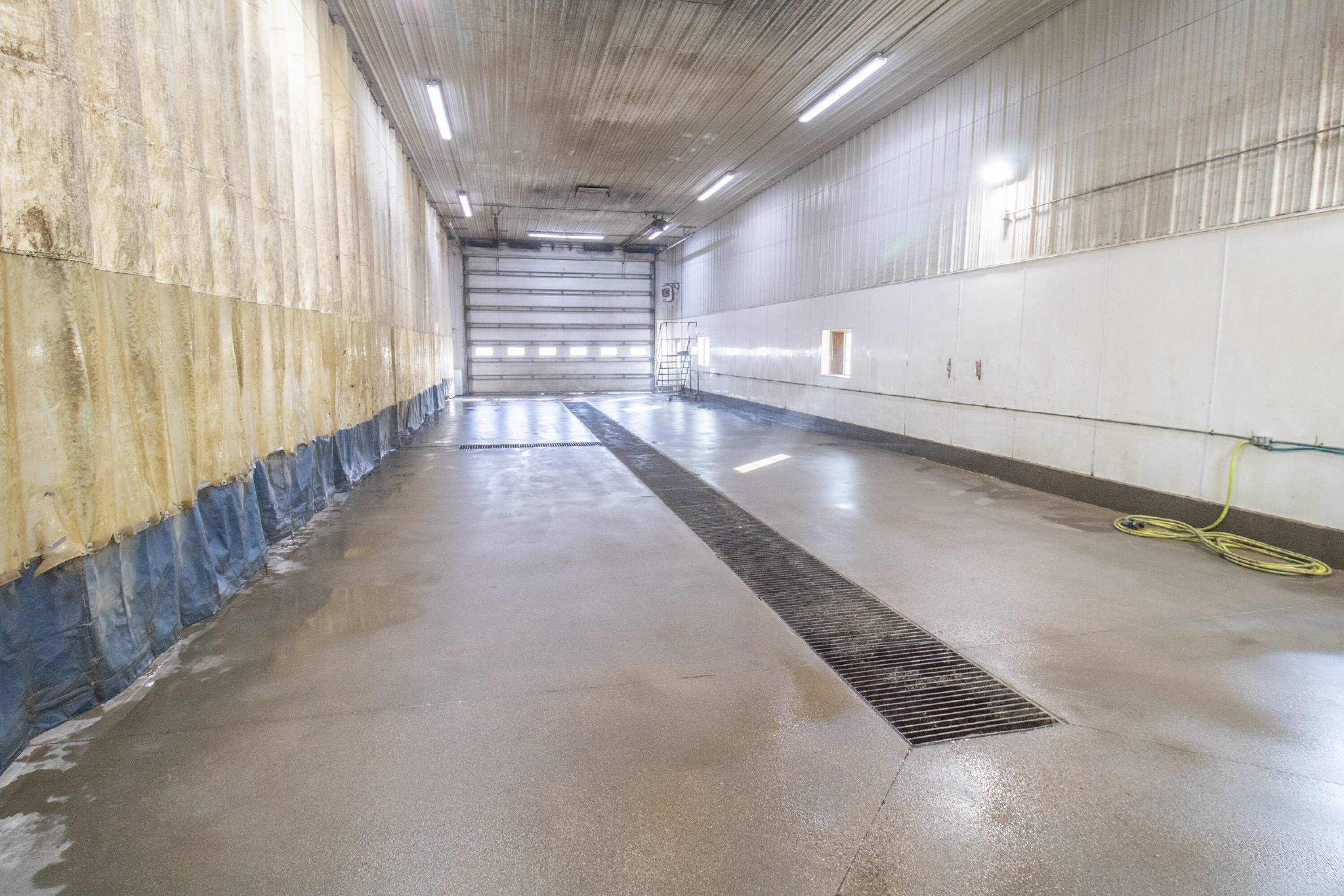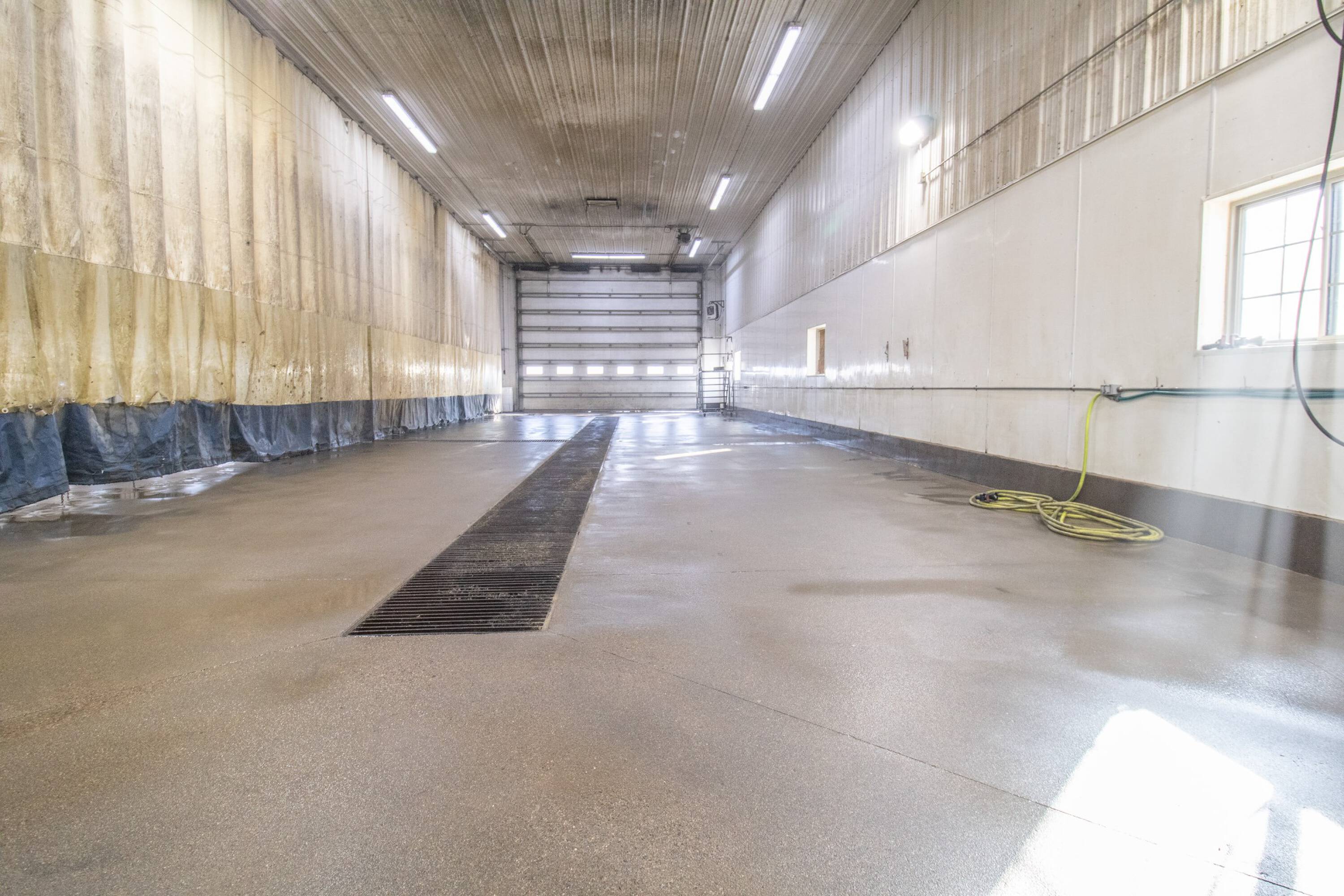 Commercial building with office, wash bay, and rainwater collection.
