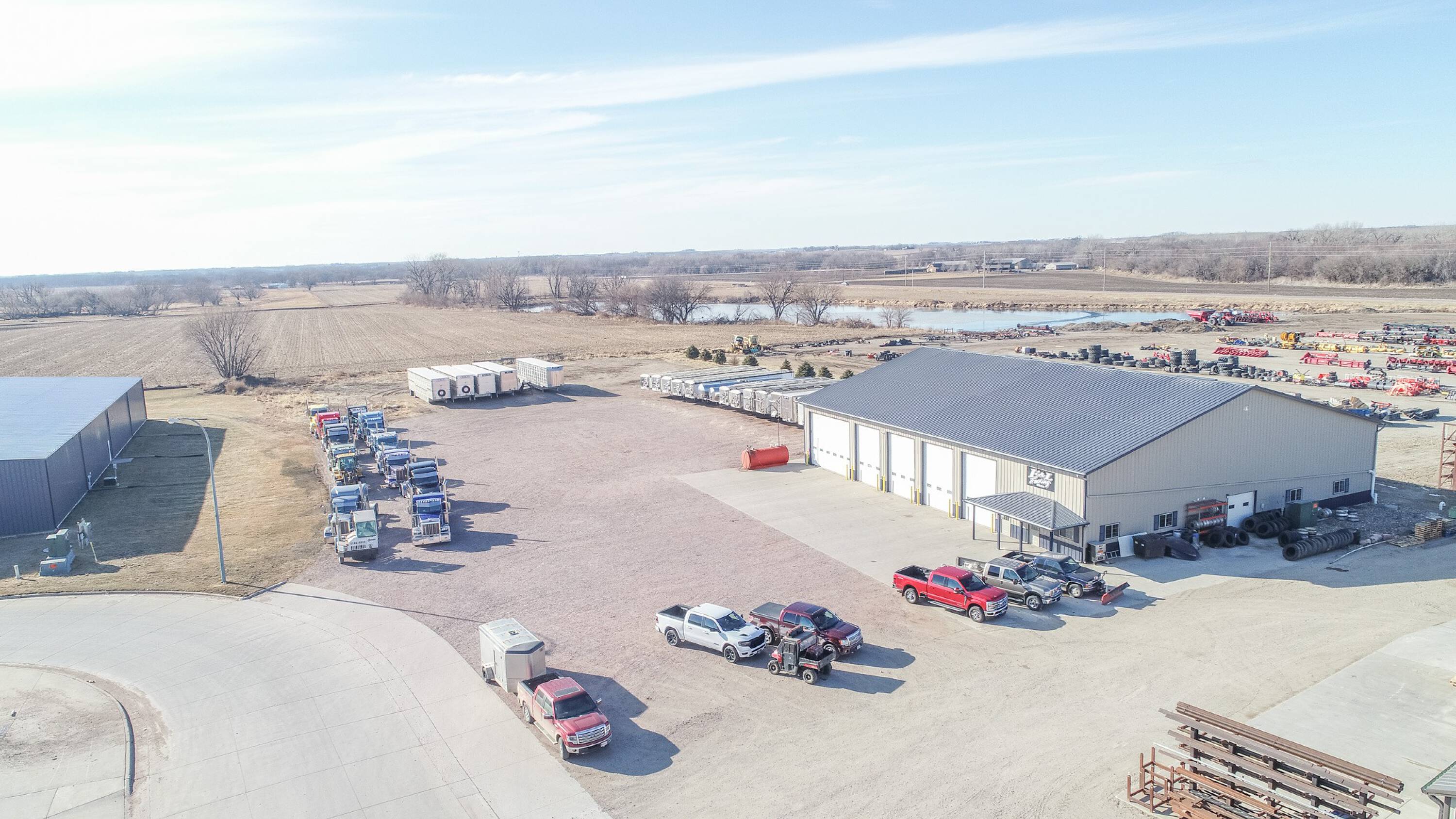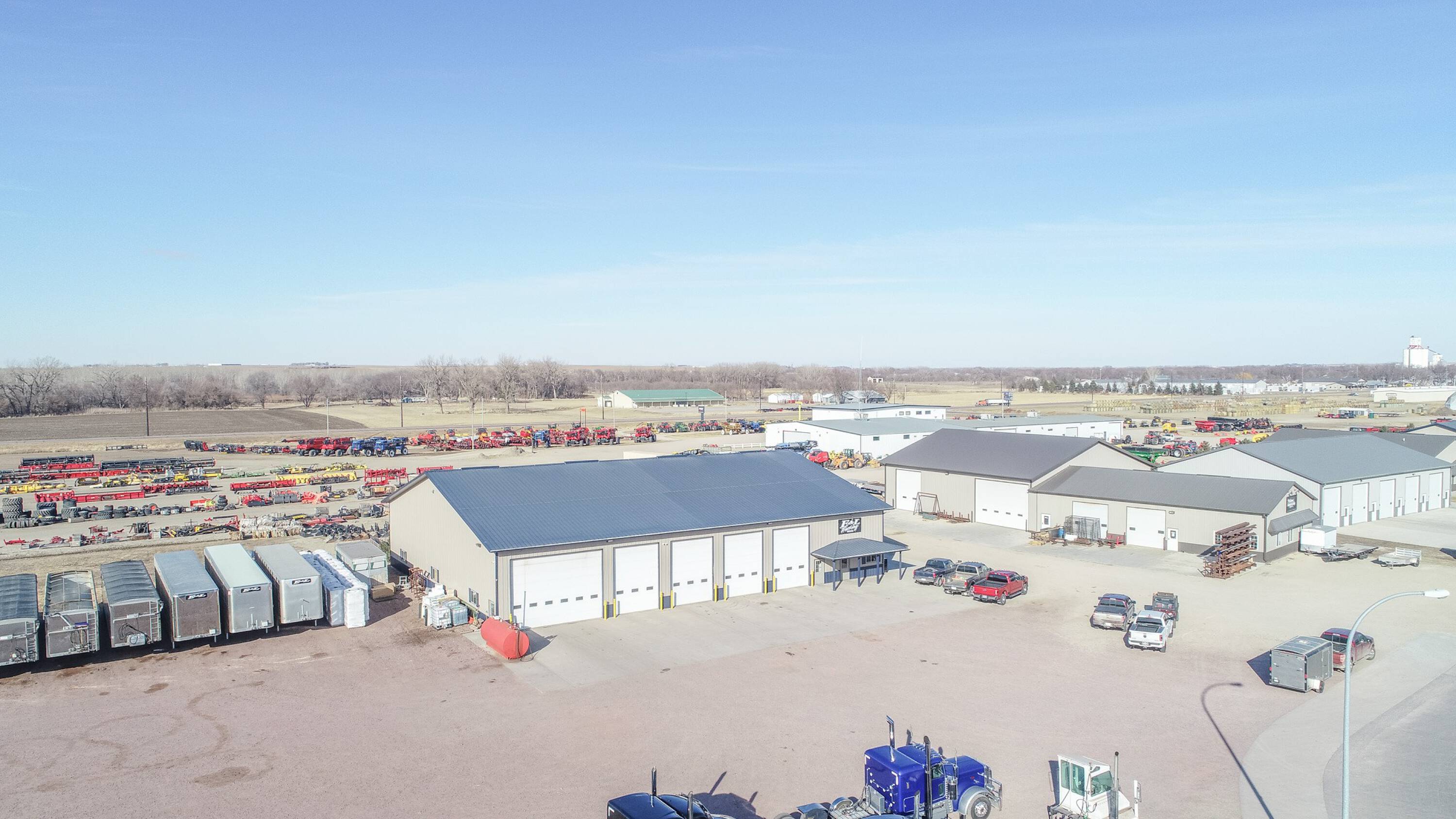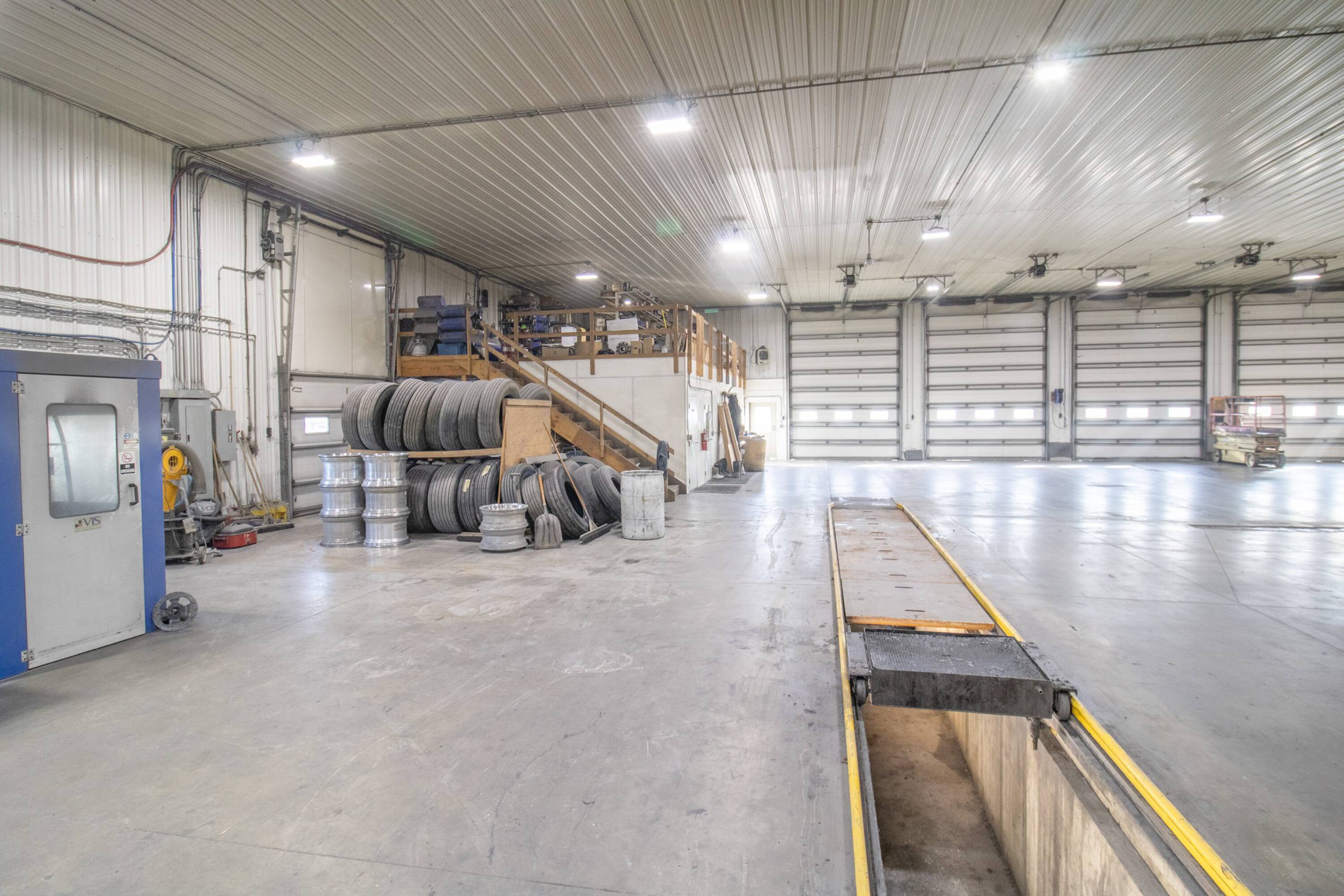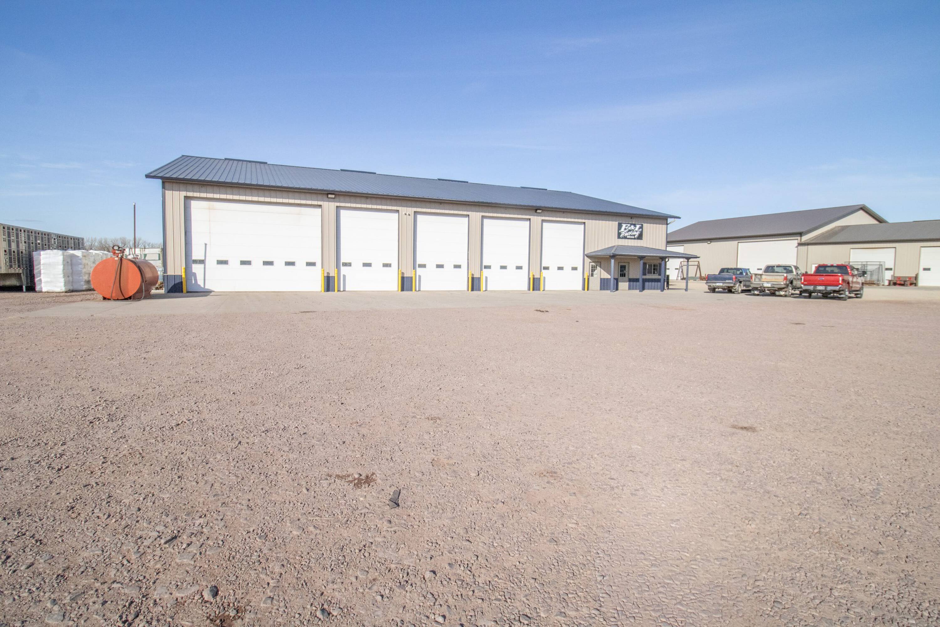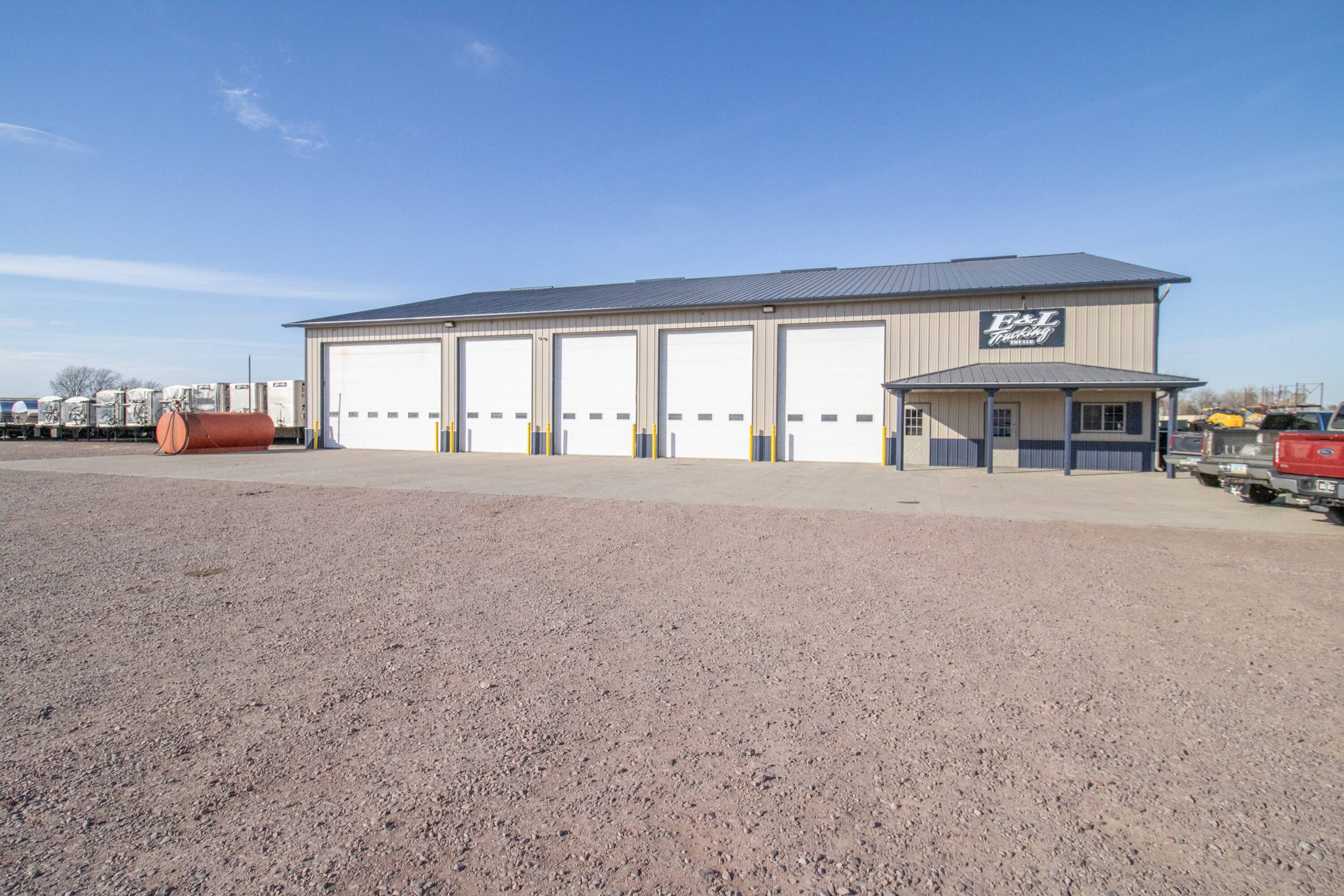 Commercial building with office, wash bay, and rainwater collection.