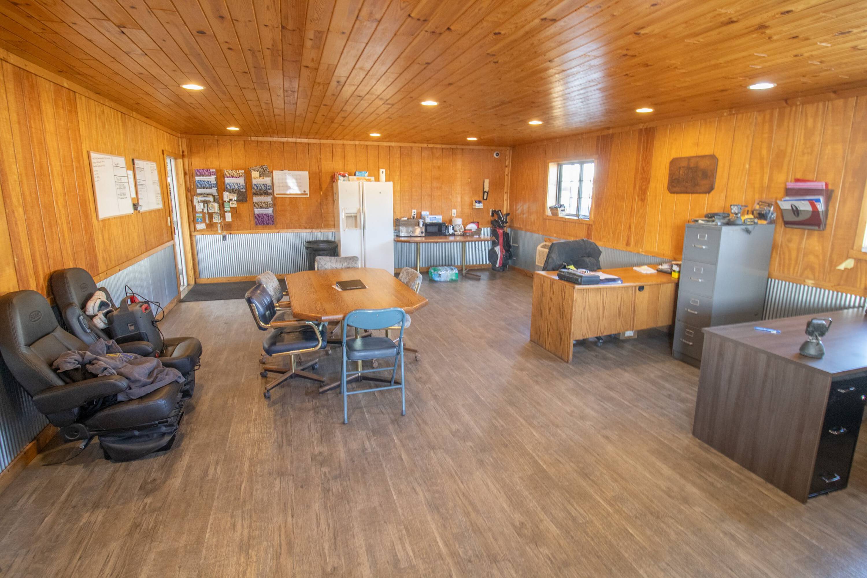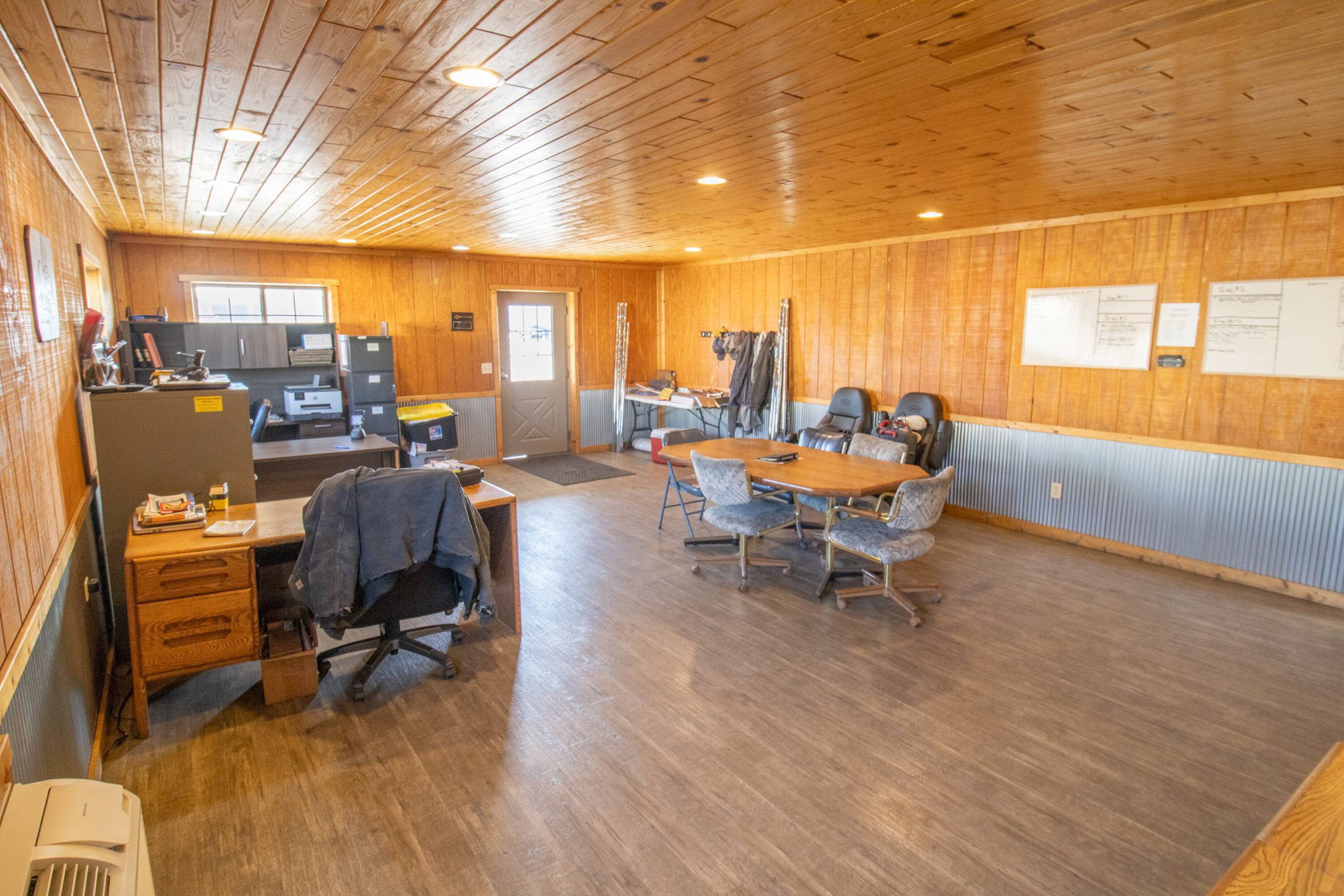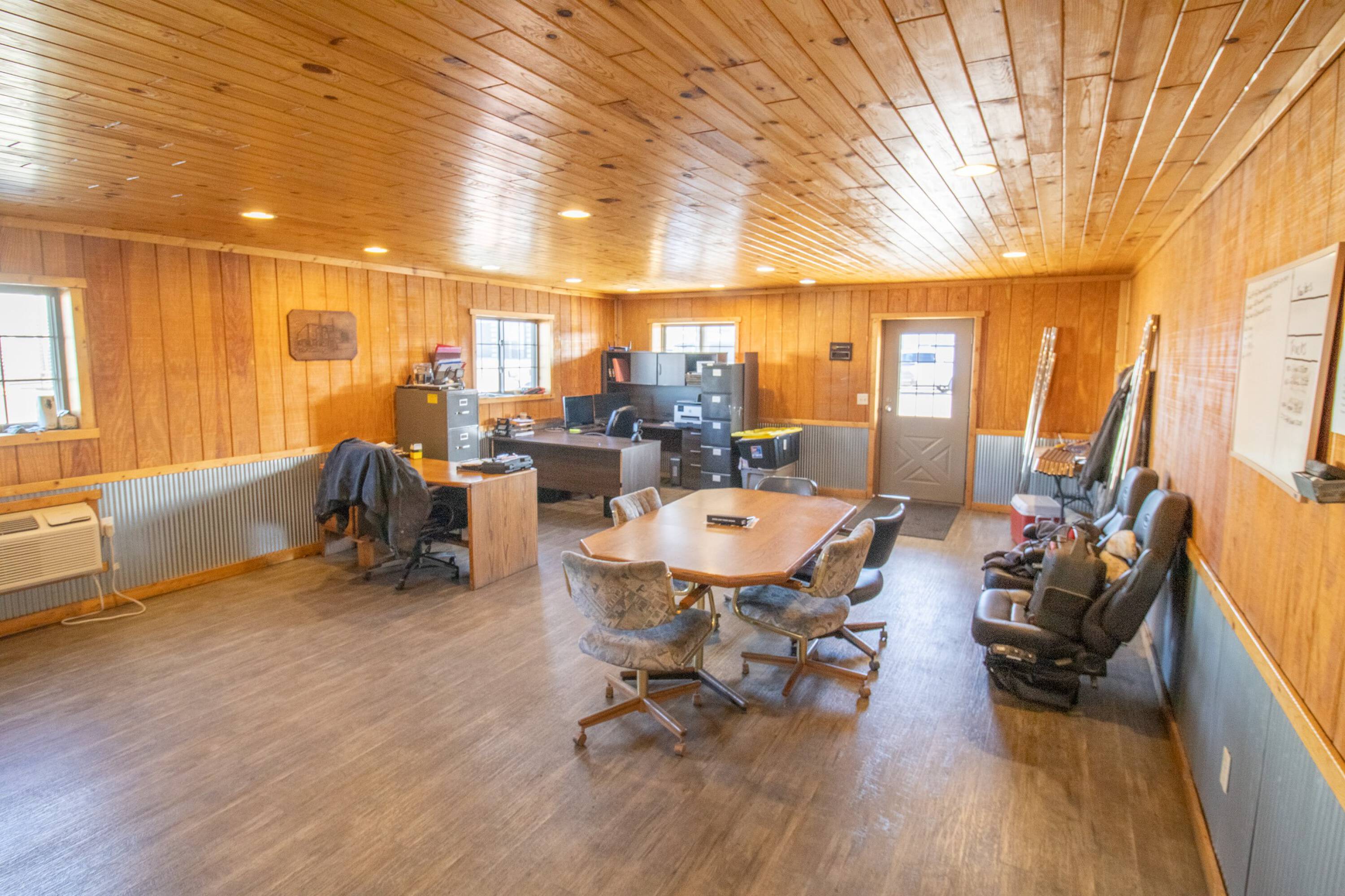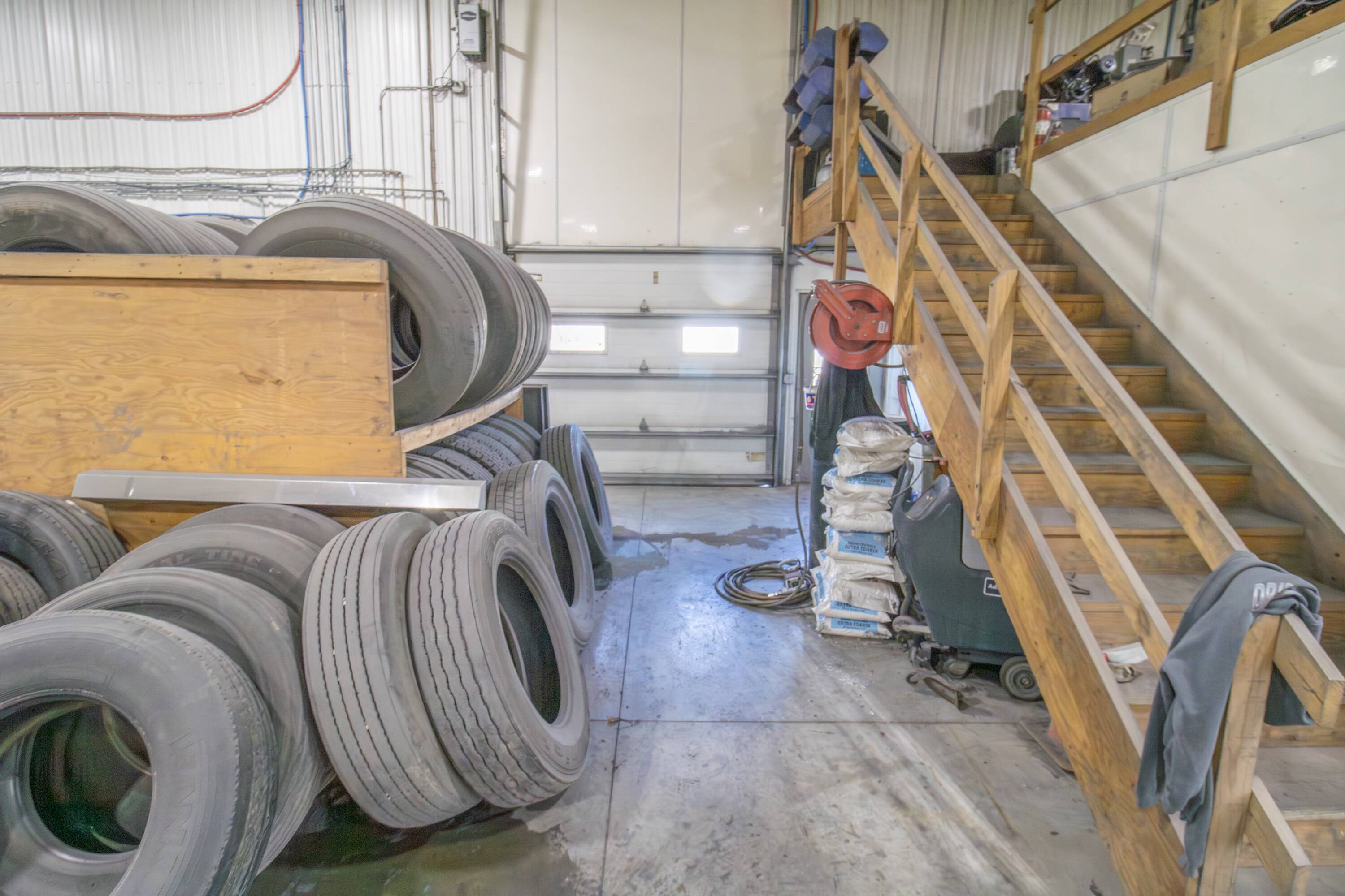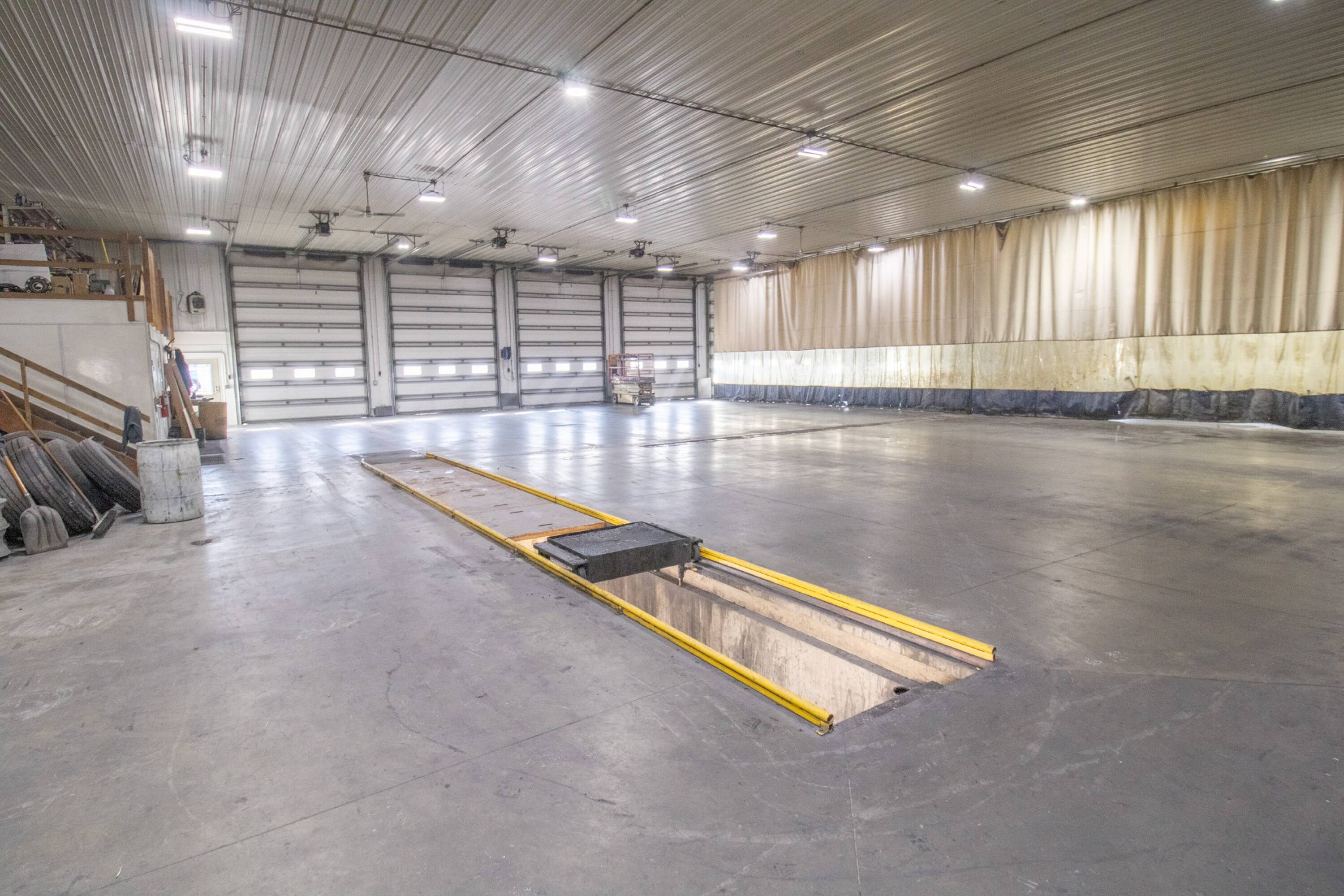 Commercial building with office, wash bay, and rainwater collection.