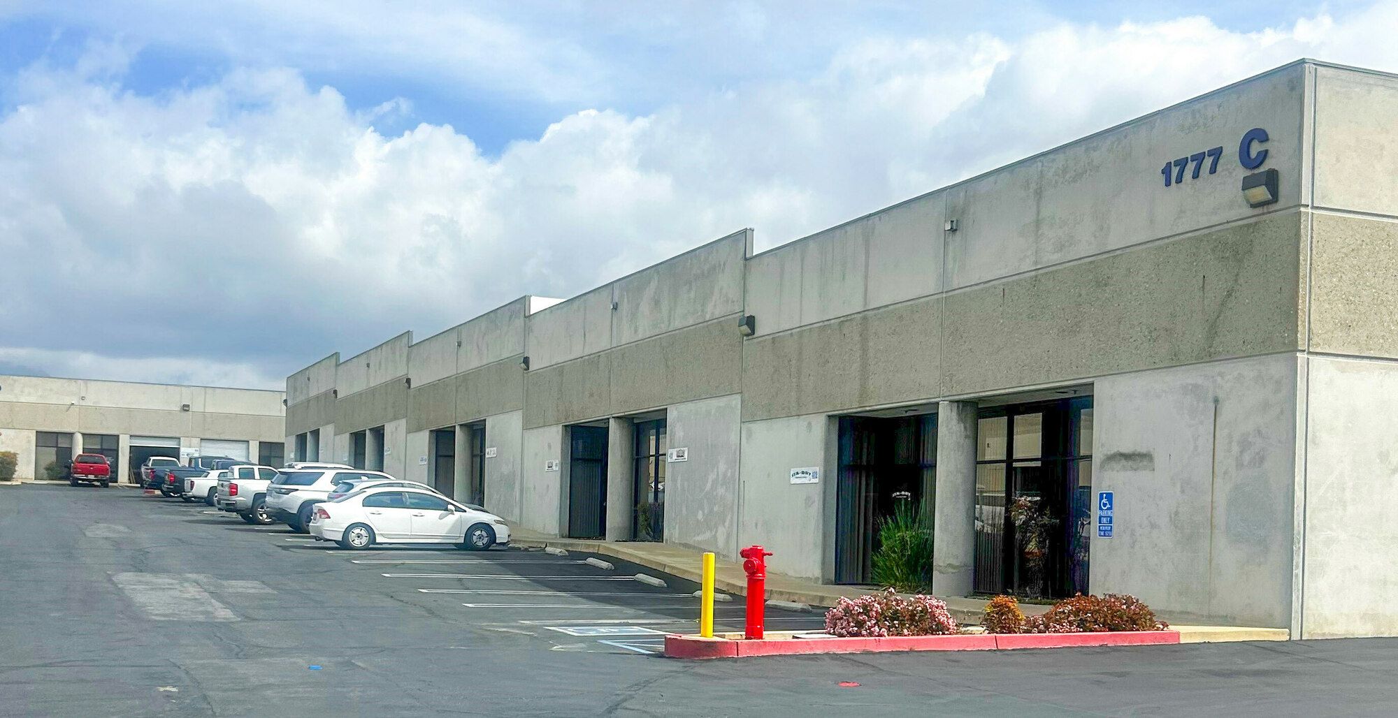 Multi-tenant warehouse with 10'x12' ground-level door and ample parking.