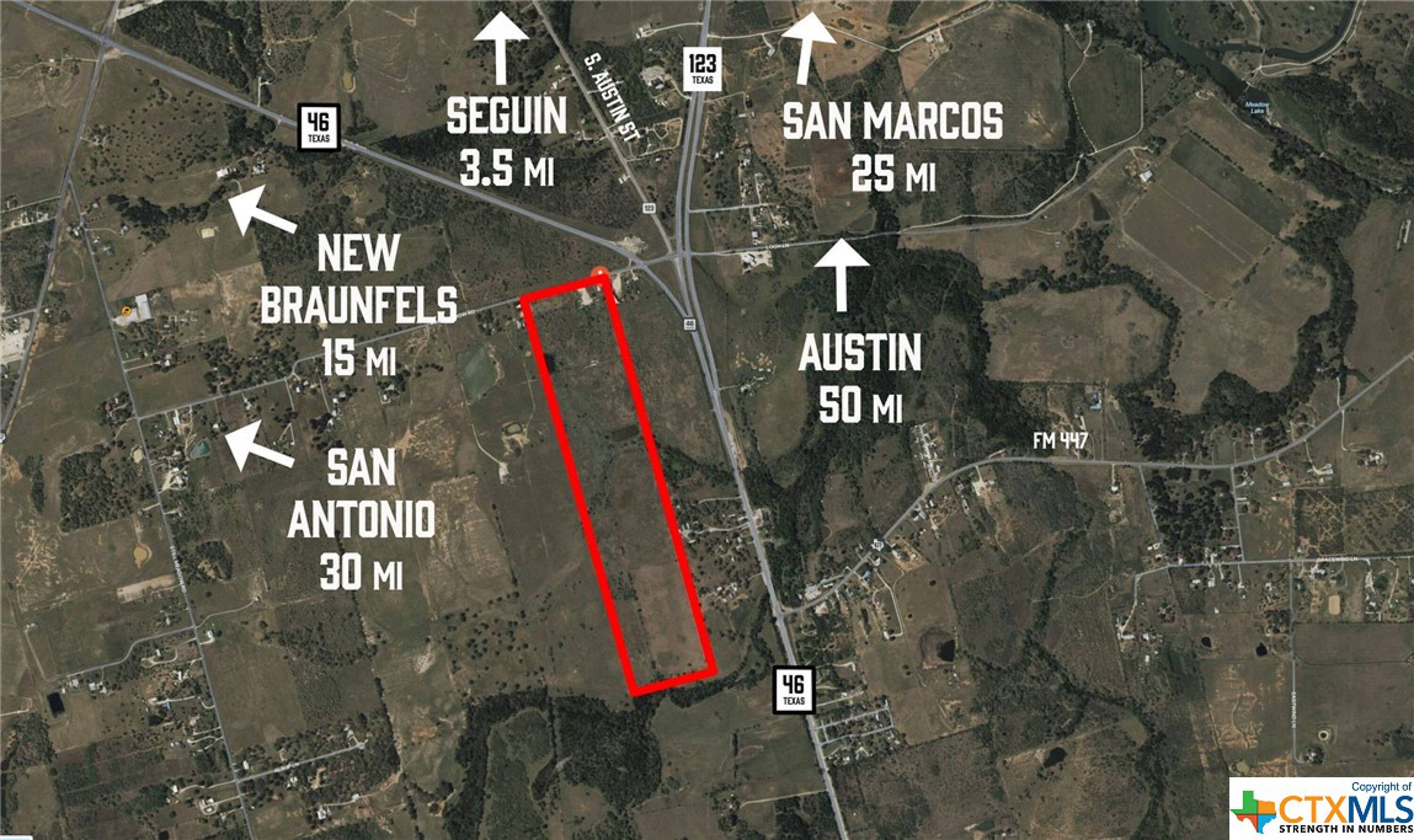 93.76 acres near Seguin, TX, with development potential.