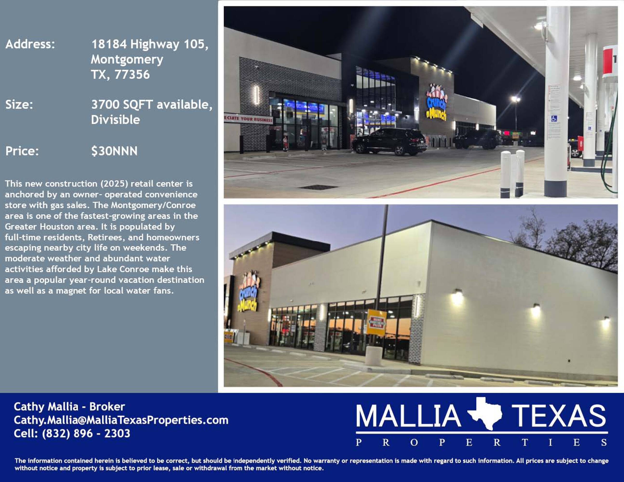 New retail center in Montgomery/Conroe area available for lease.