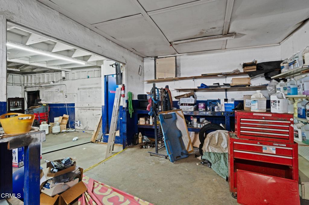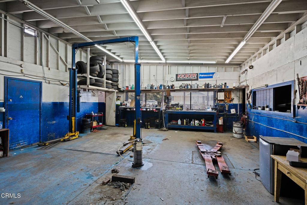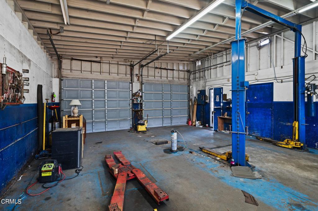 Automotive shop with residential units and development potential.