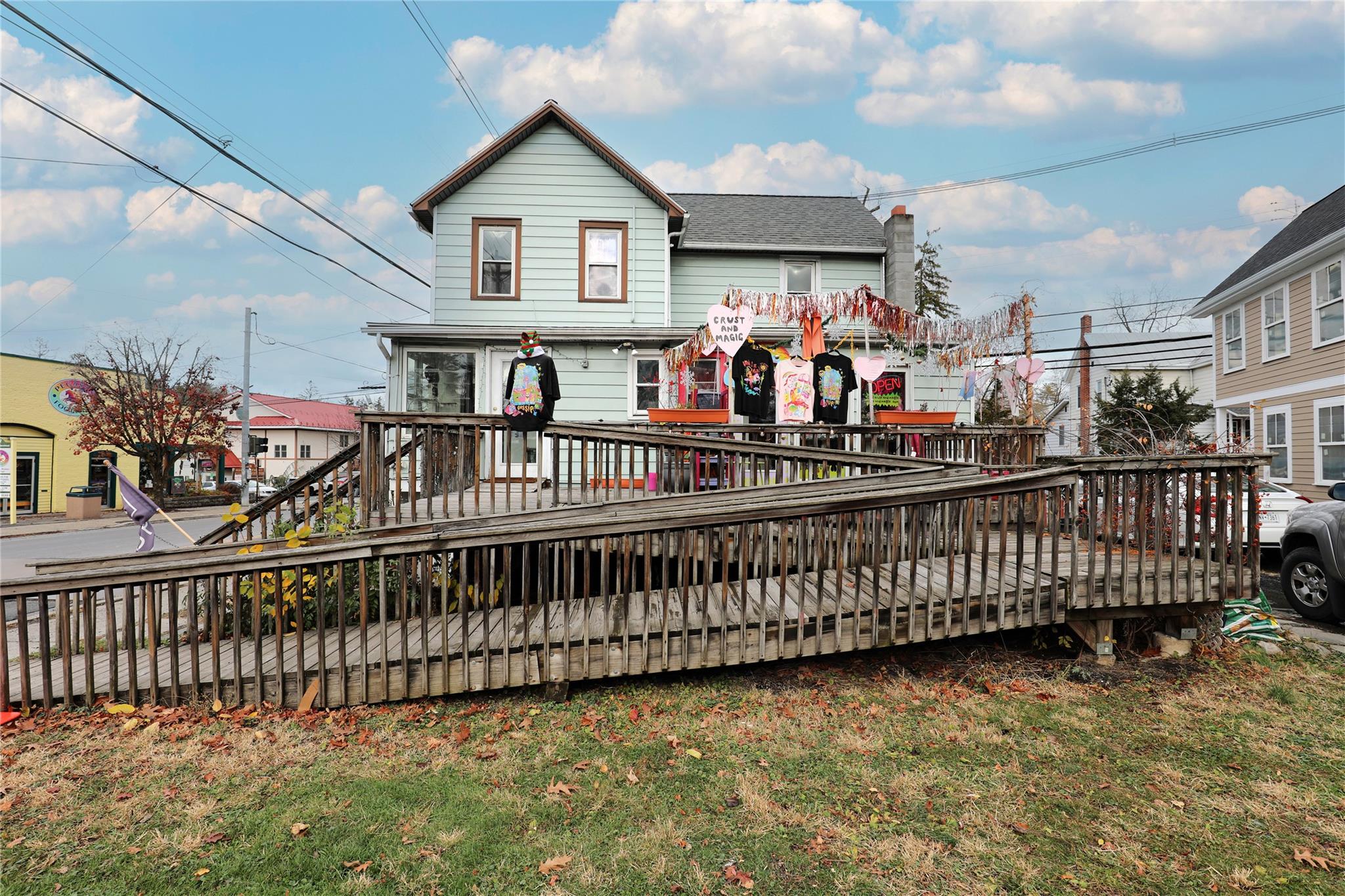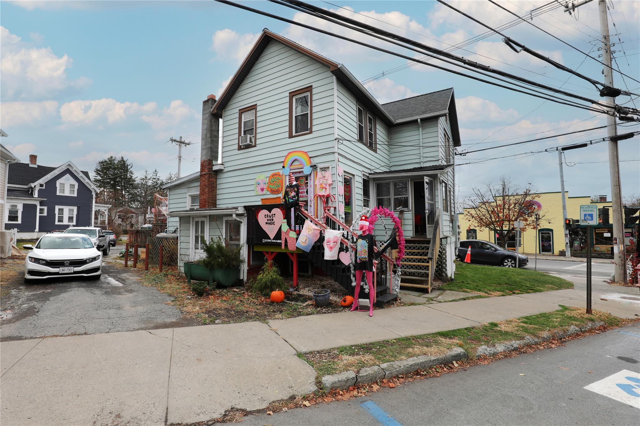 This property features: High‑visibility corner location in the heart of New Paltz, steps from shops, restaurants, and public transportation.; Combination of commercial (two retail spaces) and multi‑family (two apartment units) opportunities.; Two retail spaces with handicap accessibility and full baths.