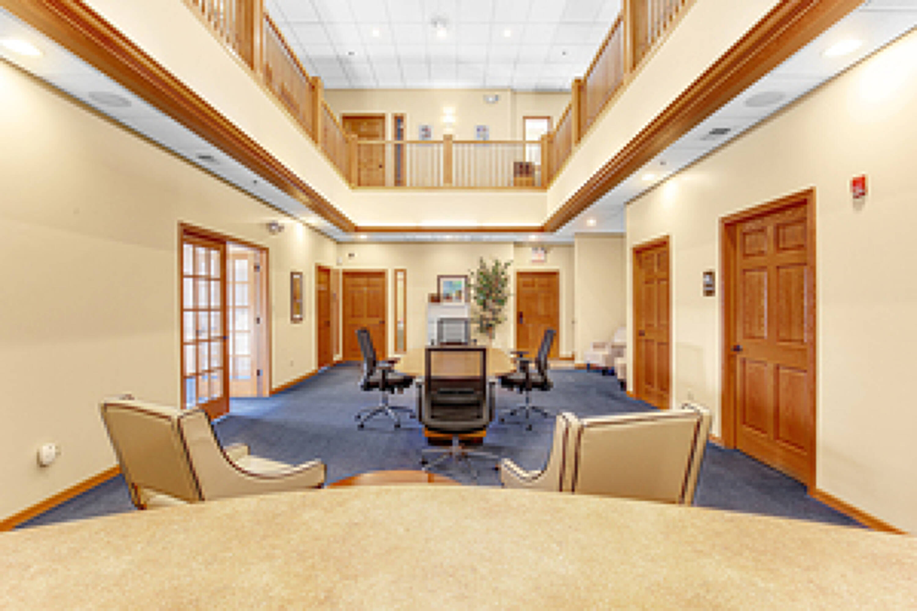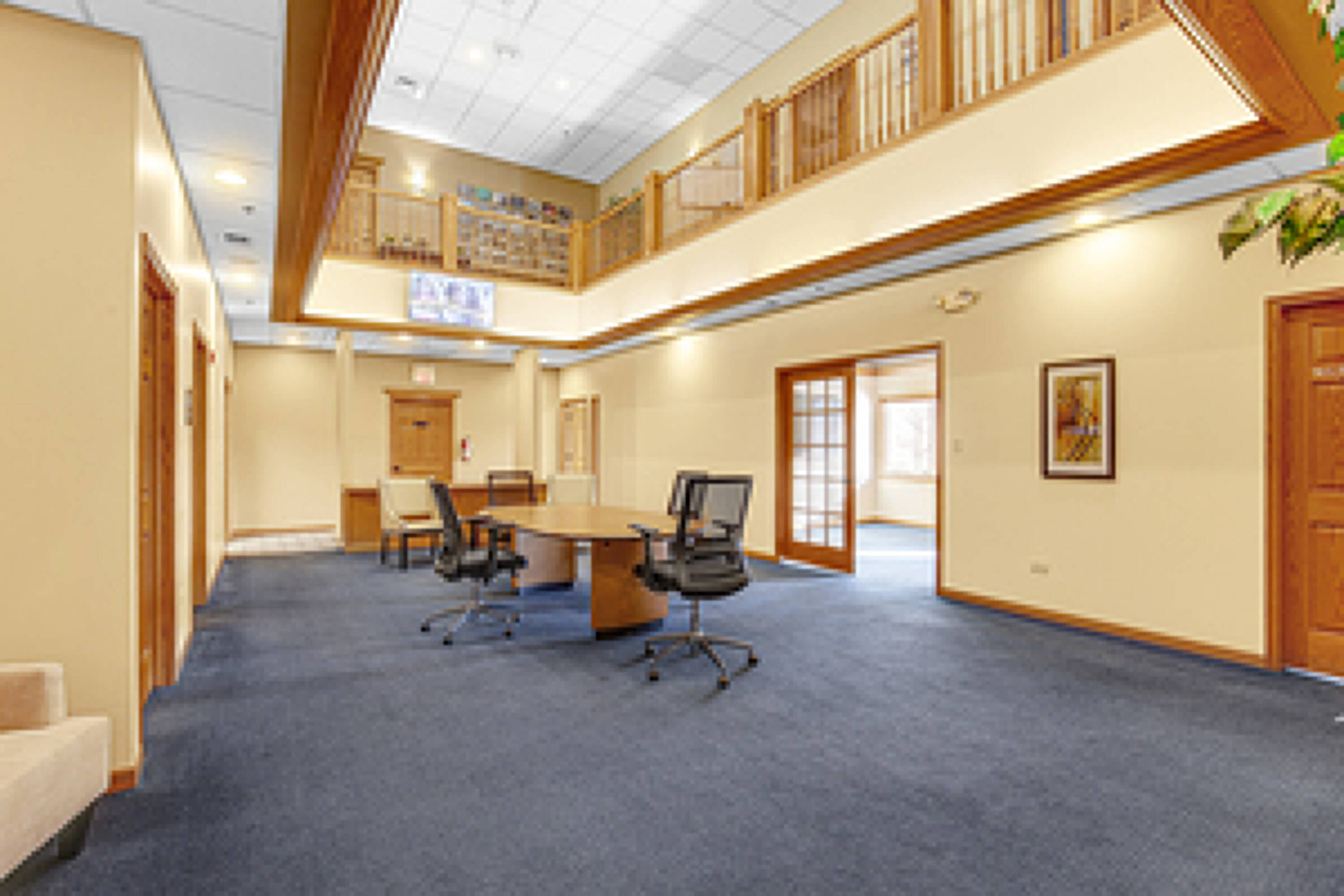 Professional office suites with shared common areas available for rent.