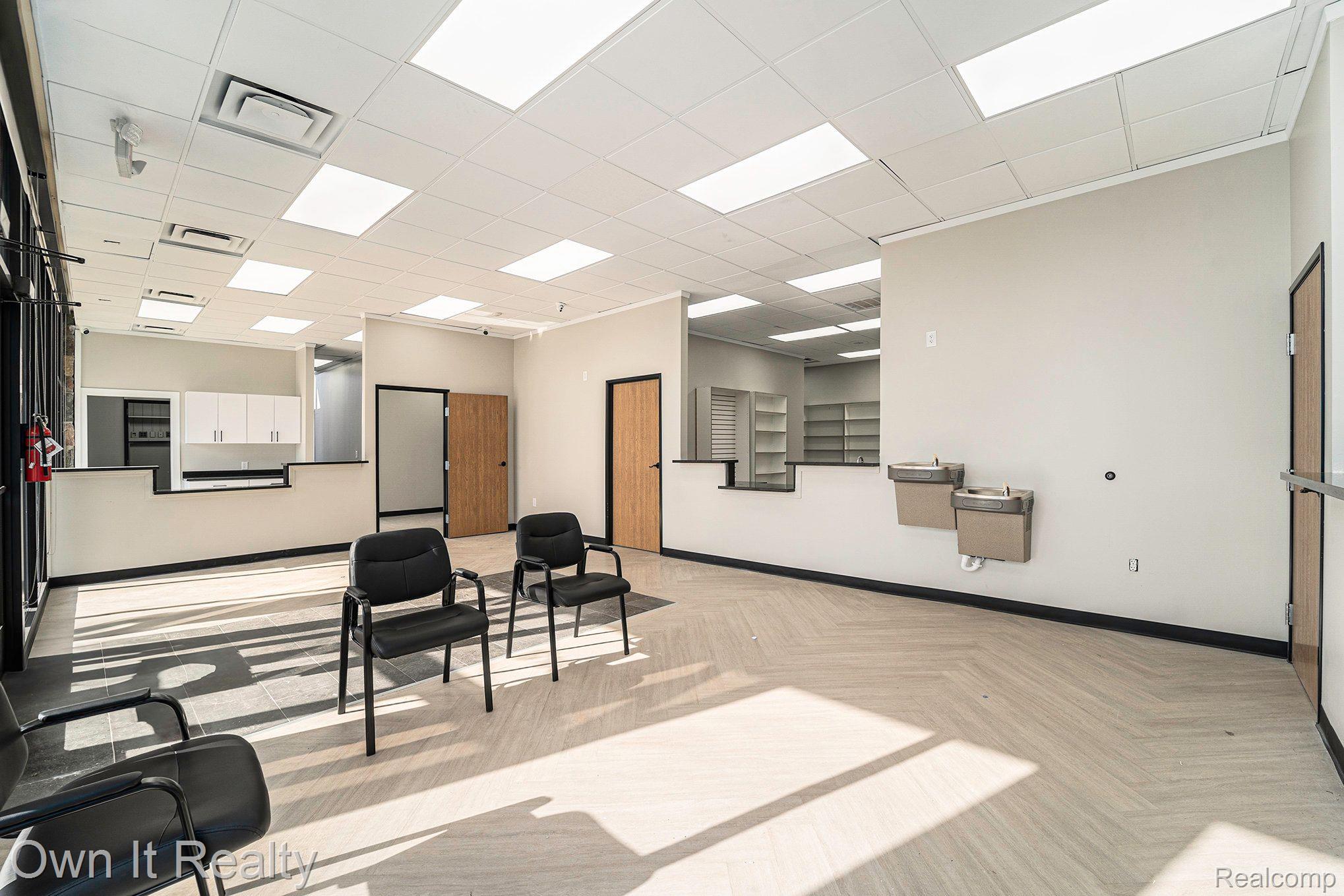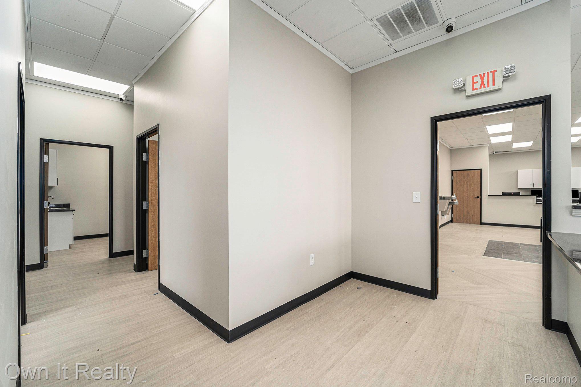 Renovated medical building unit with reception and exam rooms.