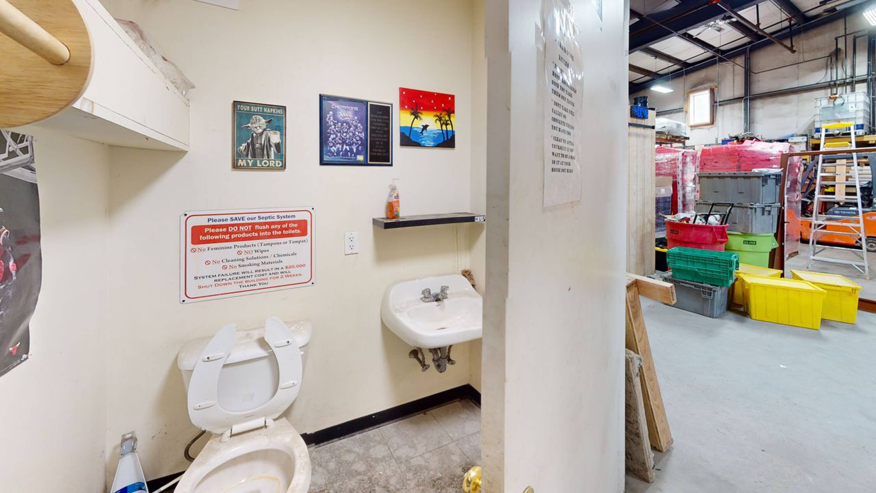 Mixed-use building with warehouse, retail, and office spaces for sale.