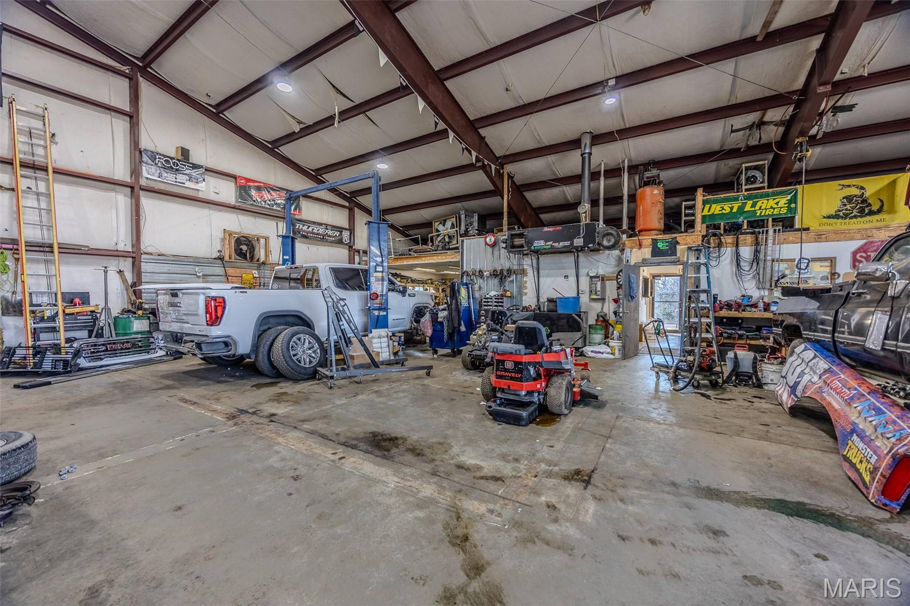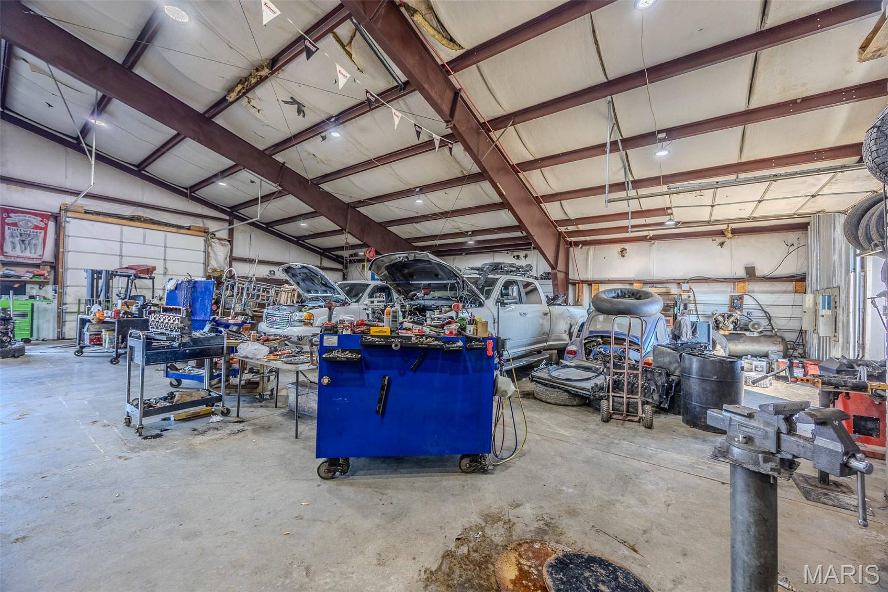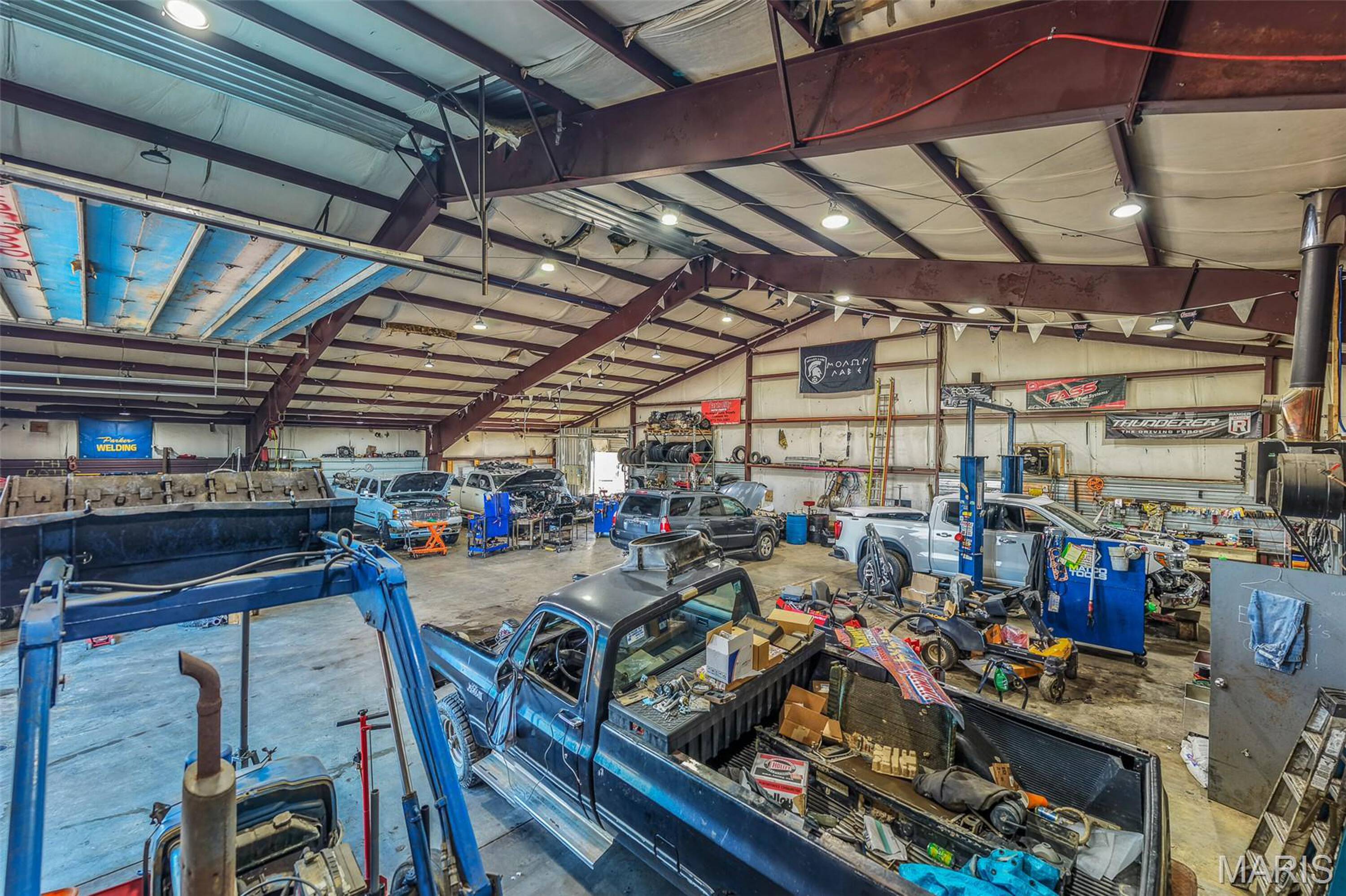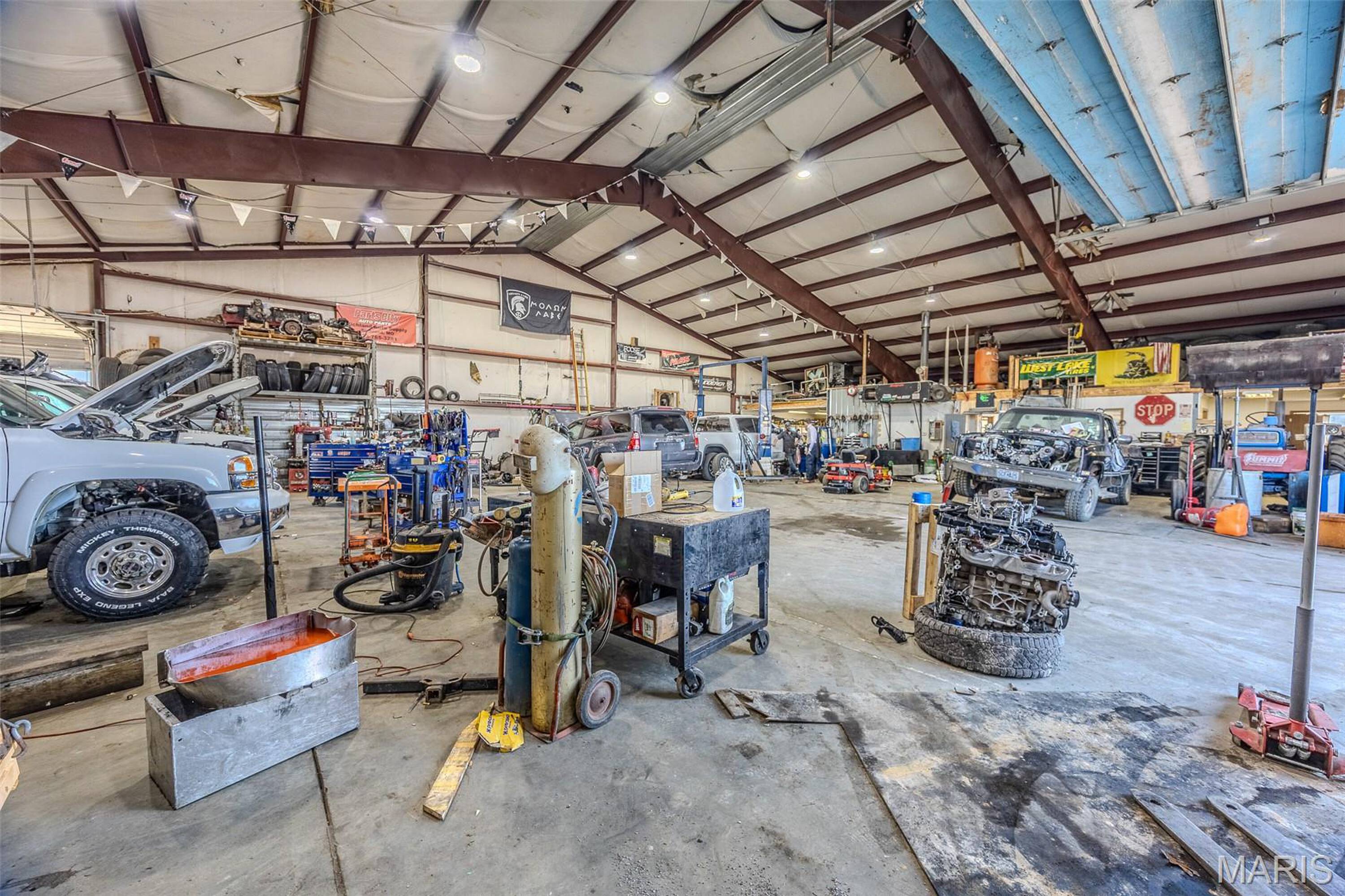 Auto shop with hydraulic car lift for sale.