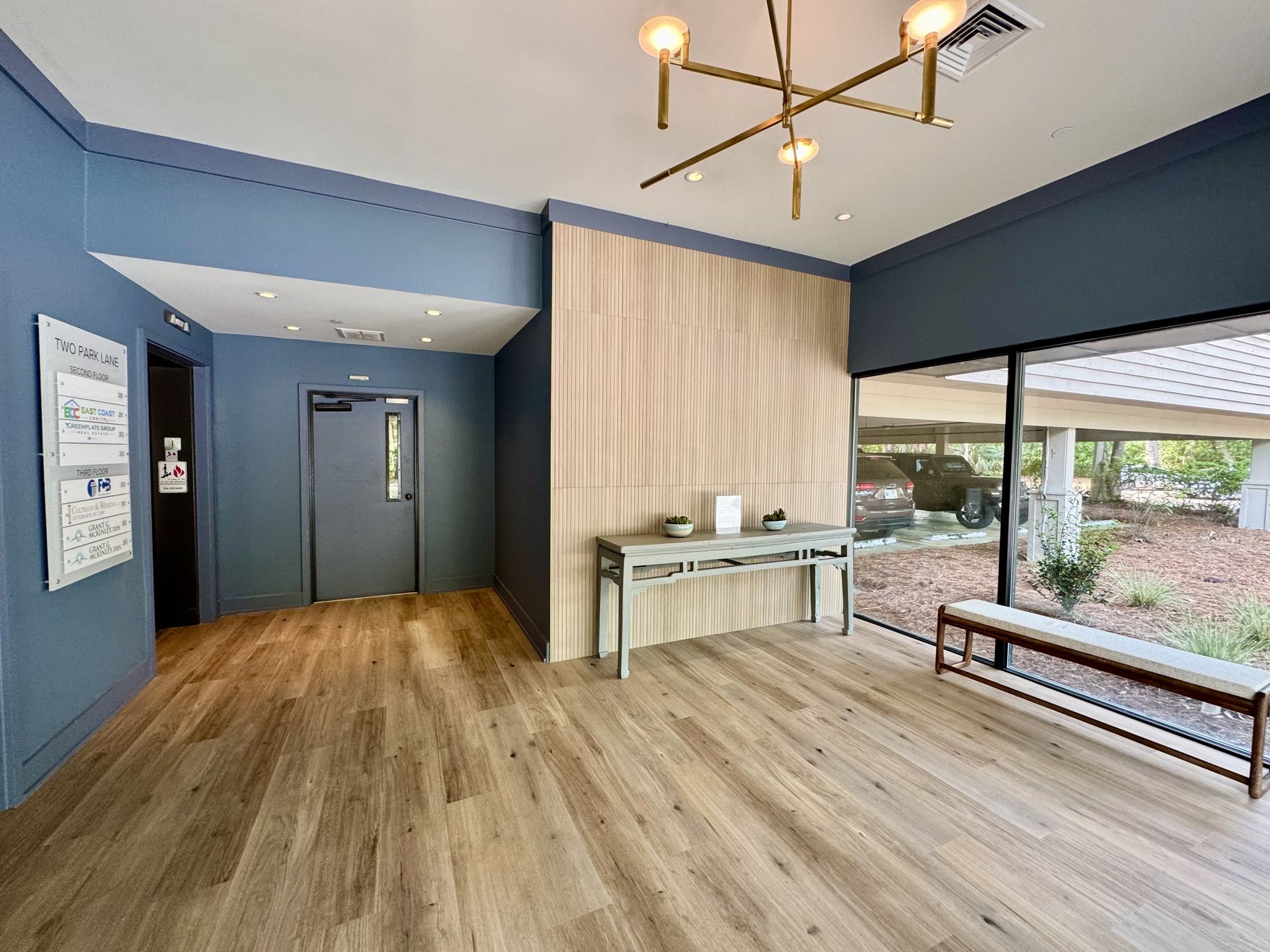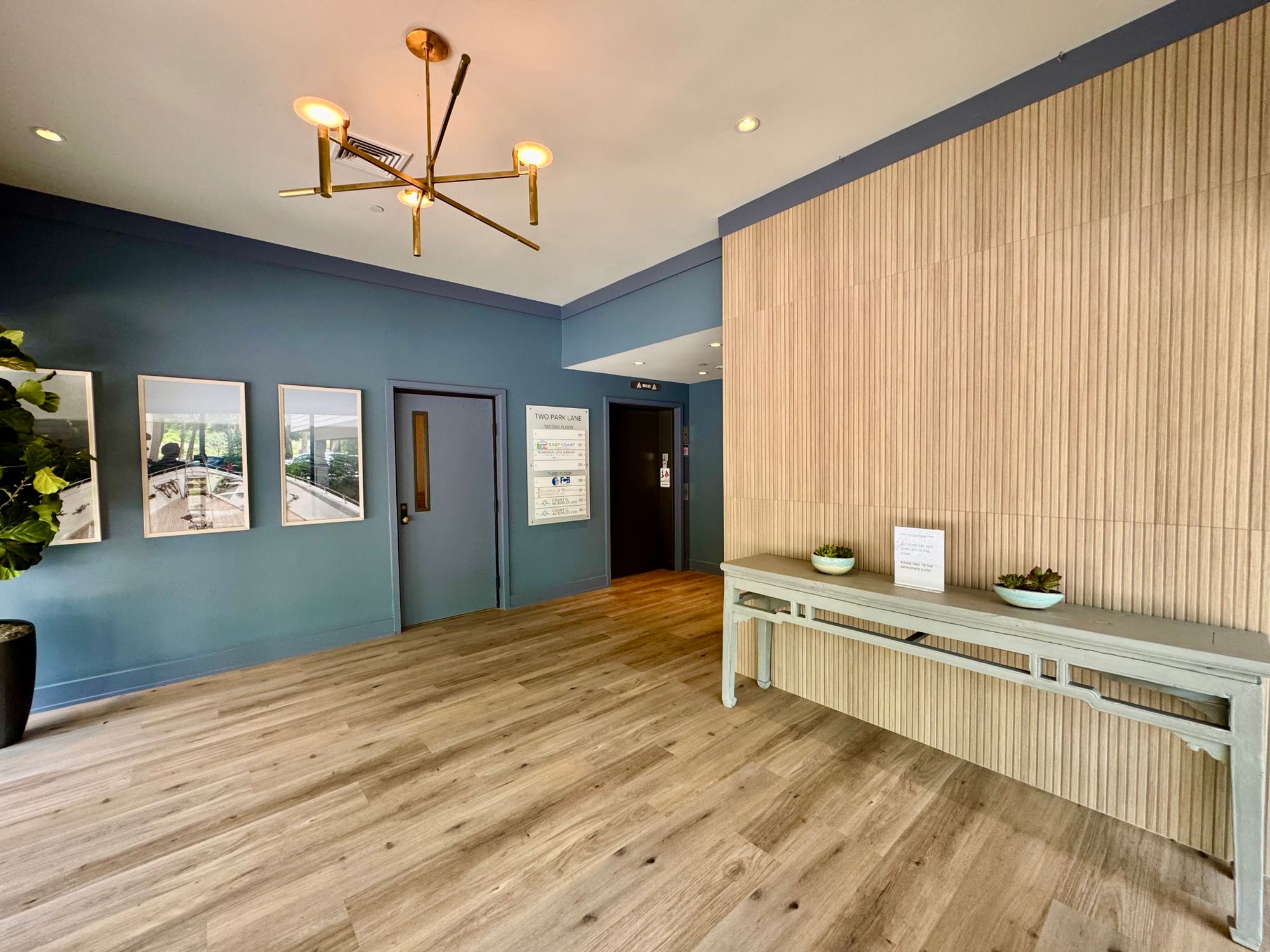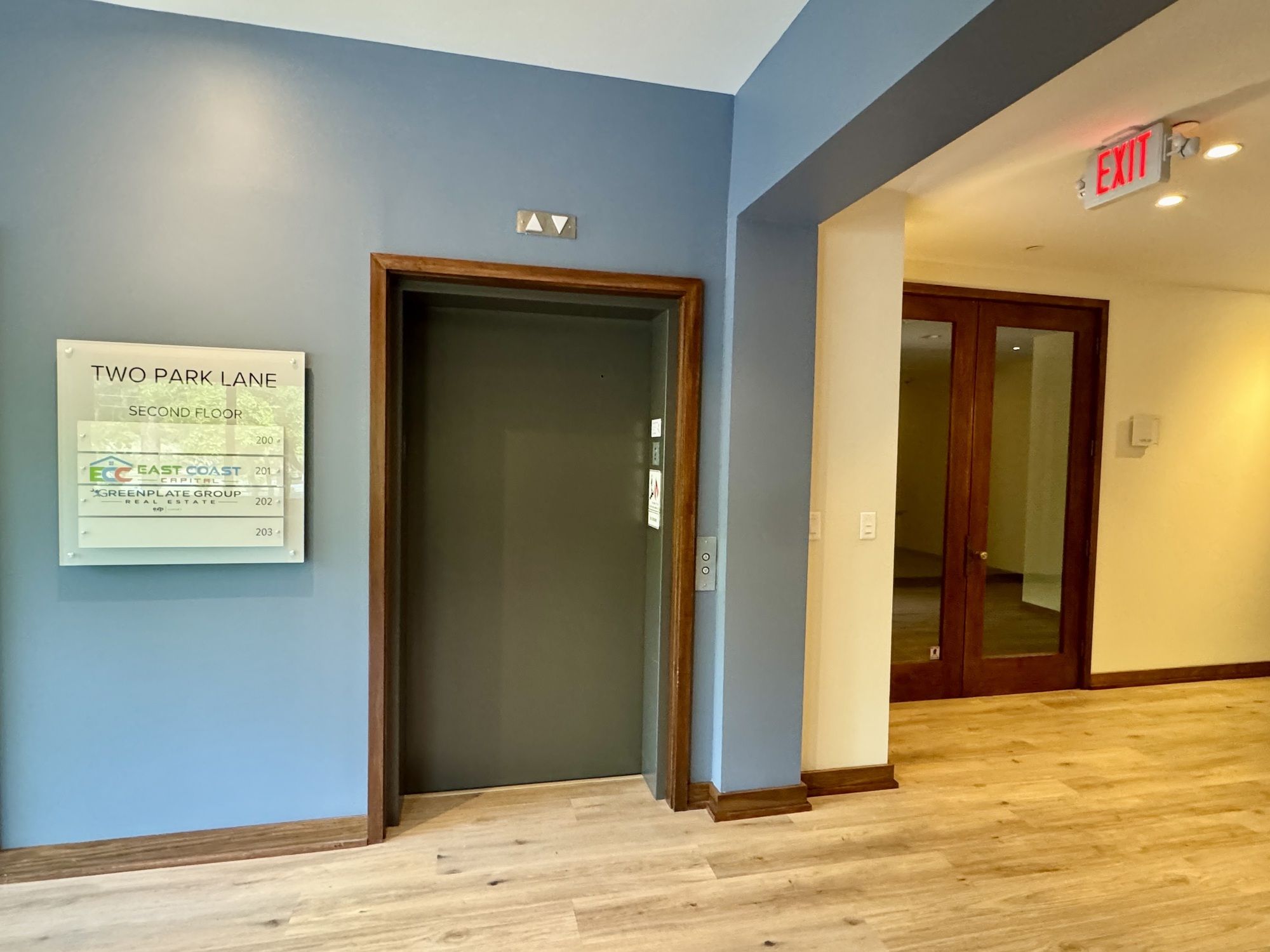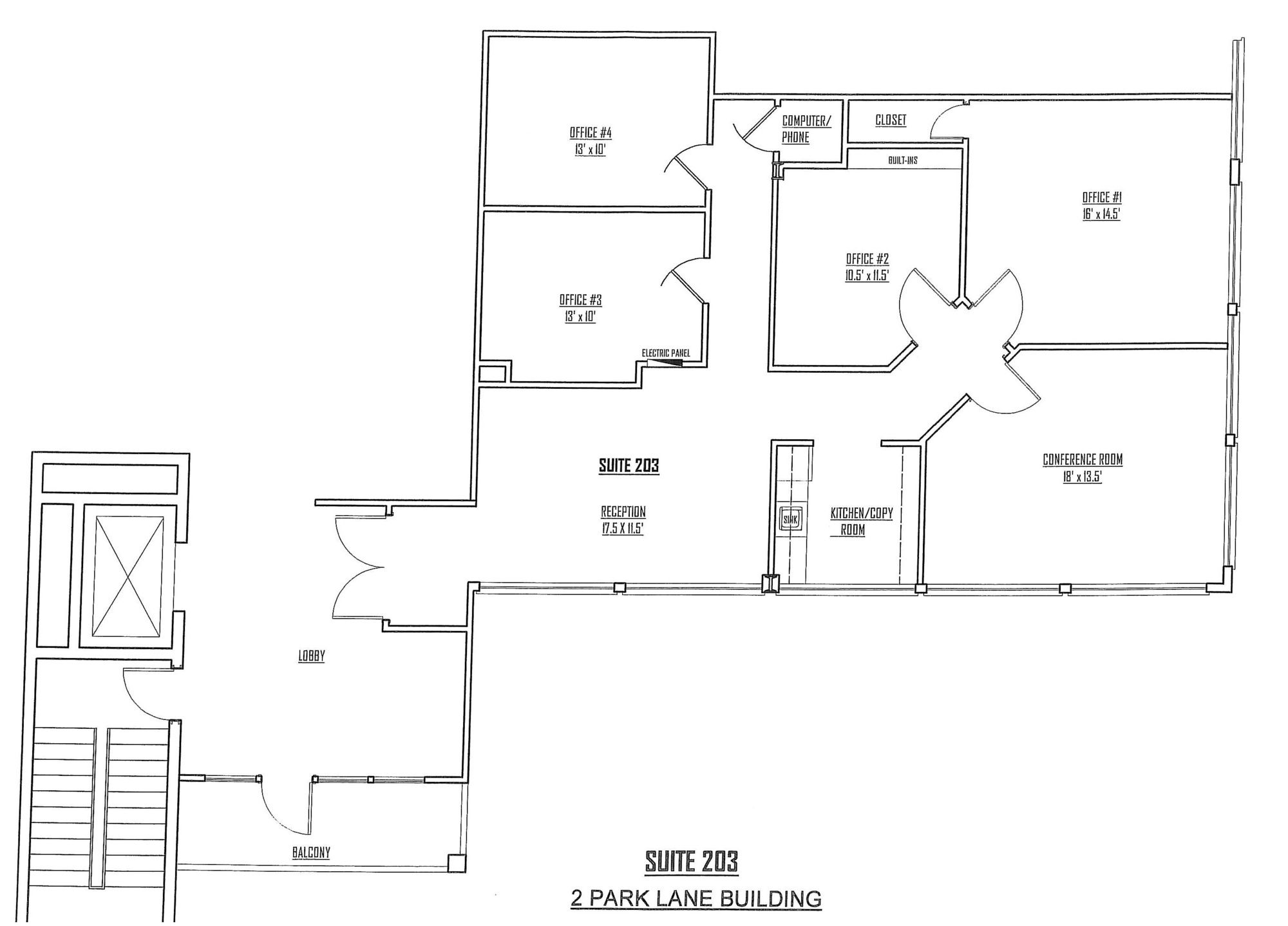 A Class A office suite is available for lease on the 3rd floor at Two Park Lane. The suite features functional office spaces with a kitchenette, multiple offices, and a conference room. The building includes common areas and restrooms. Covered parking is available. The building has been updated and offers a tenant mix.