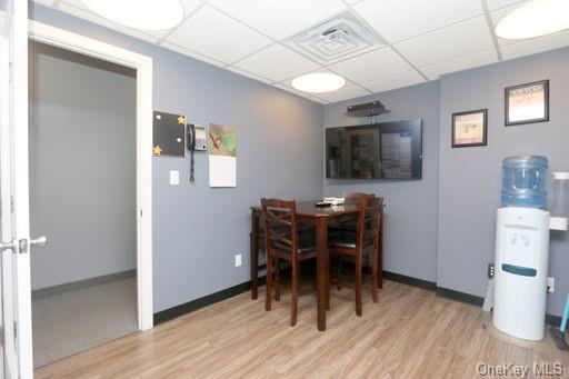 Located in the Highlands Professional Building near New York Presbyterian Hospital, Beech Shopping Center, downtown Peekskill, and Bear Mountain Parkway, this updated suite offers 2075 square feet of space. The suite features a reception area, 4 offices, 3 half baths, a kitchen, and a storage room. It is suitable for business or medical use. Heat and hot water are included in the common charges. The sale includes all office equipment such as desks, chairs, and file cabinets. Ample parking is available in front of the building. The property is close to transportation and shops. Suite 15 is also for sale, and it is possible to combine Suite 13 and 15. The offer was accepted on 8/20/25.