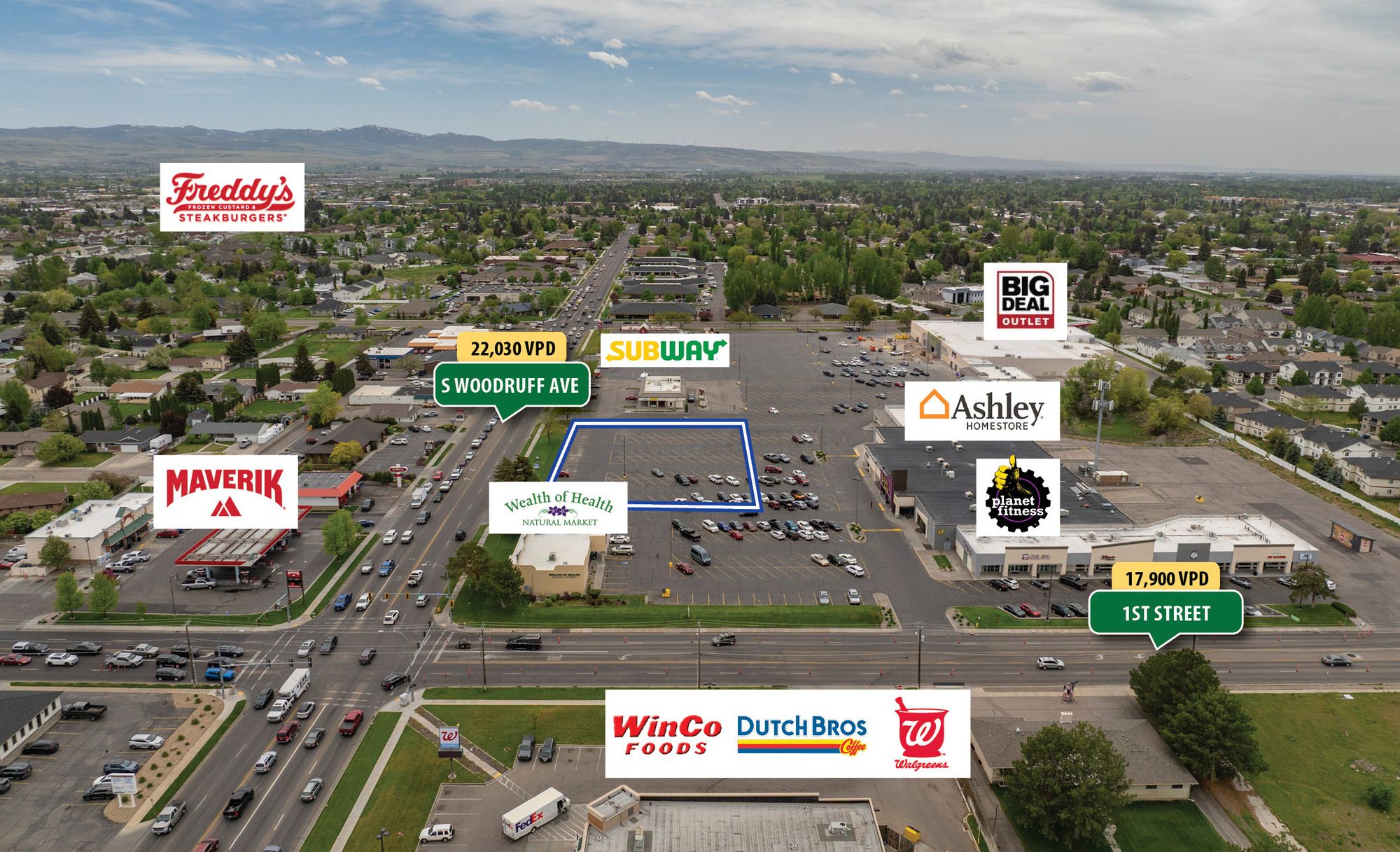 Retail pad site with high visibility and traffic in Idaho Falls.