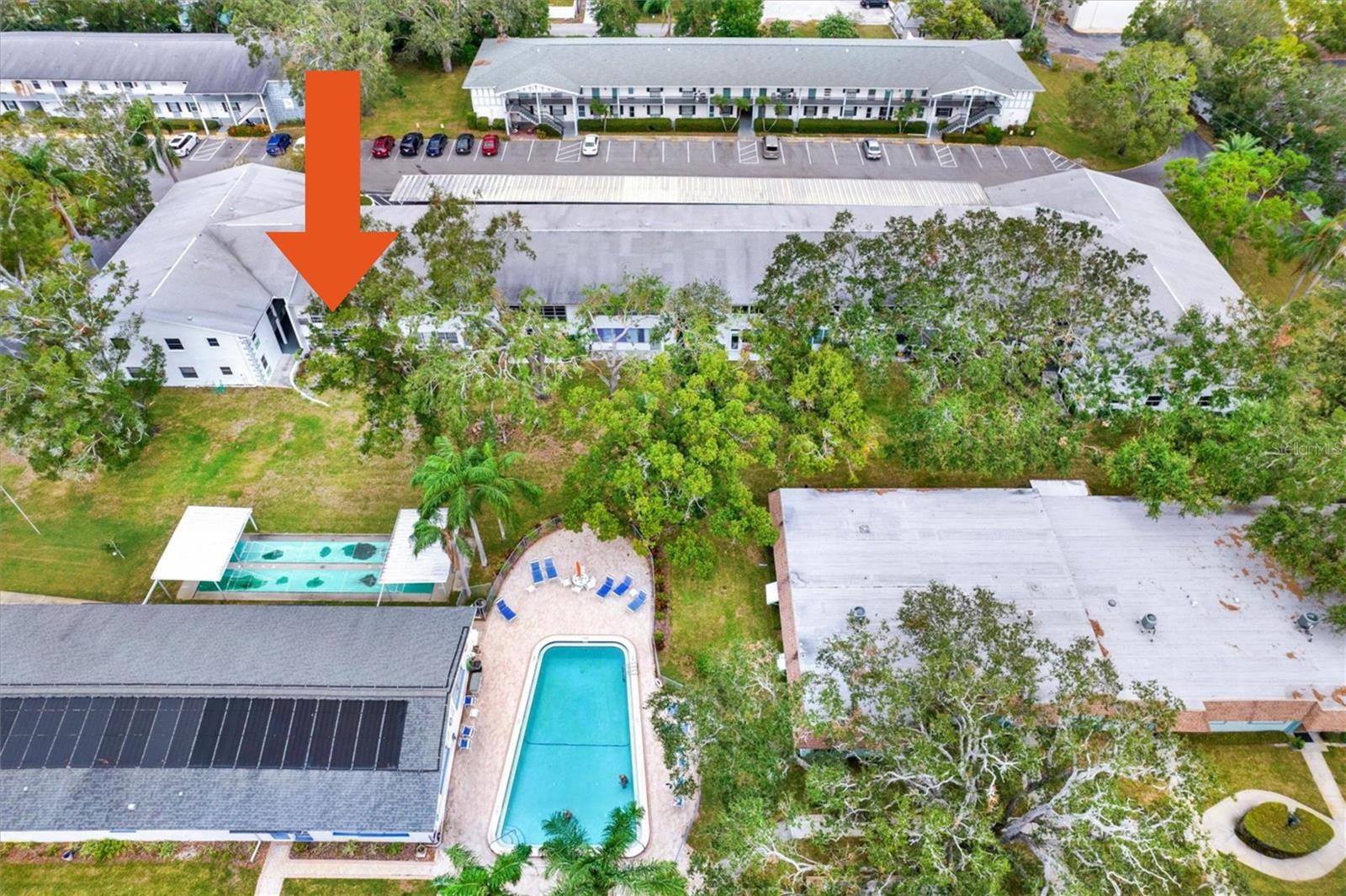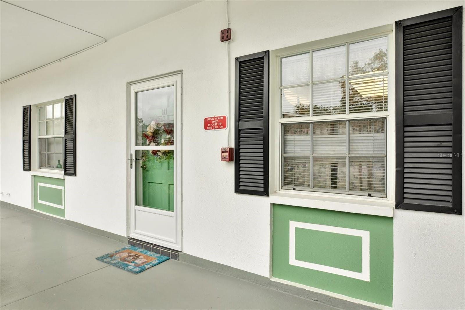 This charming ground floor condo in Douglas Arms is a 55+ community. The property features 2 bedrooms and 2 bathrooms. Updated in 2021, the condo is move-in ready. The modern kitchen includes shaker cabinets, quartz countertops, and Samsung appliances. Additional features include a Florida room and convenient covered parking. The community provides a heated pool. The property is located in a non-evacuation zone. There is green space located behind the property. The unit has a size of 970 square feet.