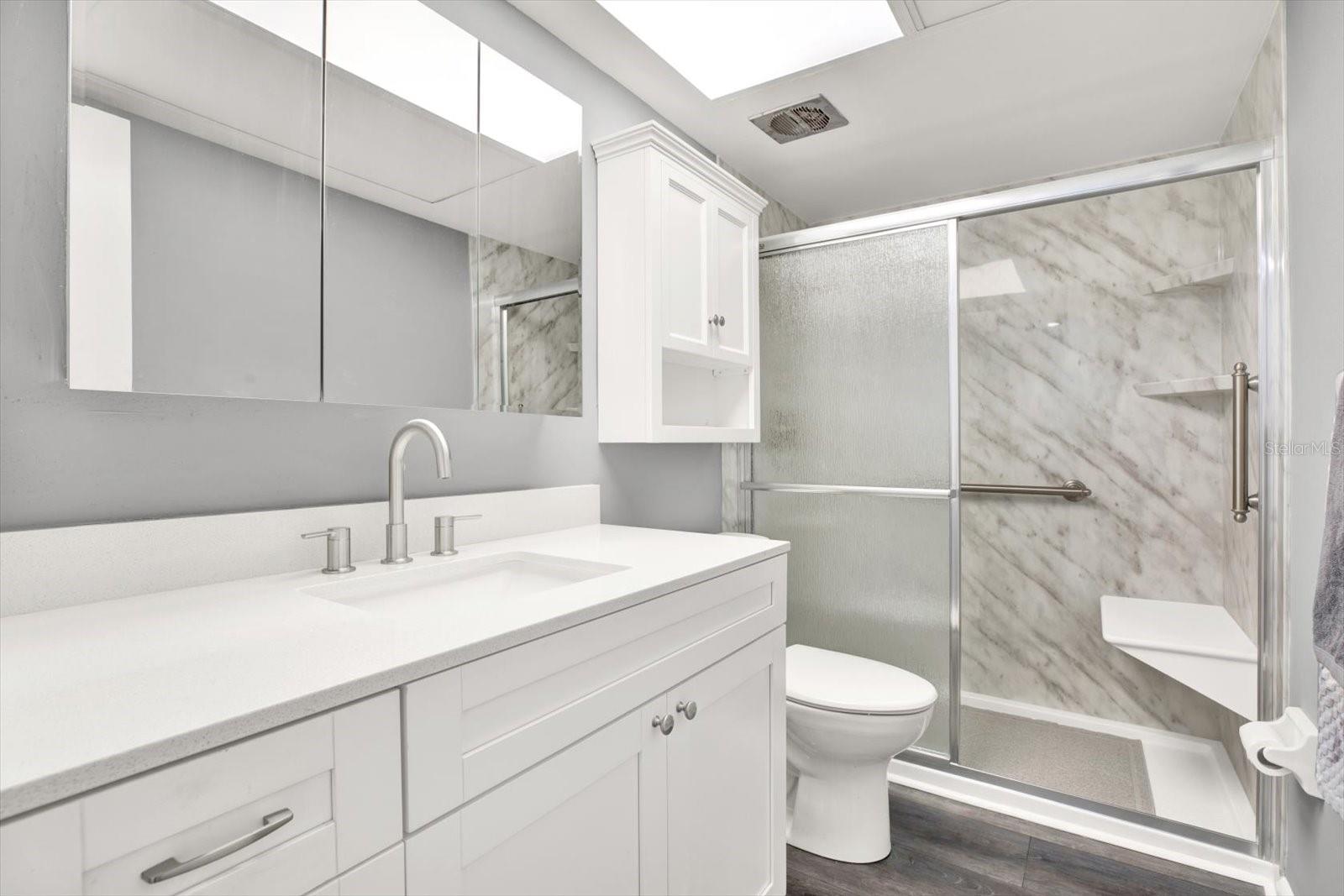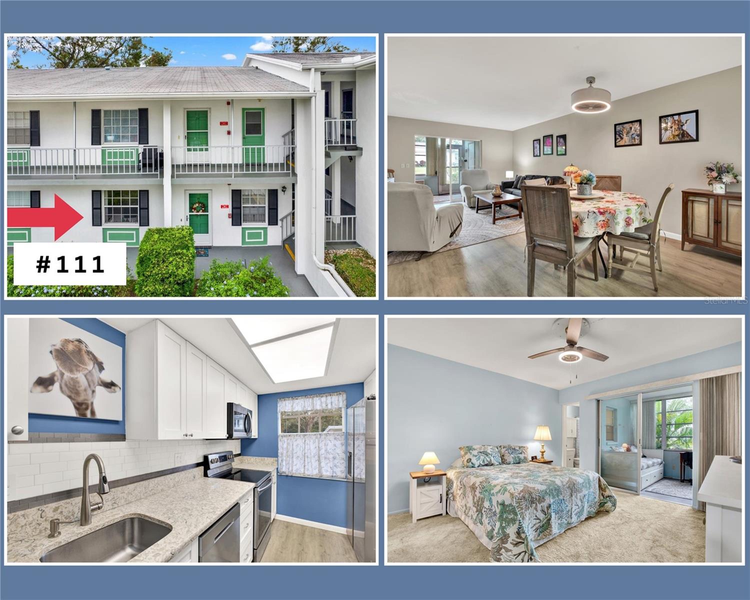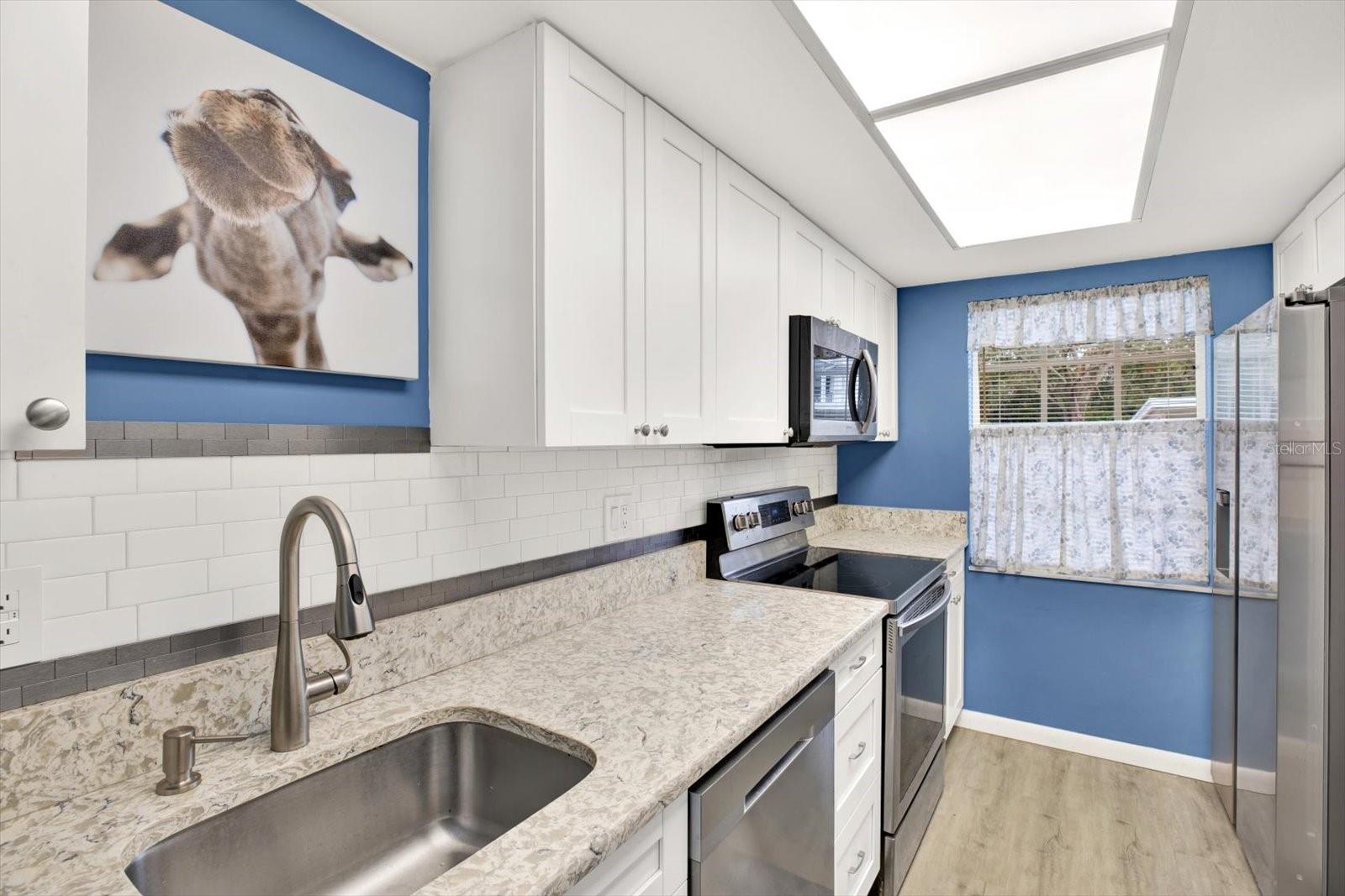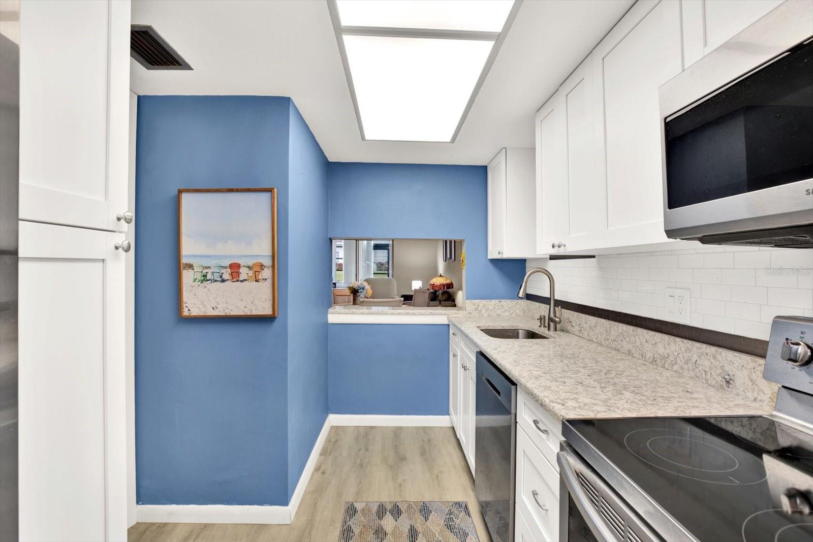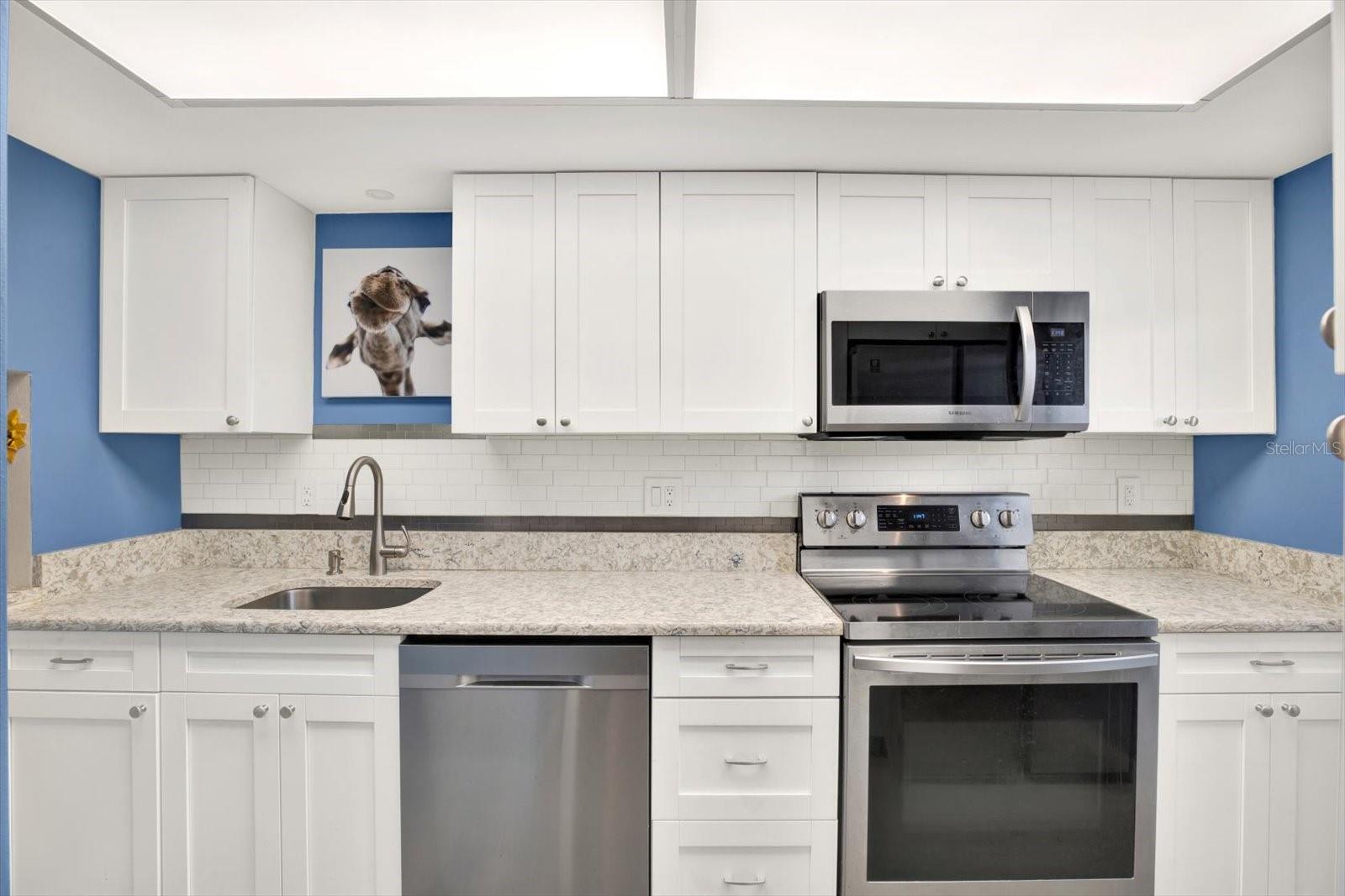 This property features: Ground floor unit in a 55+ community; Updated in 2021 with a MODERN KITCHEN featuring SHAKER CABINETS, QUARTZ COUNTERTOPS, and SAMSUNG APPLIANCES; Located in a non‑evacuation zone