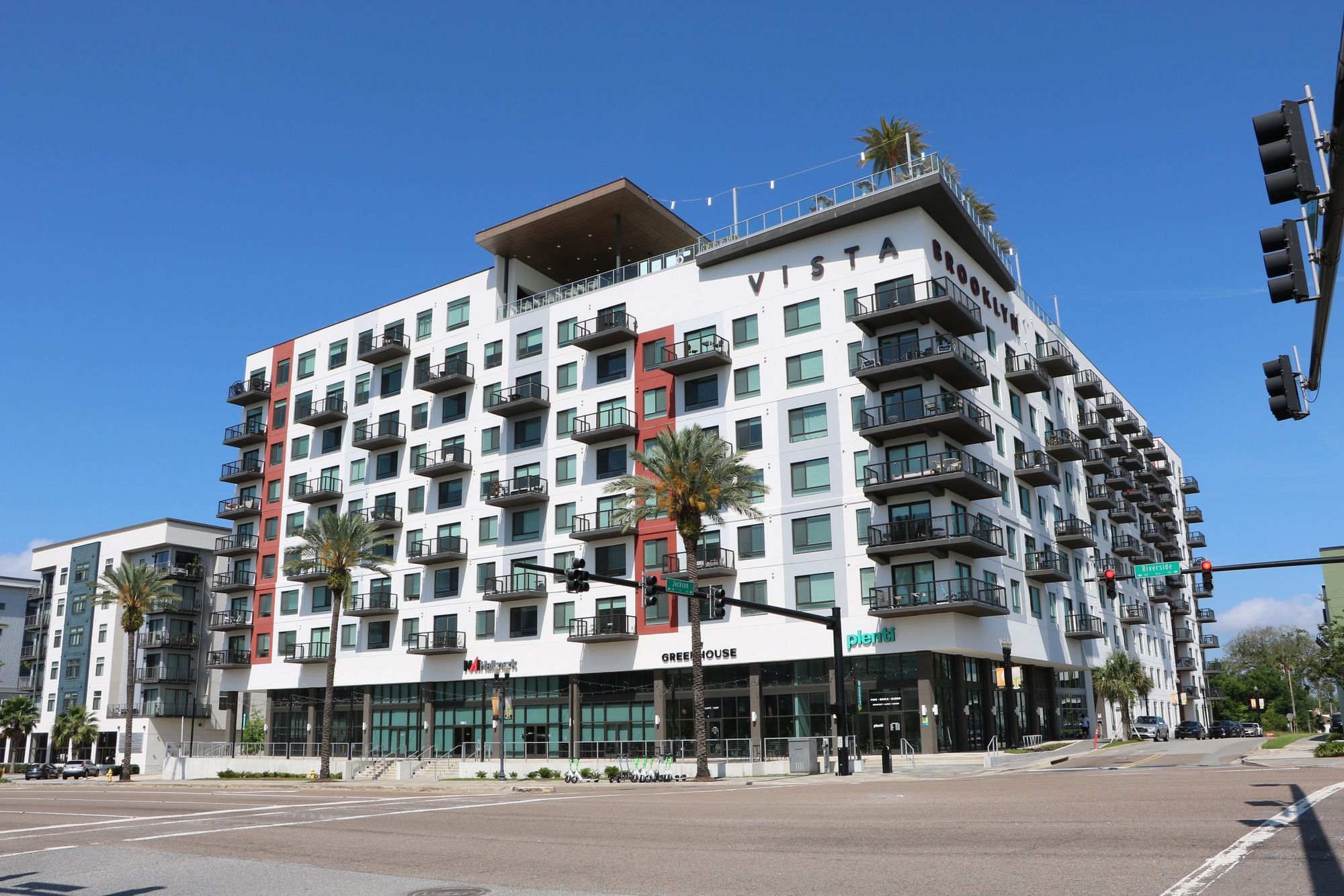 Mixed-use property with retail and luxury apartments in growing urban area.