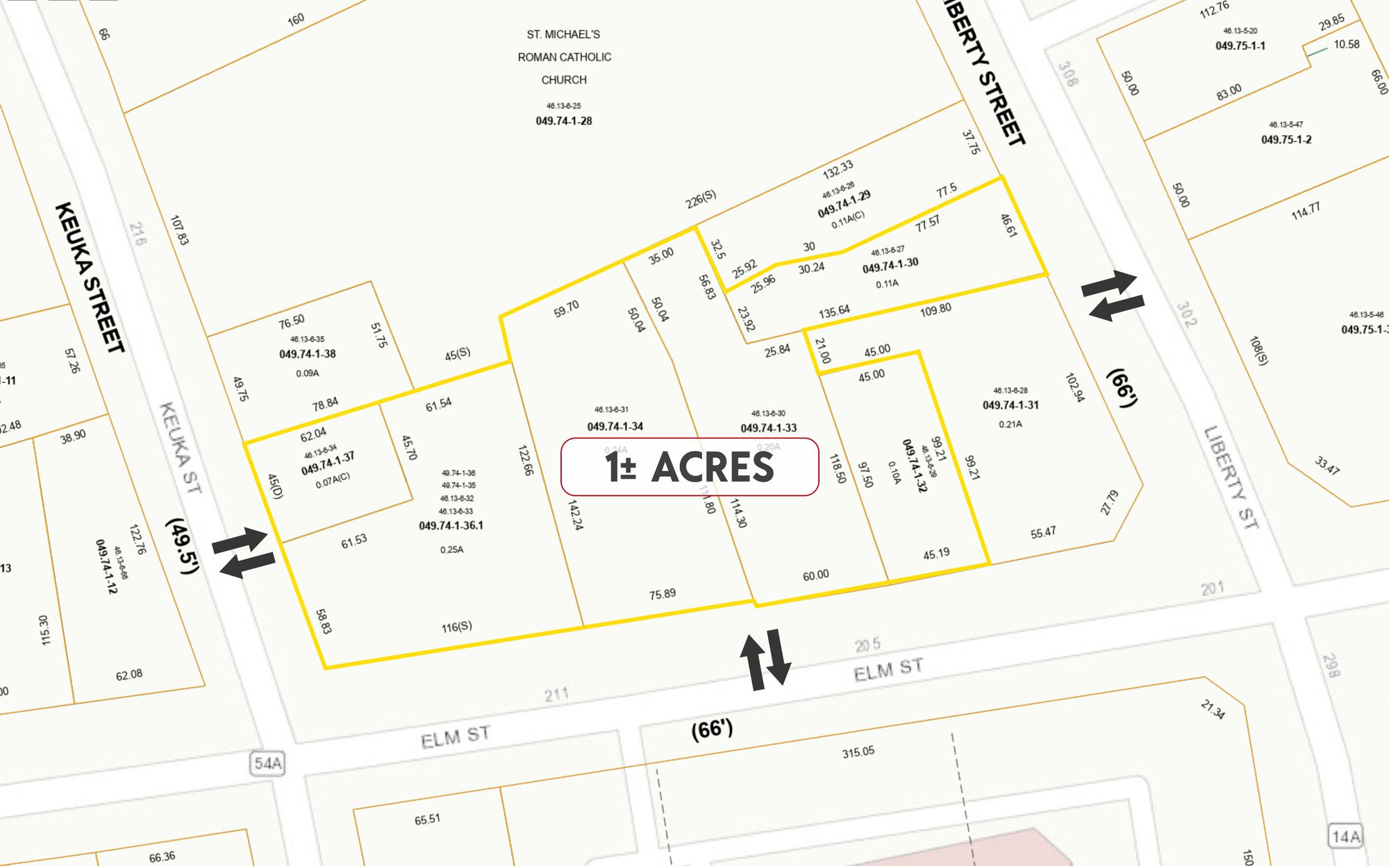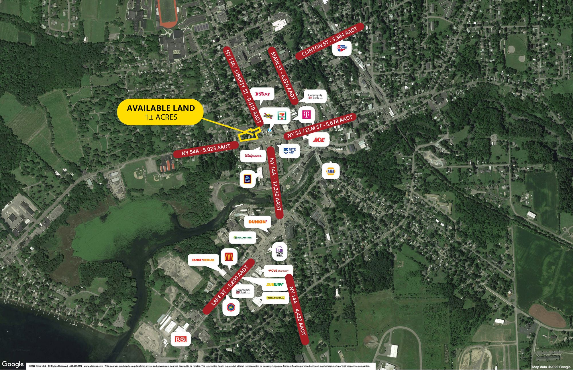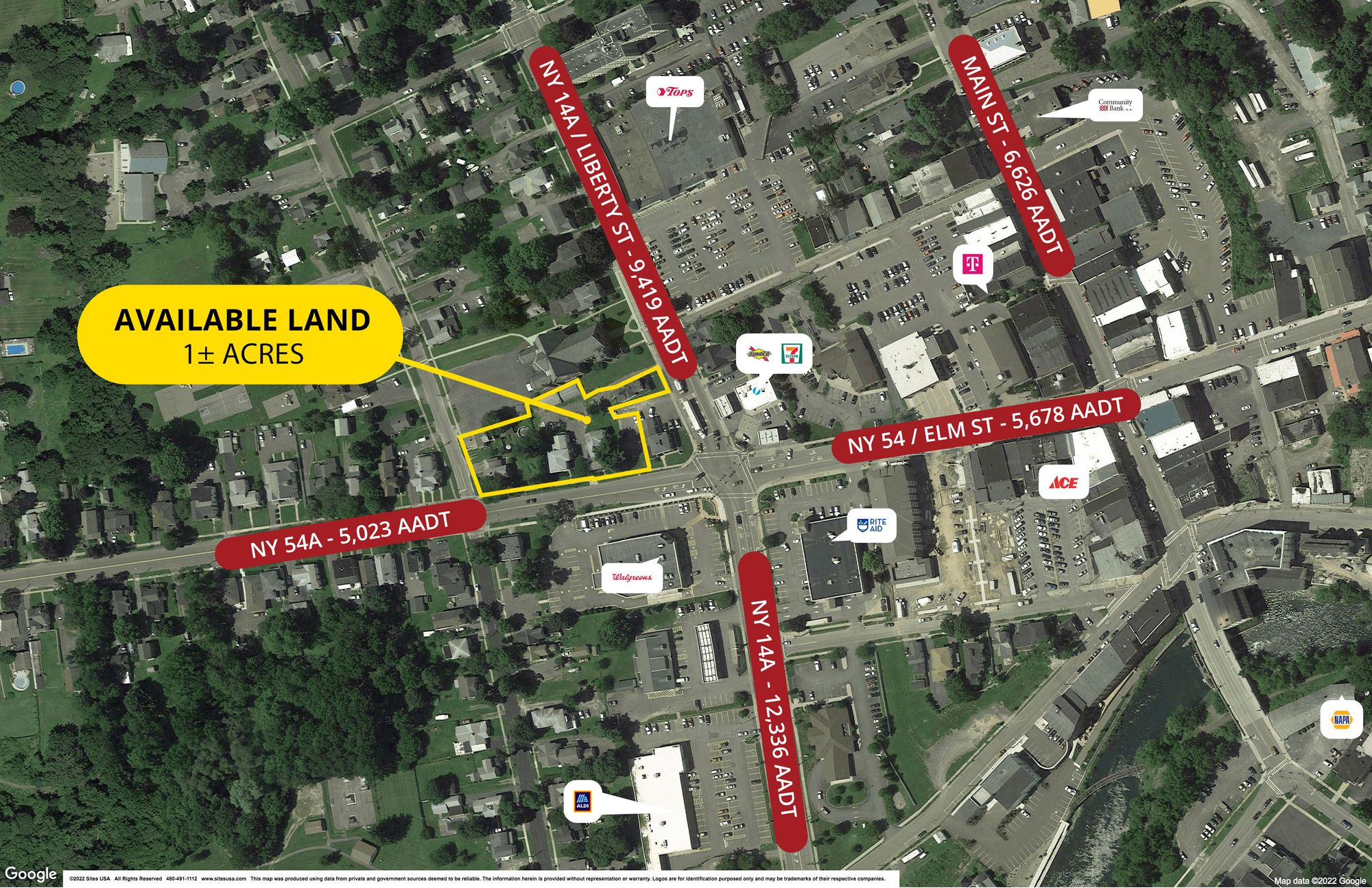 Corner lot in downtown Penn Yan, ideal for various businesses.