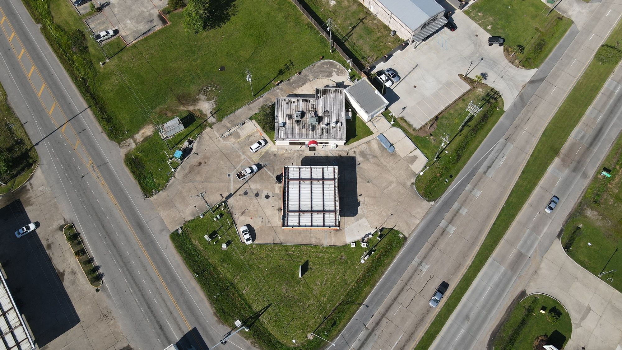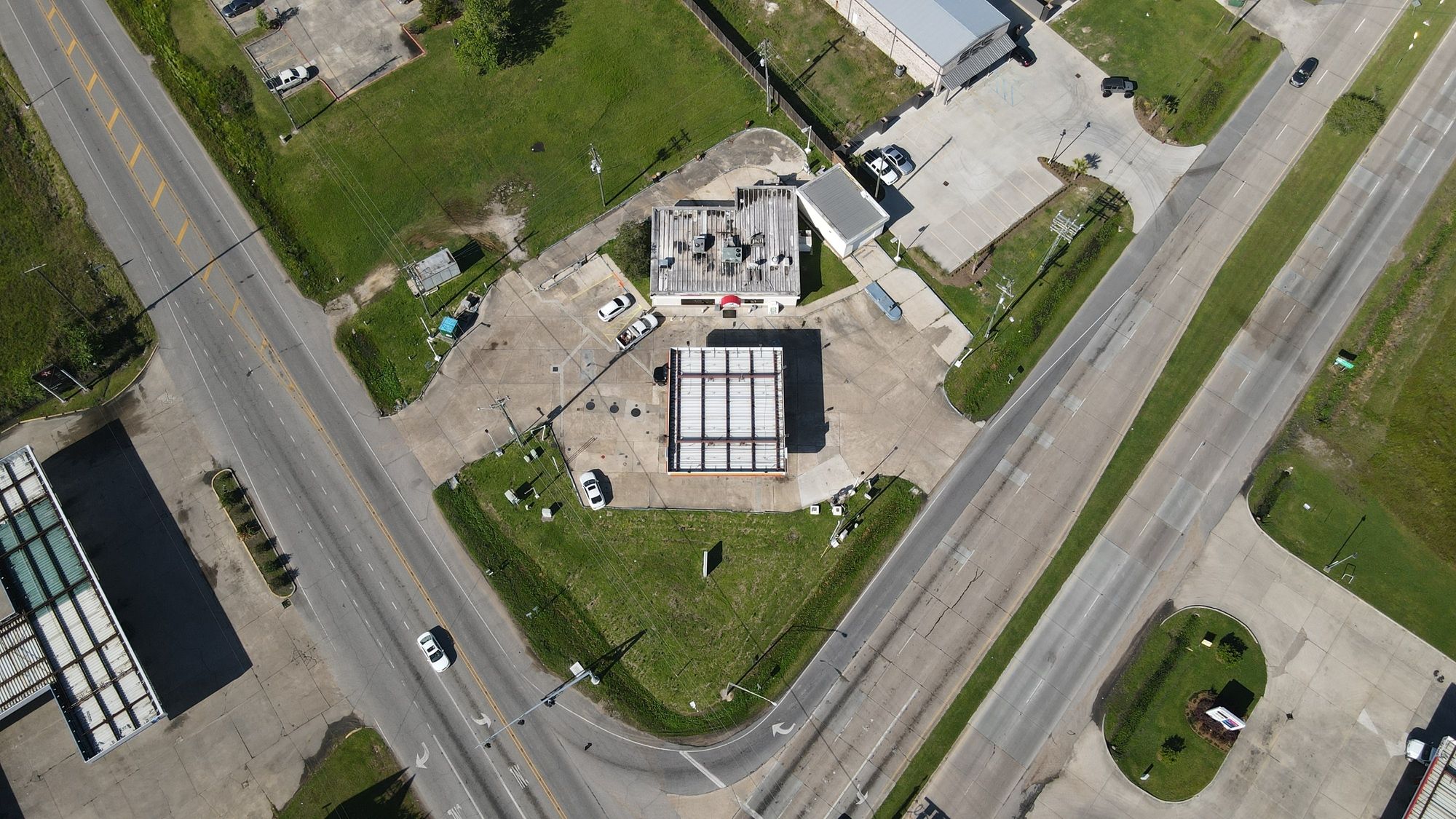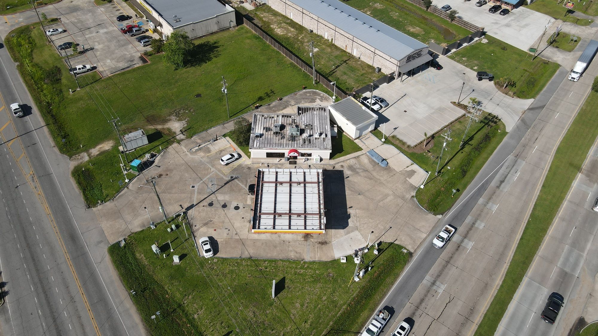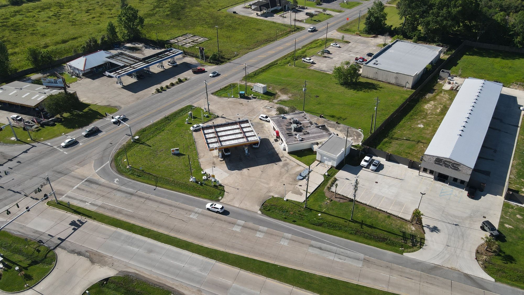 Gas station with 8 dispensers at Plank Road and Main.