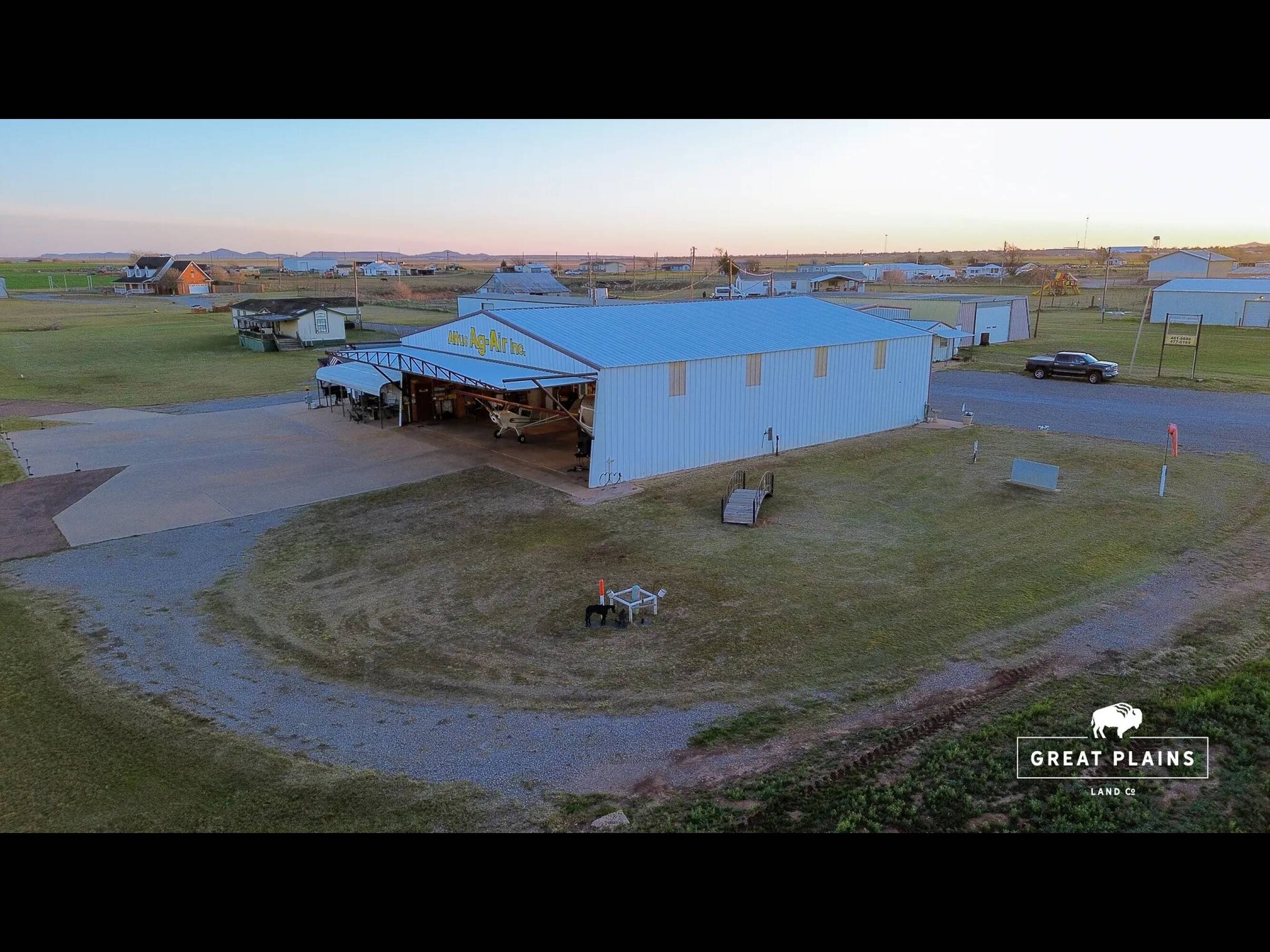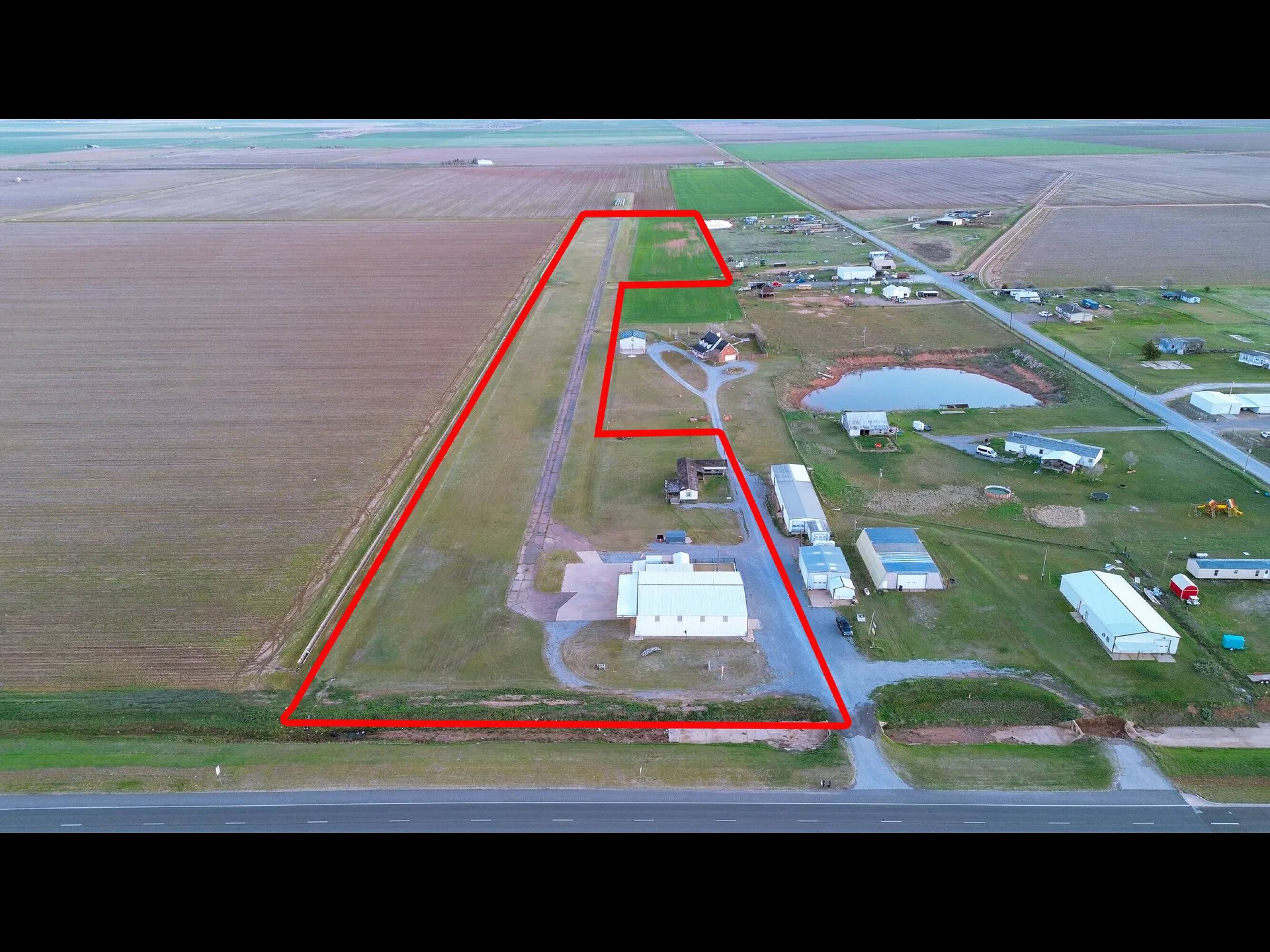 16.5-acre aviation property with hangar and living quarters.
