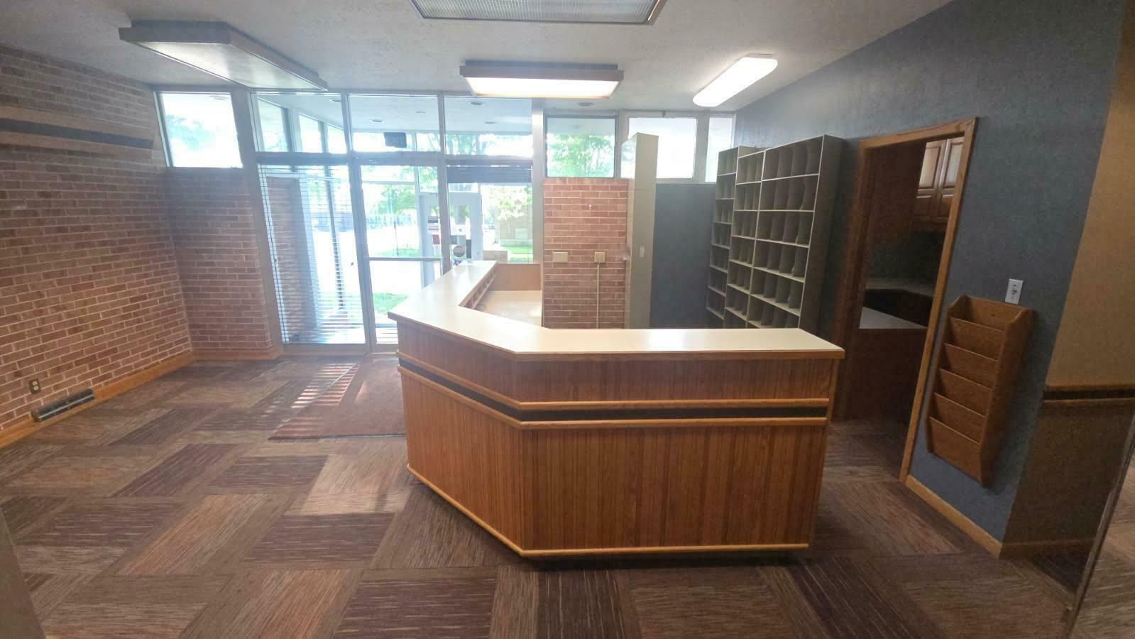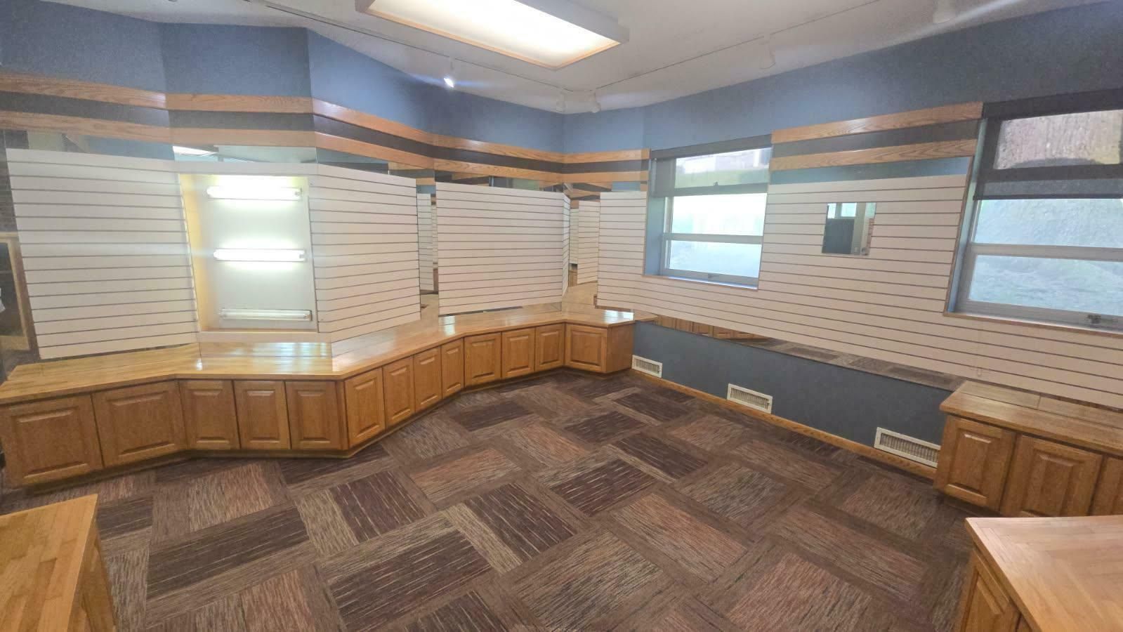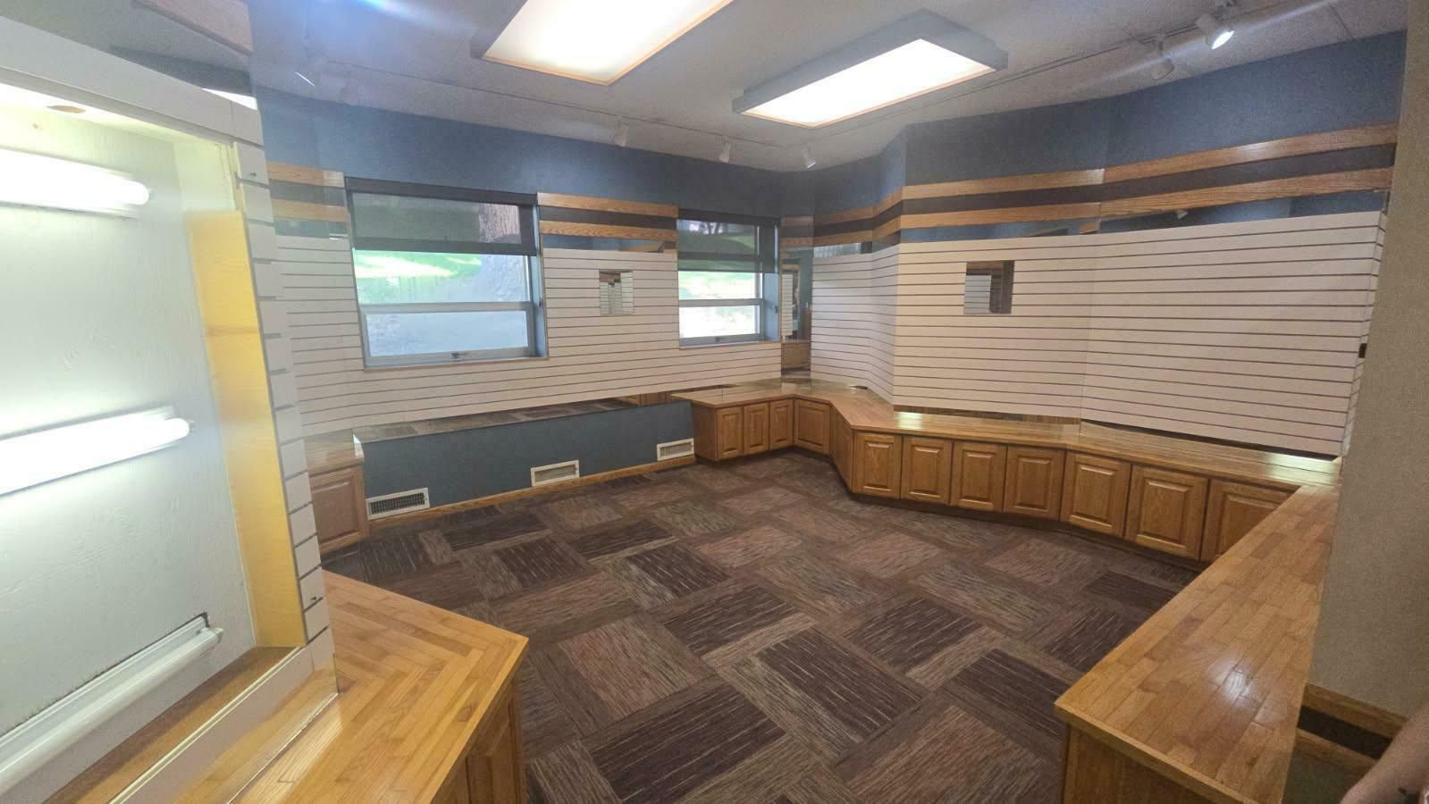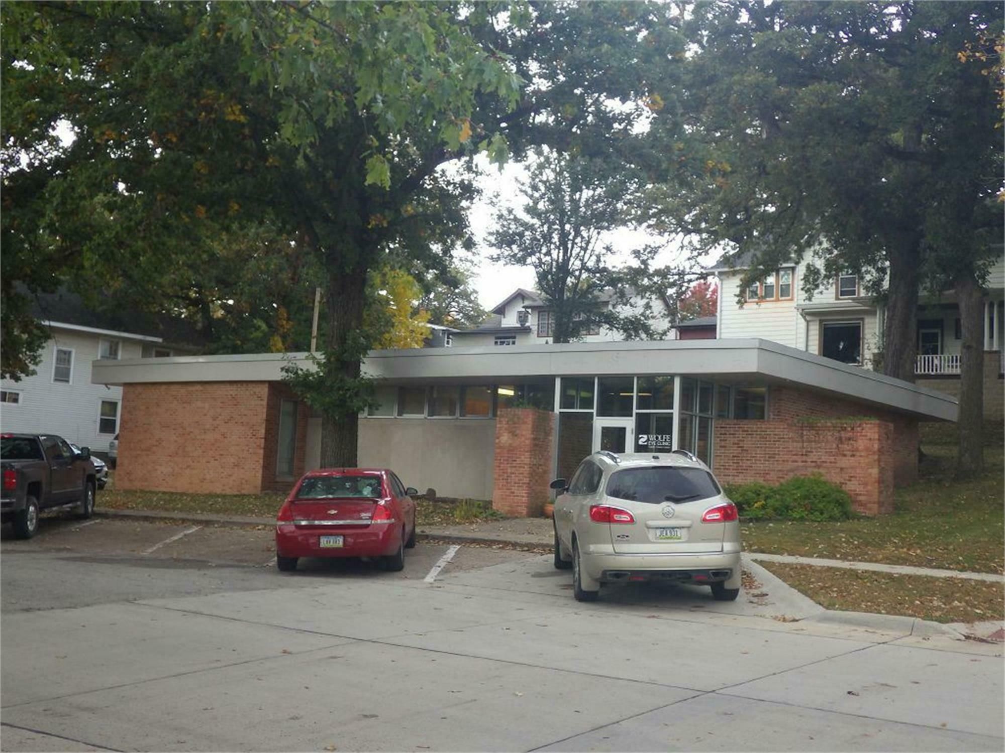 Single-story former eye clinic on a corner lot.