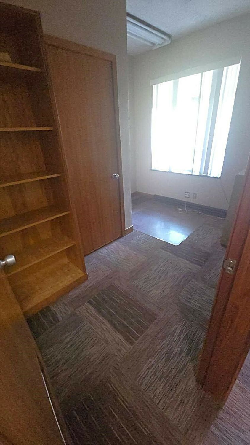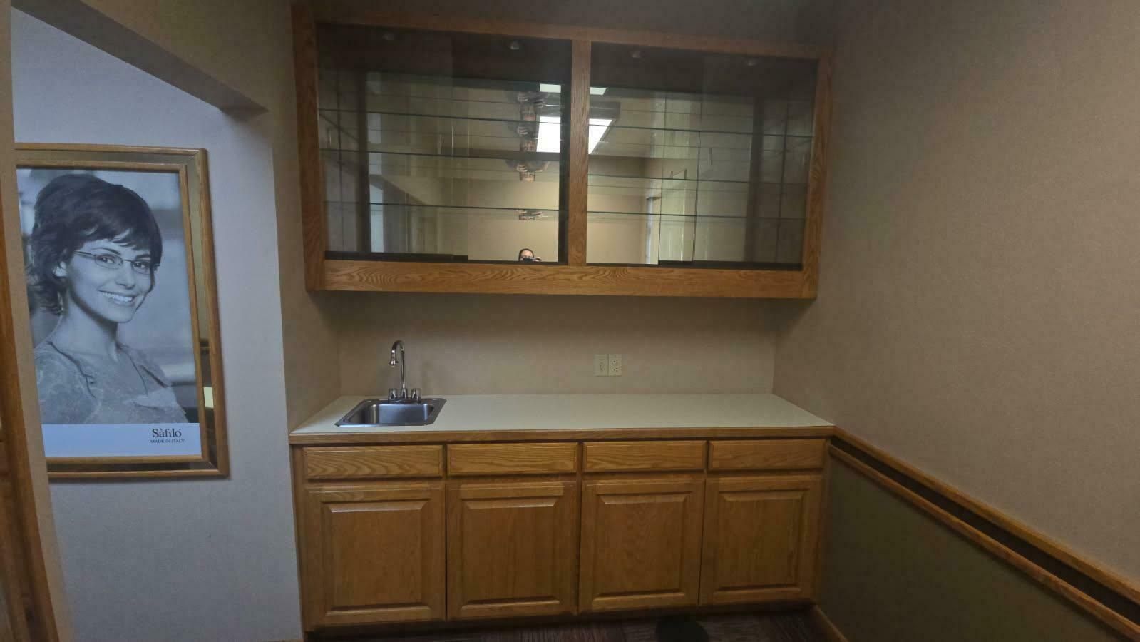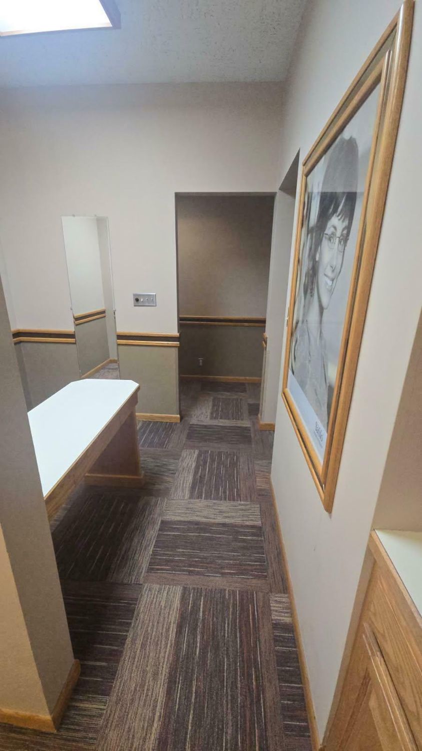 Single-story former eye clinic on a corner lot.