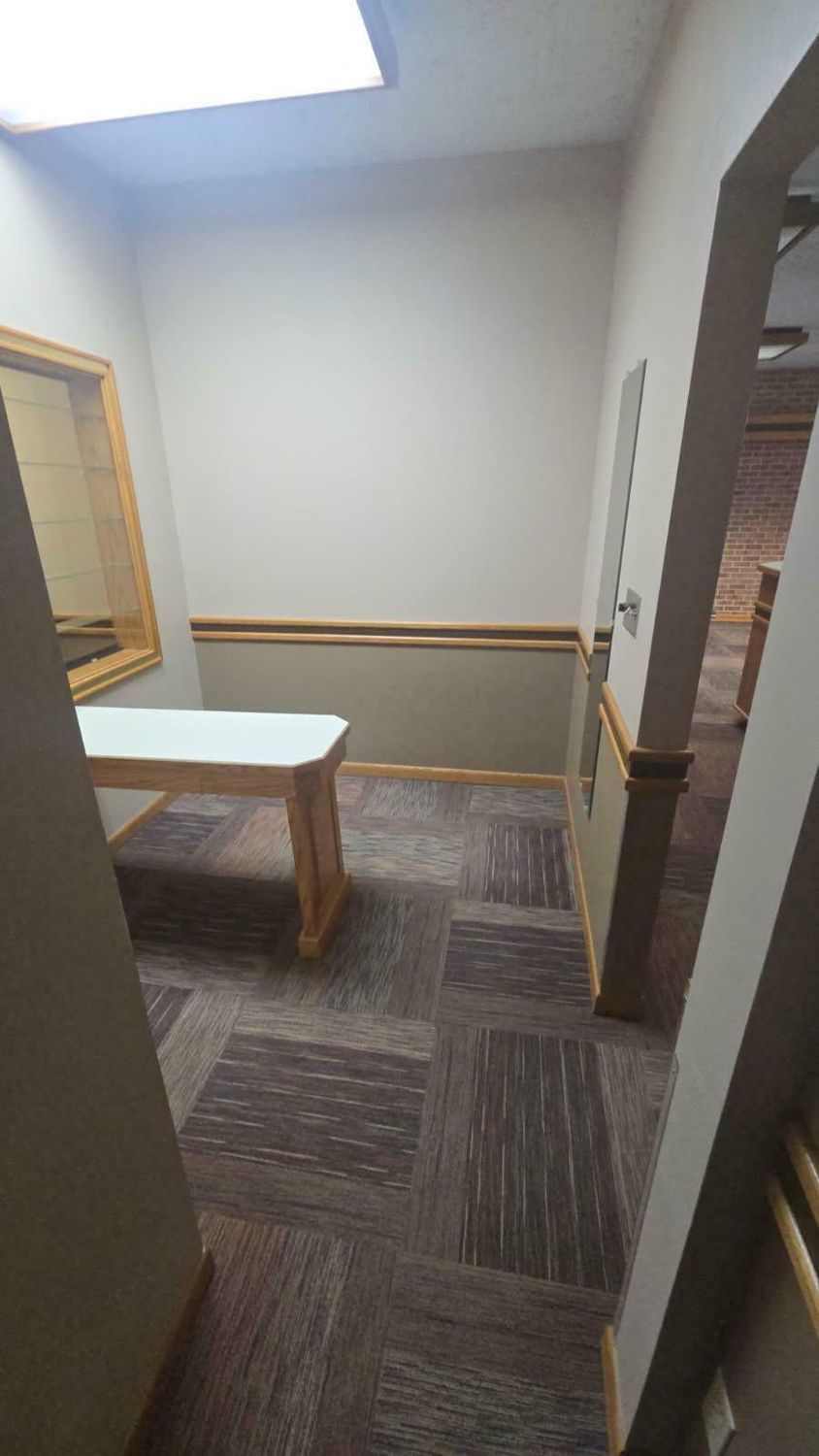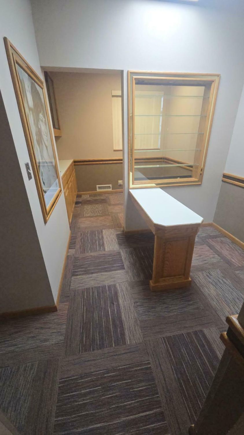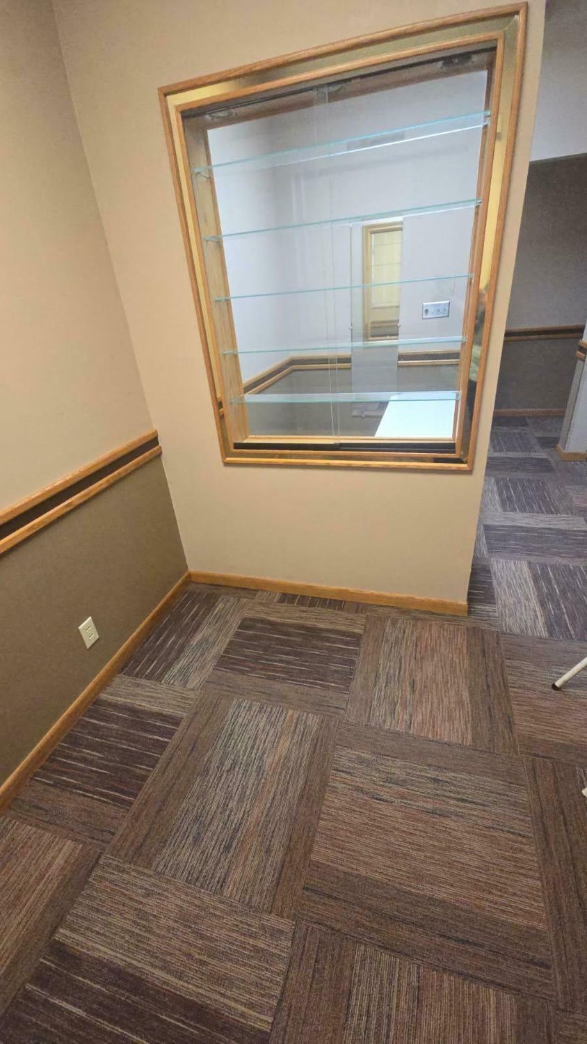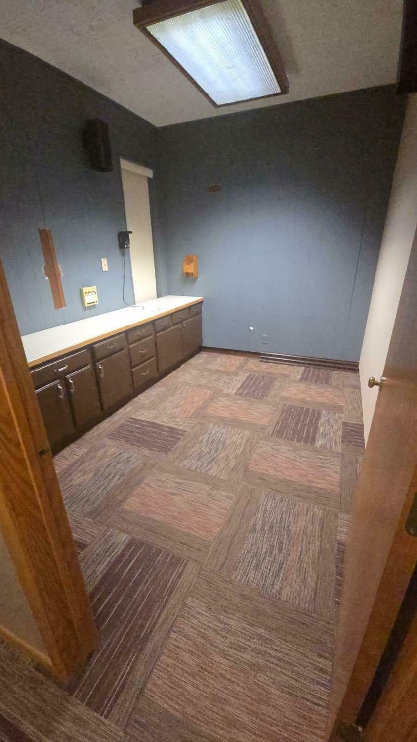 Single-story former eye clinic on a corner lot.