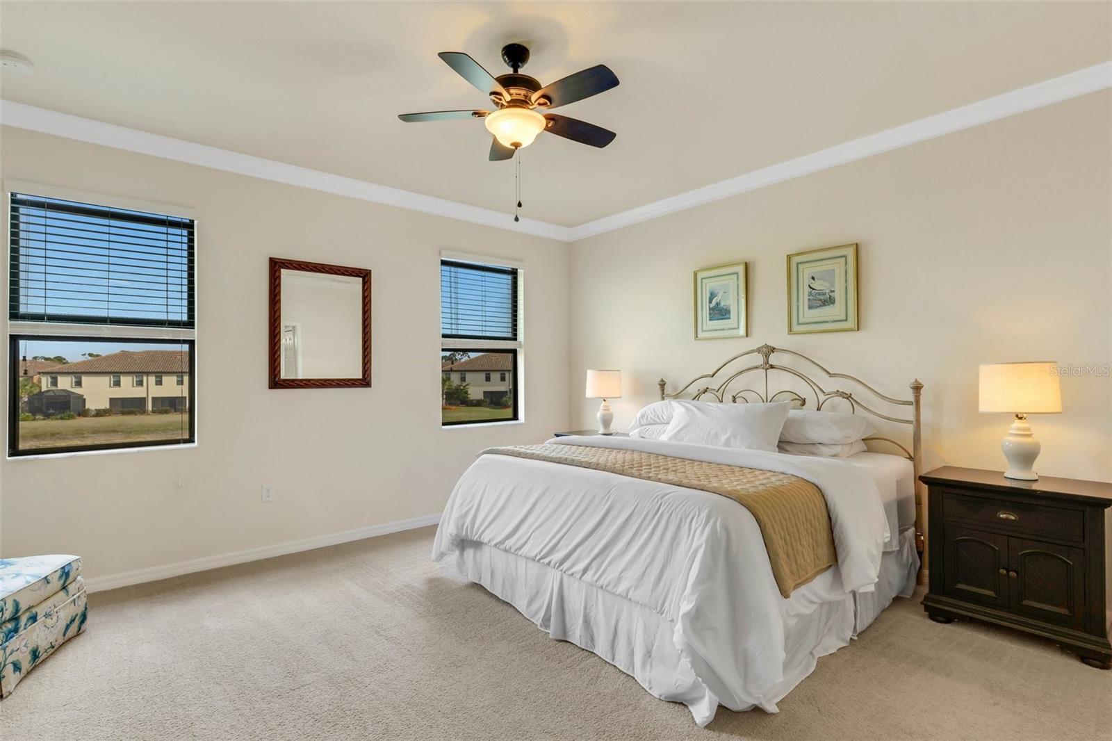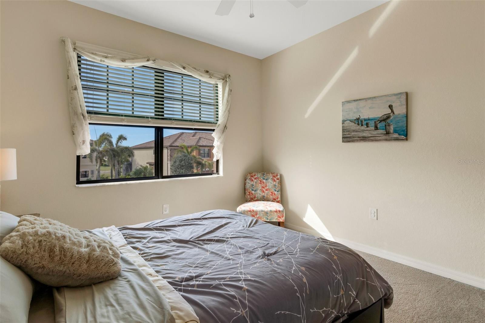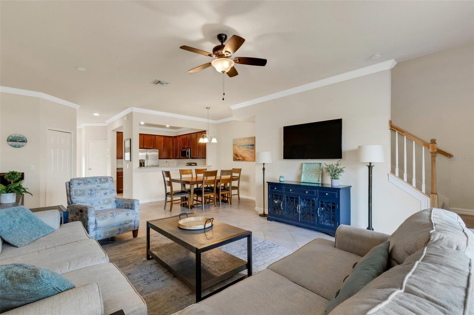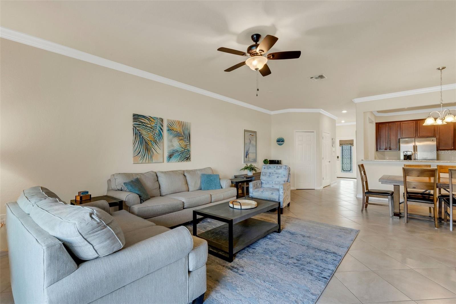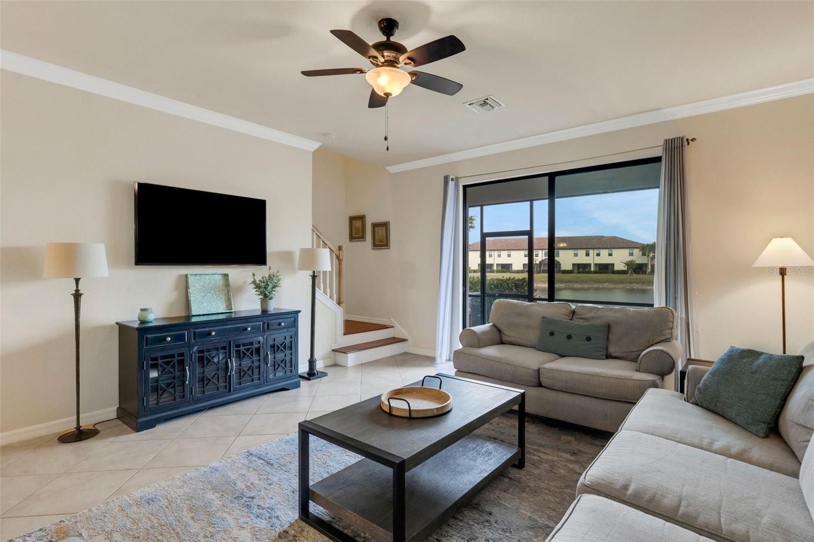 This fully furnished, waterfront townhome is located in the gated community of Gran Paradiso in Wellen Park. The home features 3 bedrooms, 2.5 baths, and a one-car garage with storage. The kitchen is equipped with granite countertops and stainless steel appliances, along with a breakfast bar and dining area. The living room is bright and spacious. Crown molding and fresh paint adorn the walls. Upstairs, there are three bedrooms and a laundry closet. The primary bedroom includes an ensuite bathroom and ample closet space. The upstairs hallway has hardwood flooring. The garage includes a ceiling storage unit. The east-facing lanai offers views of the pond and its wildlife. Gran Paradiso offers a resort-style pool and clubhouse with a fitness facility, saunas, steam/massage rooms, billiard/card tables, and aerobic/dance rooms. A full-time lifestyle director plans community events for all ages. Amenities include pickleball, tennis, basketball, and bike paths. The HOA includes cable/TV, lawn care, irrigation, and all amenities. The community is golf cart friendly and offers gated entries. The property is located close to the beach, shopping, and events, and downtown Wellen Park is a short bicycle ride away, offering live entertainment, restaurants, and shops. Downtown Venice and the Gulf beaches are within a 10-minute drive. The Atlanta Braves spring training facility is nearby.