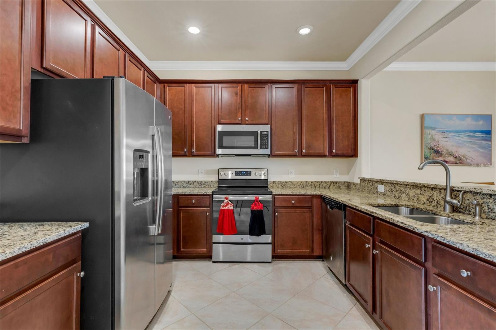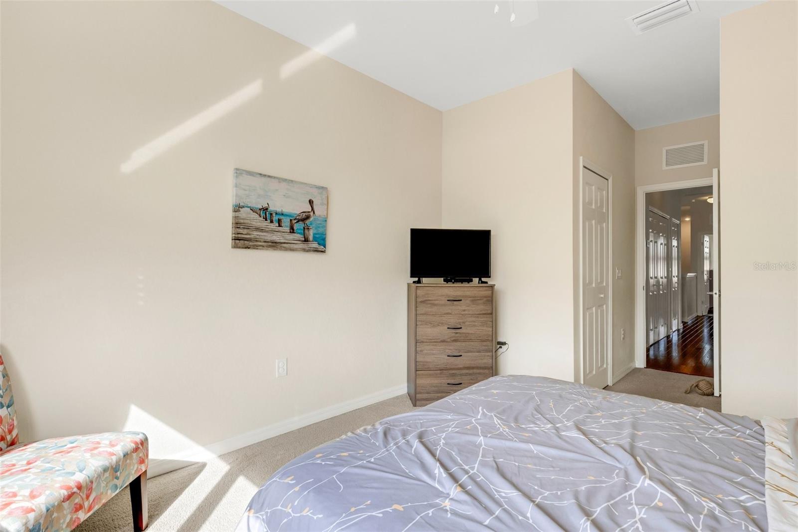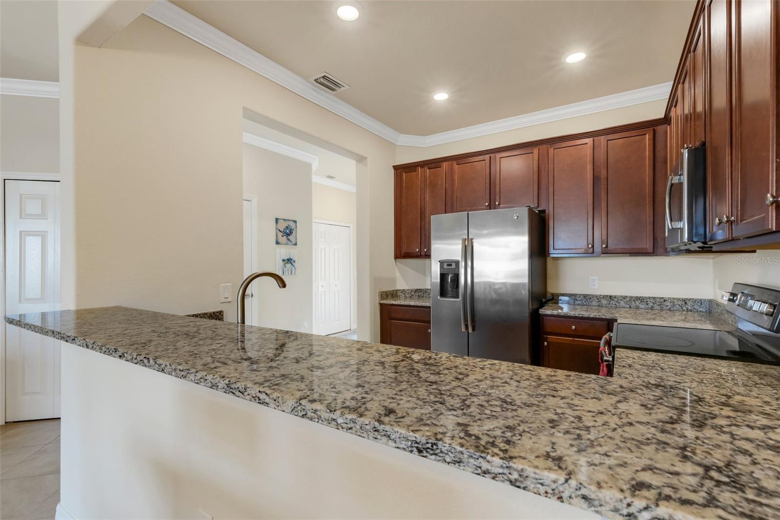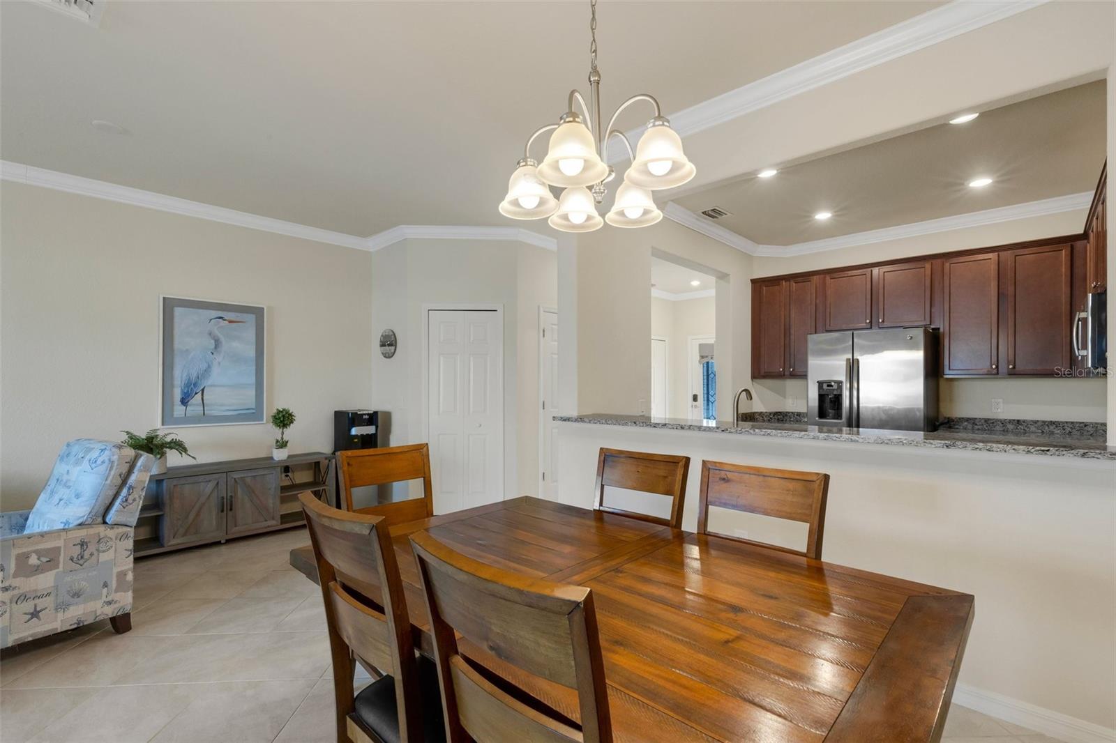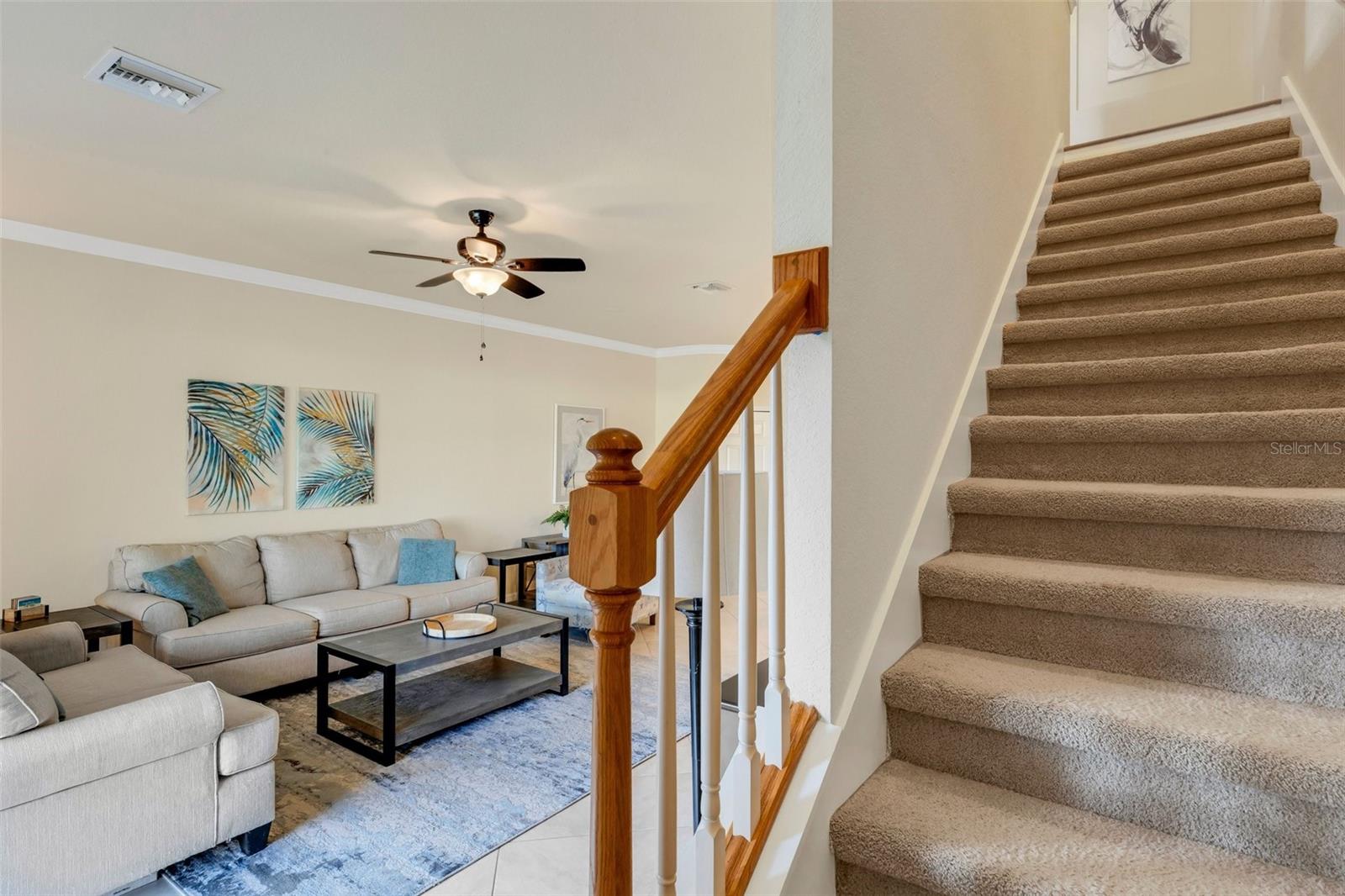 This fully furnished, waterfront townhome is located in the gated community of Gran Paradiso in Wellen Park. The home features 3 bedrooms, 2.5 baths, and a one-car garage with storage. The kitchen is equipped with granite countertops and stainless steel appliances, along with a breakfast bar and dining area. The living room is bright and spacious. Crown molding and fresh paint adorn the walls. Upstairs, there are three bedrooms and a laundry closet. The primary bedroom includes an ensuite bathroom and ample closet space. The upstairs hallway has hardwood flooring. The garage includes a ceiling storage unit. The east-facing lanai offers views of the pond and its wildlife. Gran Paradiso offers a resort-style pool and clubhouse with a fitness facility, saunas, steam/massage rooms, billiard/card tables, and aerobic/dance rooms. A full-time lifestyle director plans community events for all ages. Amenities include pickleball, tennis, basketball, and bike paths. The HOA includes cable/TV, lawn care, irrigation, and all amenities. The community is golf cart friendly and offers gated entries. The property is located close to the beach, shopping, and events, and downtown Wellen Park is a short bicycle ride away, offering live entertainment, restaurants, and shops. Downtown Venice and the Gulf beaches are within a 10-minute drive. The Atlanta Braves spring training facility is nearby.