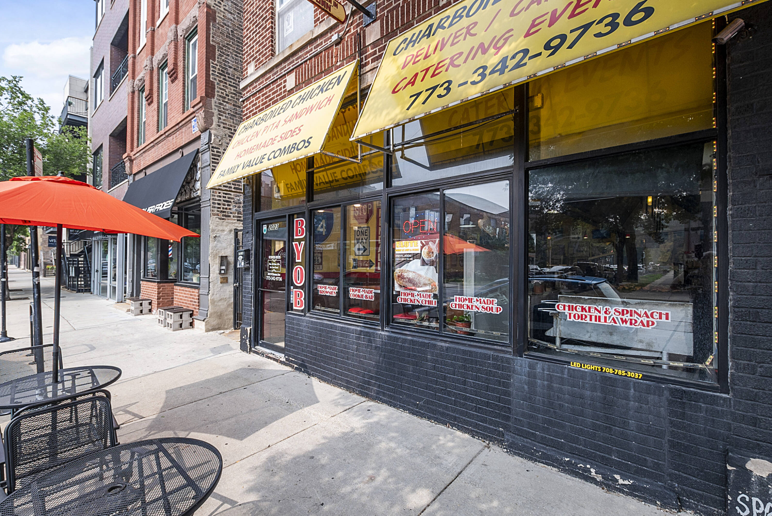 Prime commercial space in Bucktown with black iron and parking.