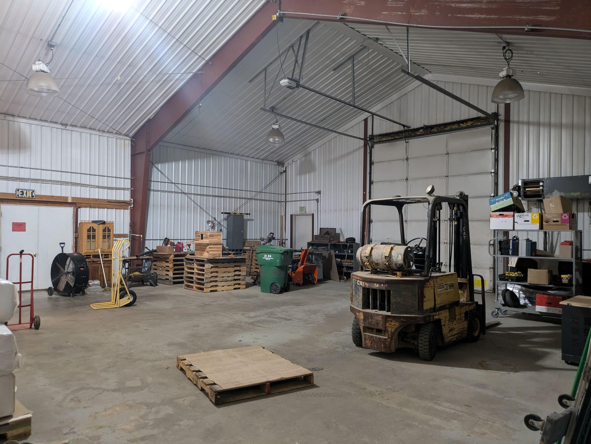 Free-standing building with retail showroom, warehouse space, and RV storage.