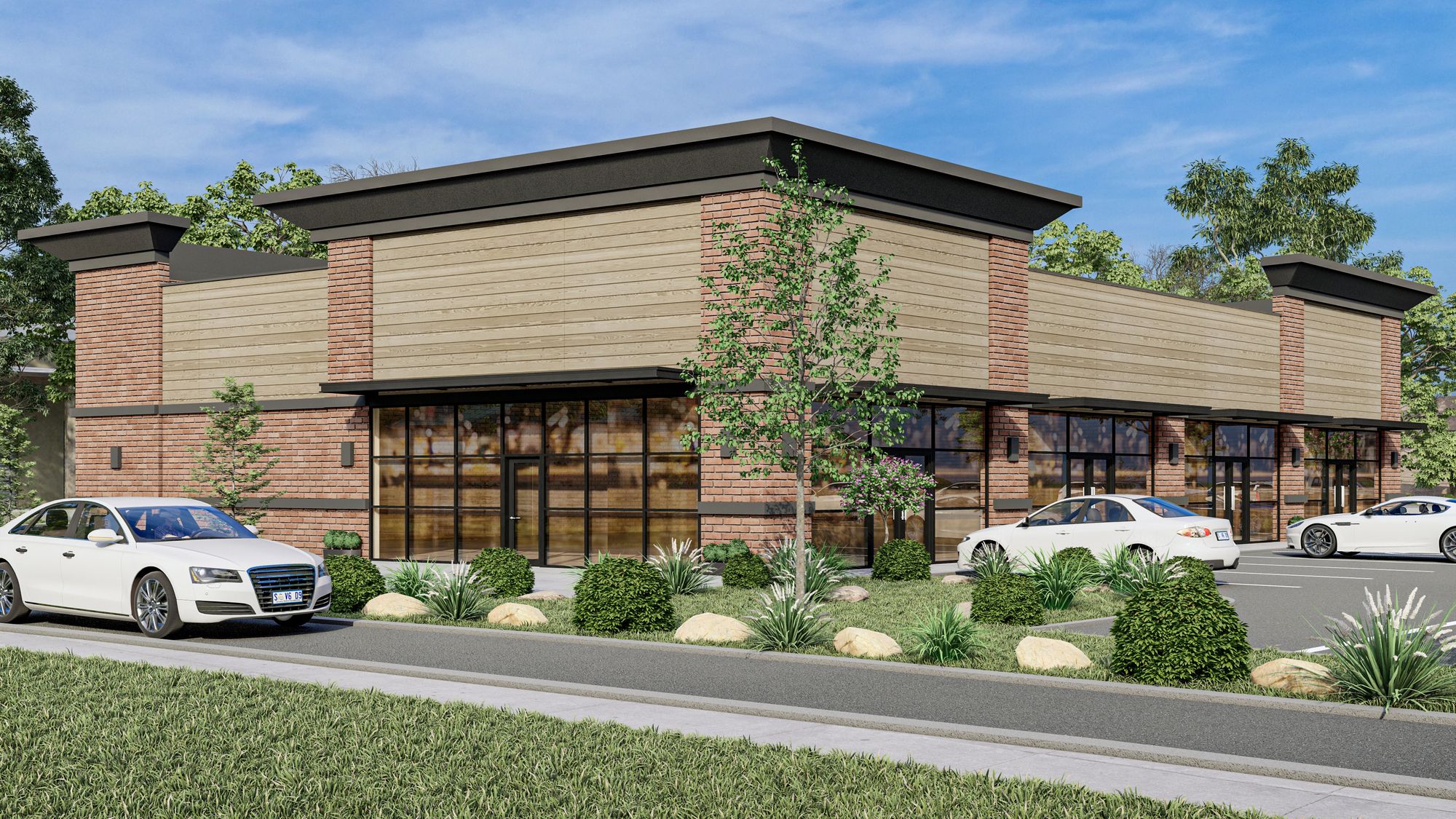 Retail spaces available in high-traffic area near national retailers.