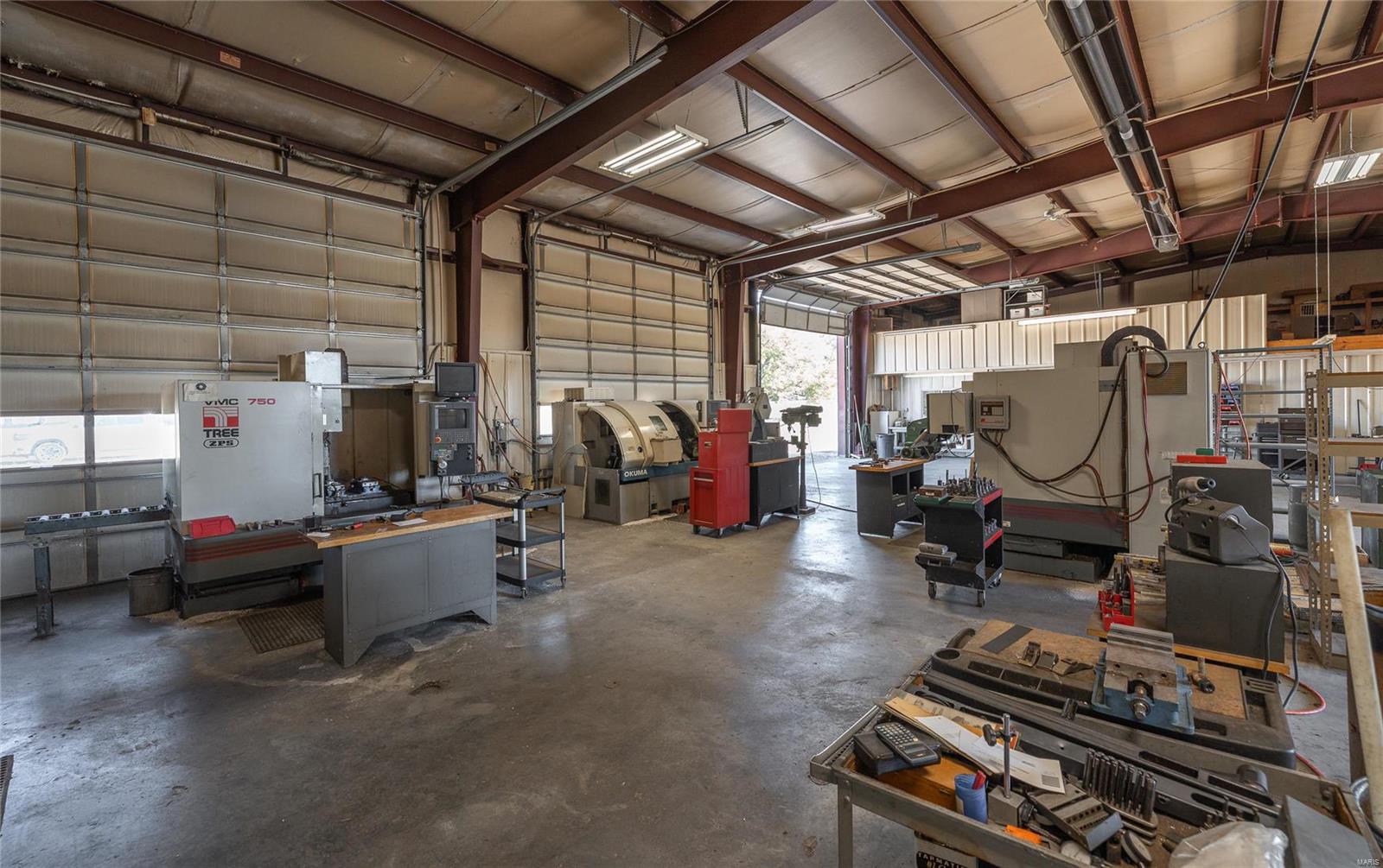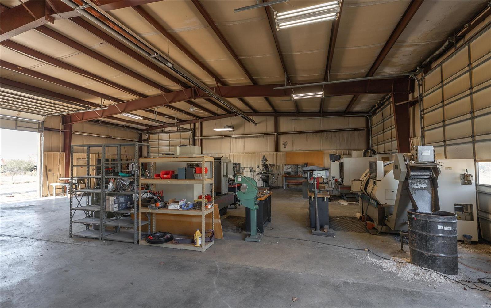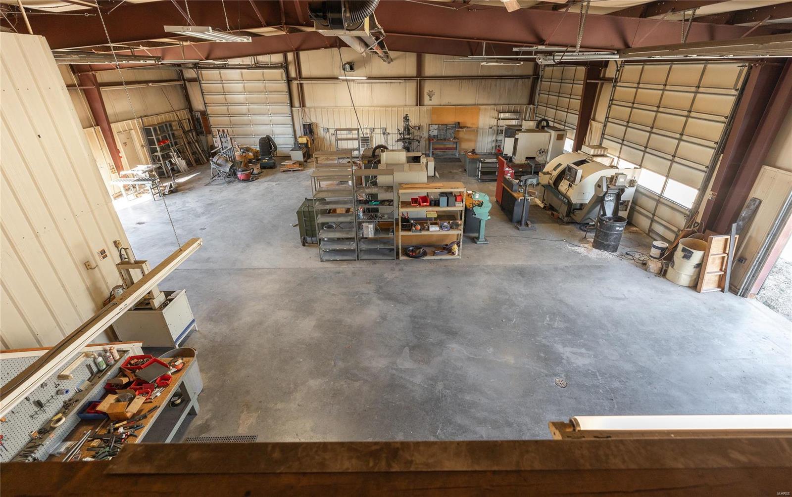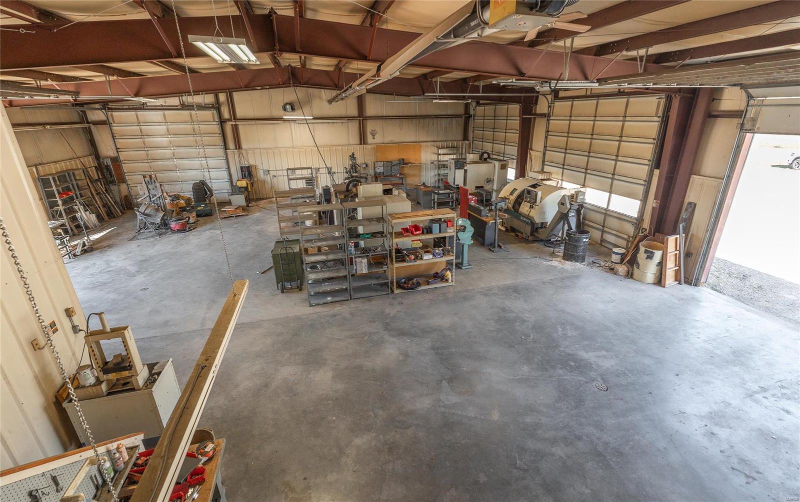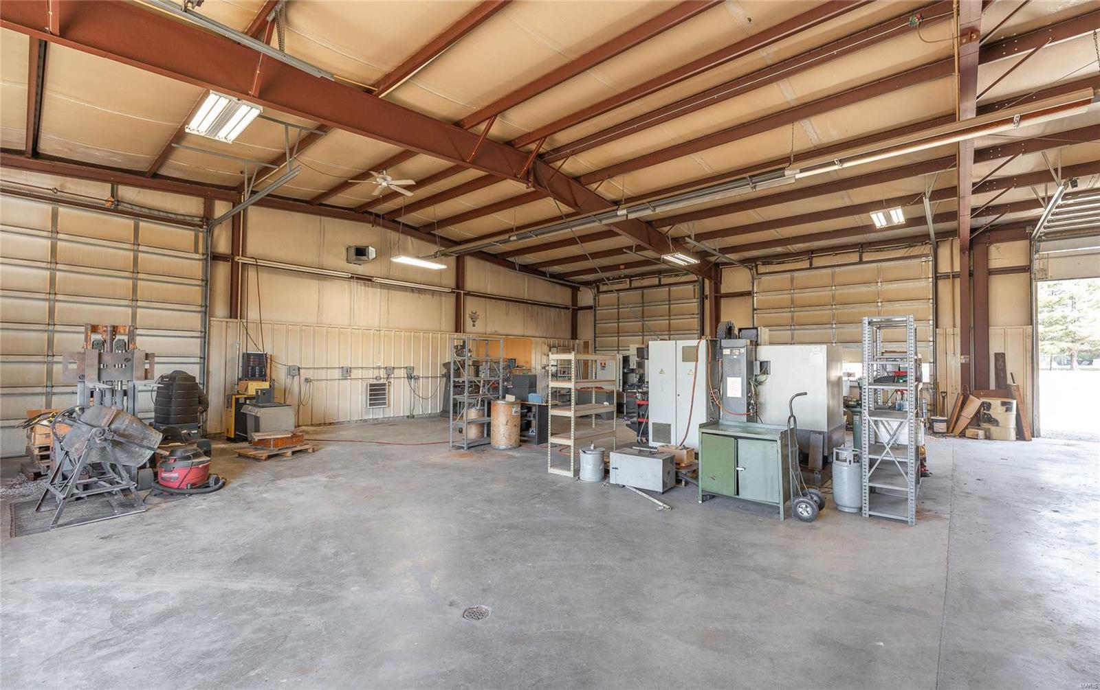 This property features: 4800 sqft Red‑Iron Metal building on 3 acres with HIGHWAY FRONTAGE.; Features (5) 14' W x 14' H overhead doors and 10 commercial grade concrete floor with floor drains.; Versatile space suitable for shop, repair, storage, manufacturing, or warehouse use.