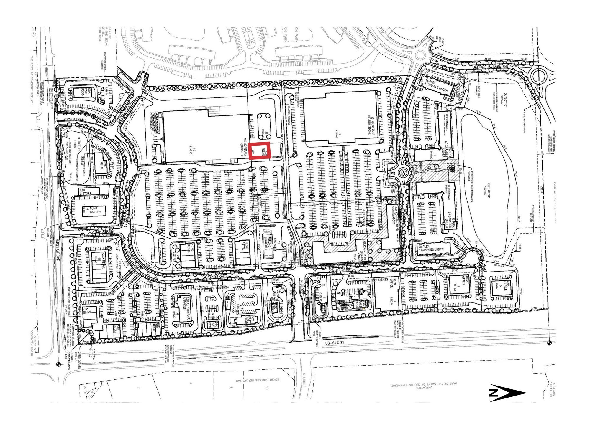 Retail space for lease adjacent to a planned grocery store.