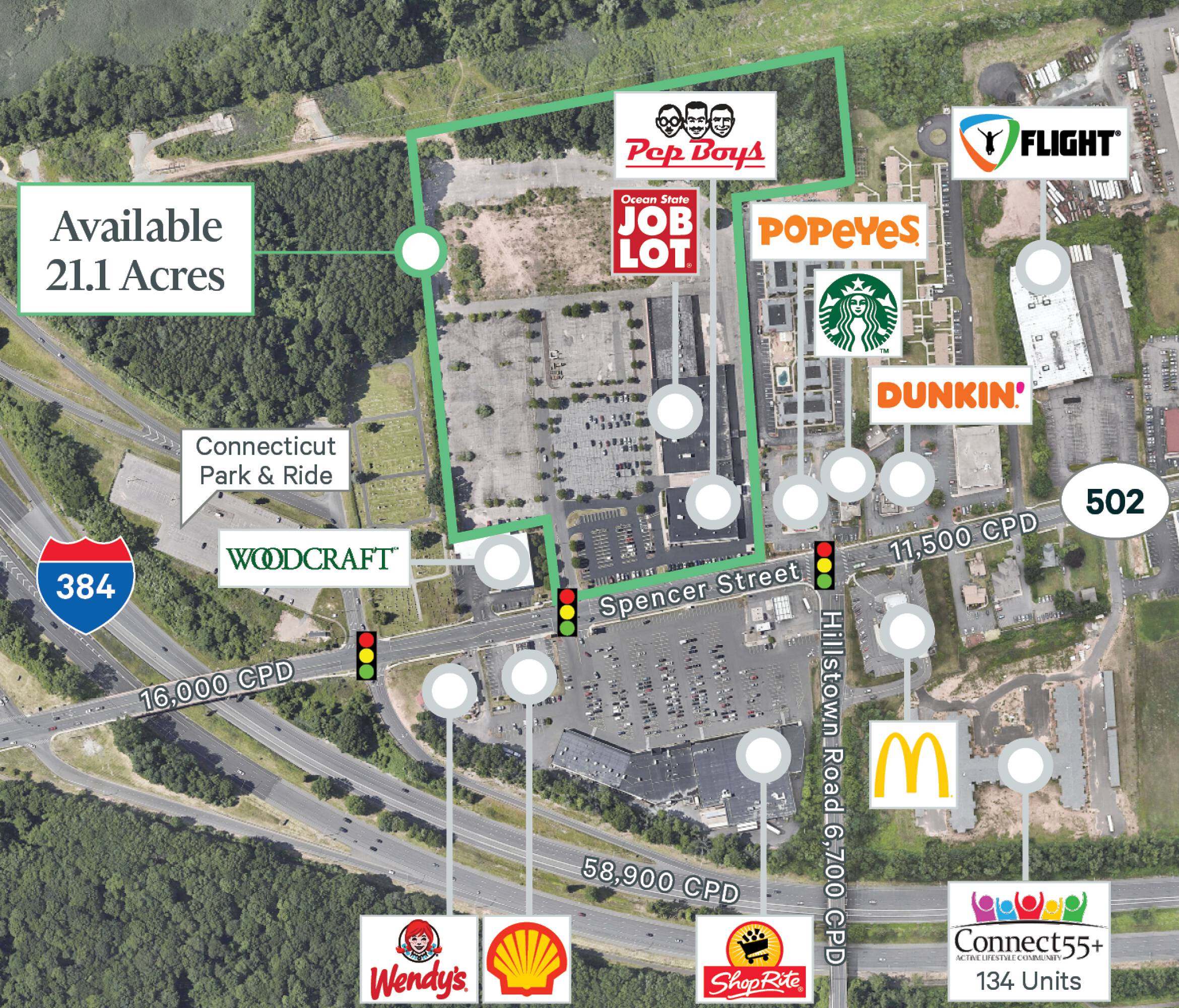 Commercial land parcel with existing building near I-384 and I-84.