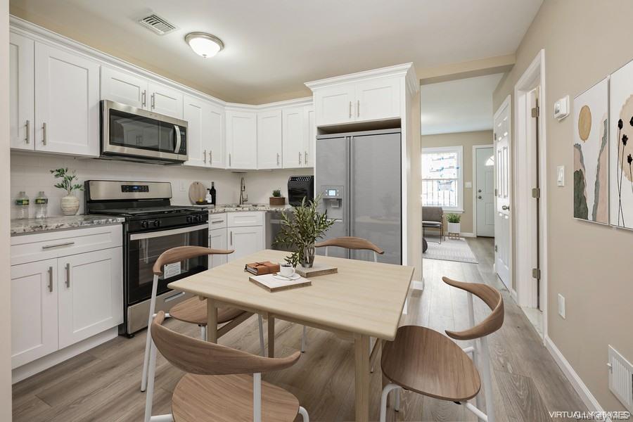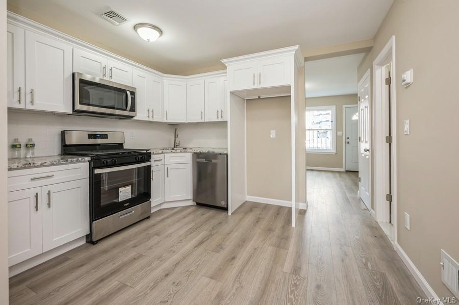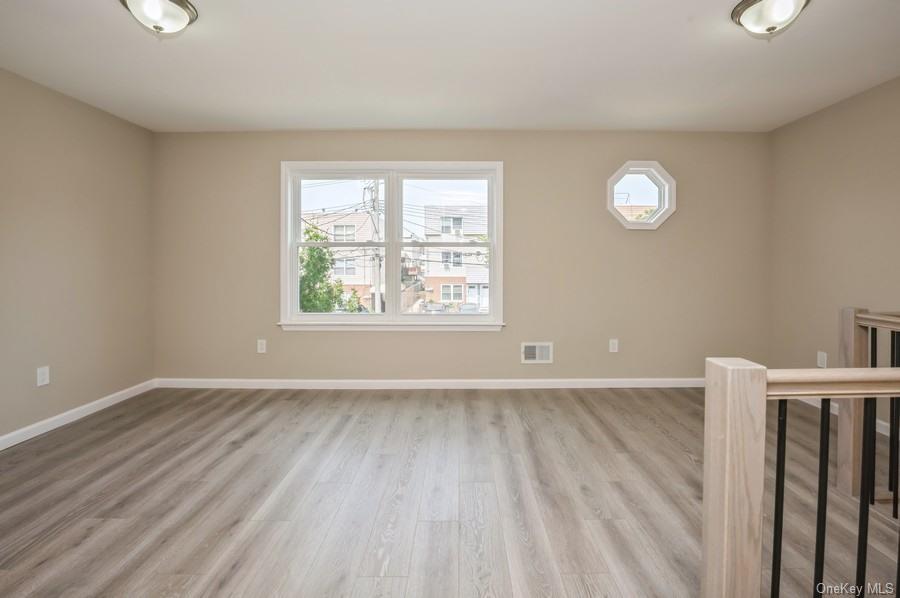 This semi-attached two-family home features a fenced-in yard. The main unit includes three bedrooms and 2 1/2 baths. The lower unit is a two-bedroom, one-bath space, suitable for family or rental income. Both units have been fully renovated and feature granite countertops and stainless-steel appliances. The property size is 2325 square feet.