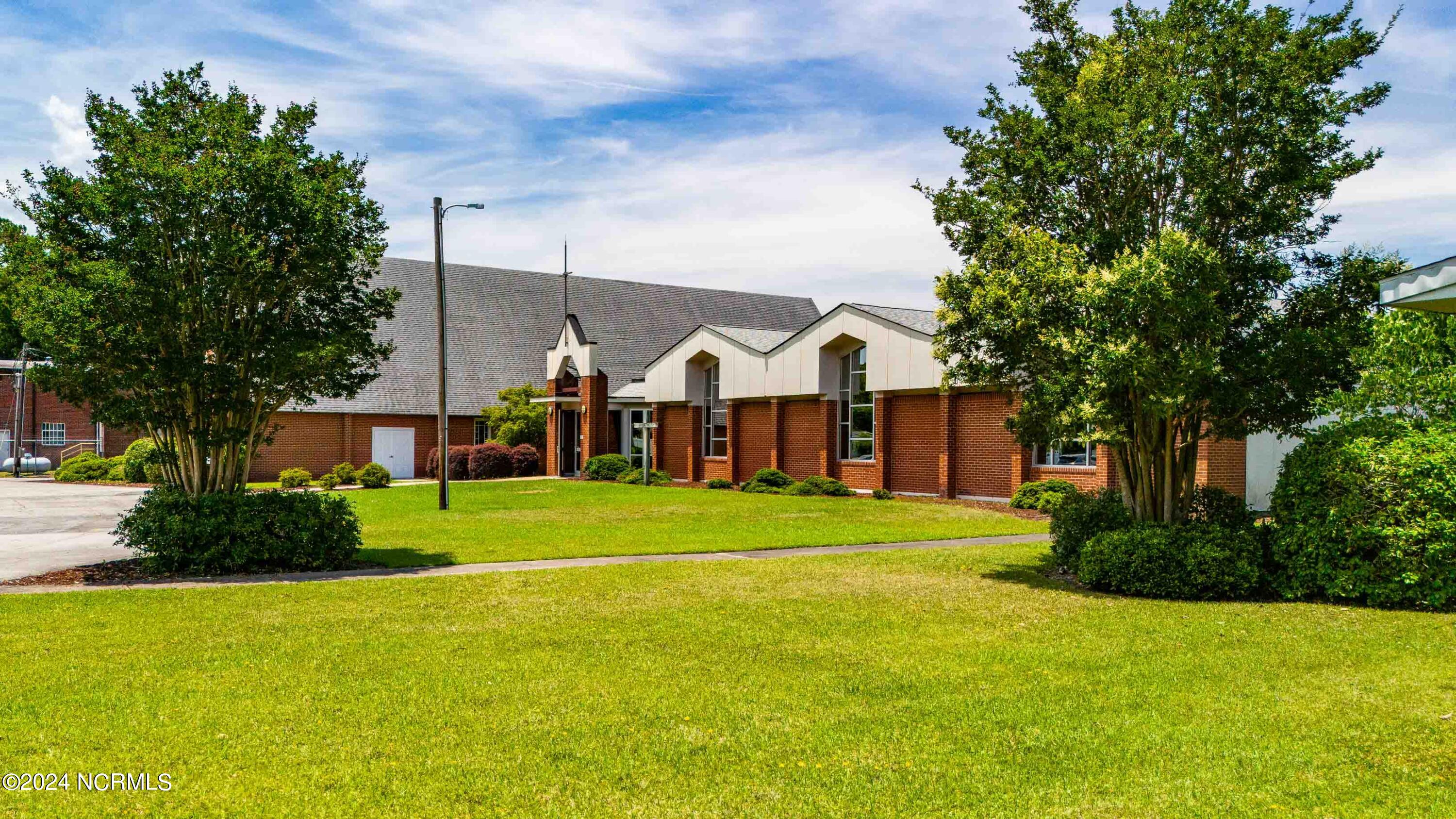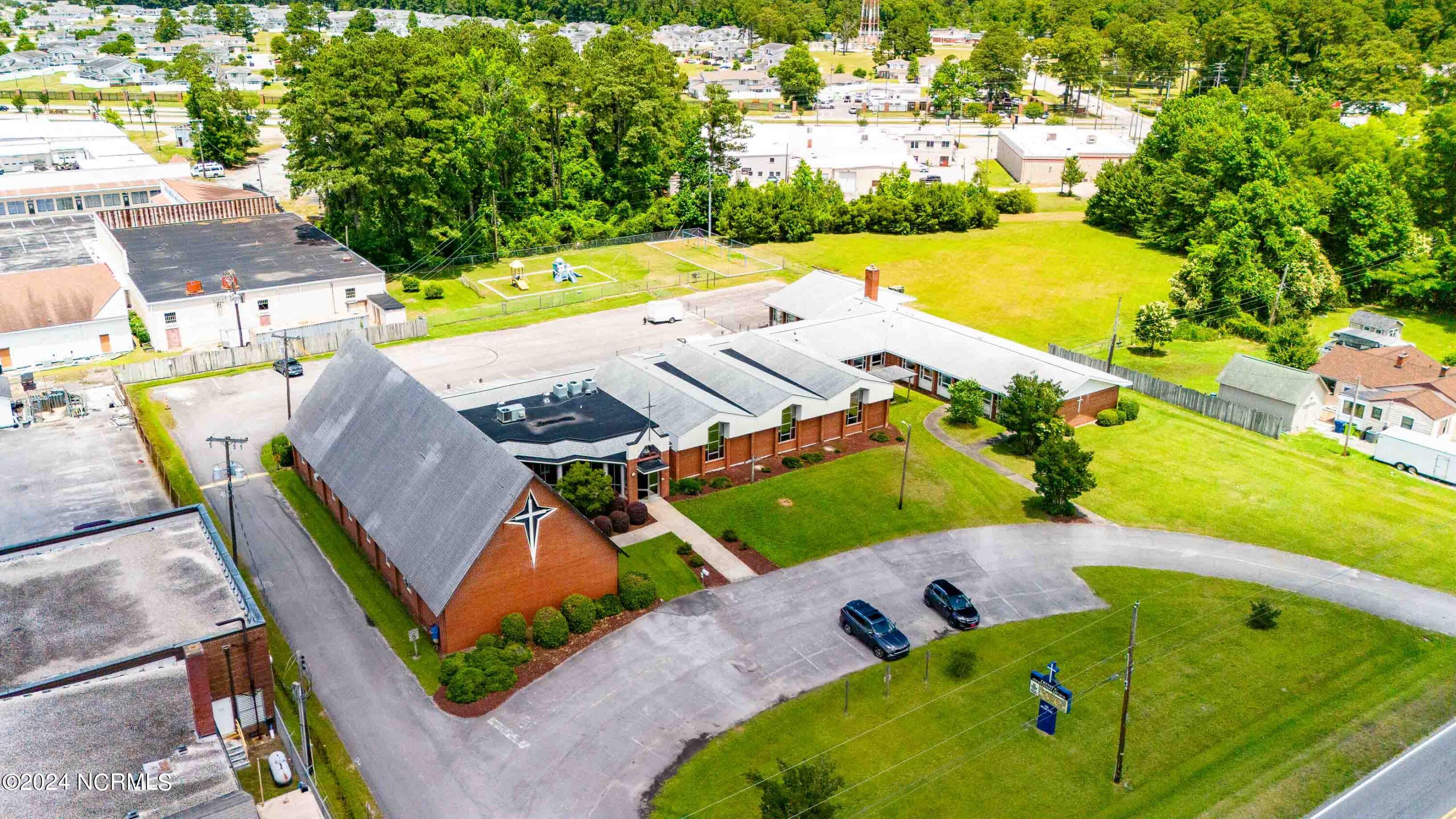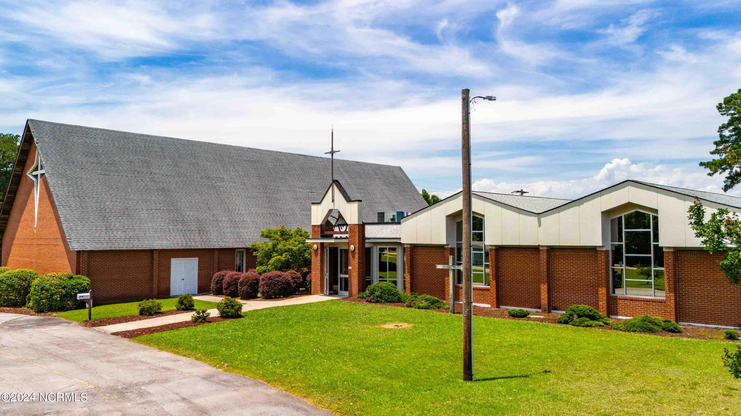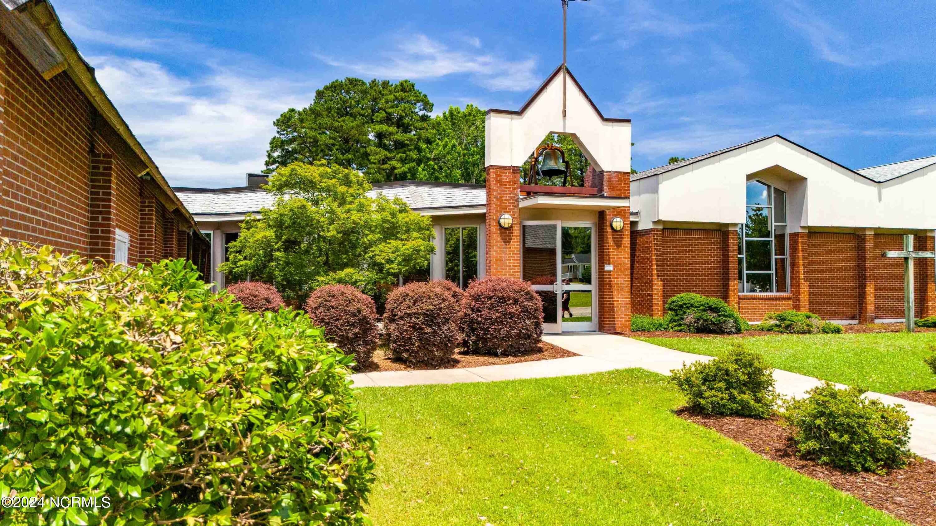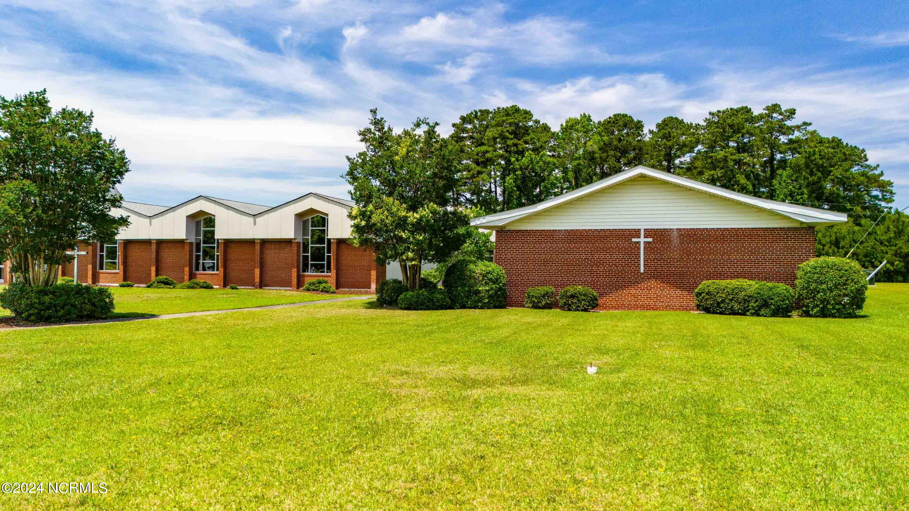 The property features an existing 12,407-square-foot building situated on over 3 acres in Havelock. The building includes a sanctuary with a gallery, a fellowship hall, classrooms, and two offices. Located approximately 0.2 miles from Highway 70, the property is surrounded by a mix of single-family residential and neighborhood commercial developments. The property includes parcel ID 6-060-069.