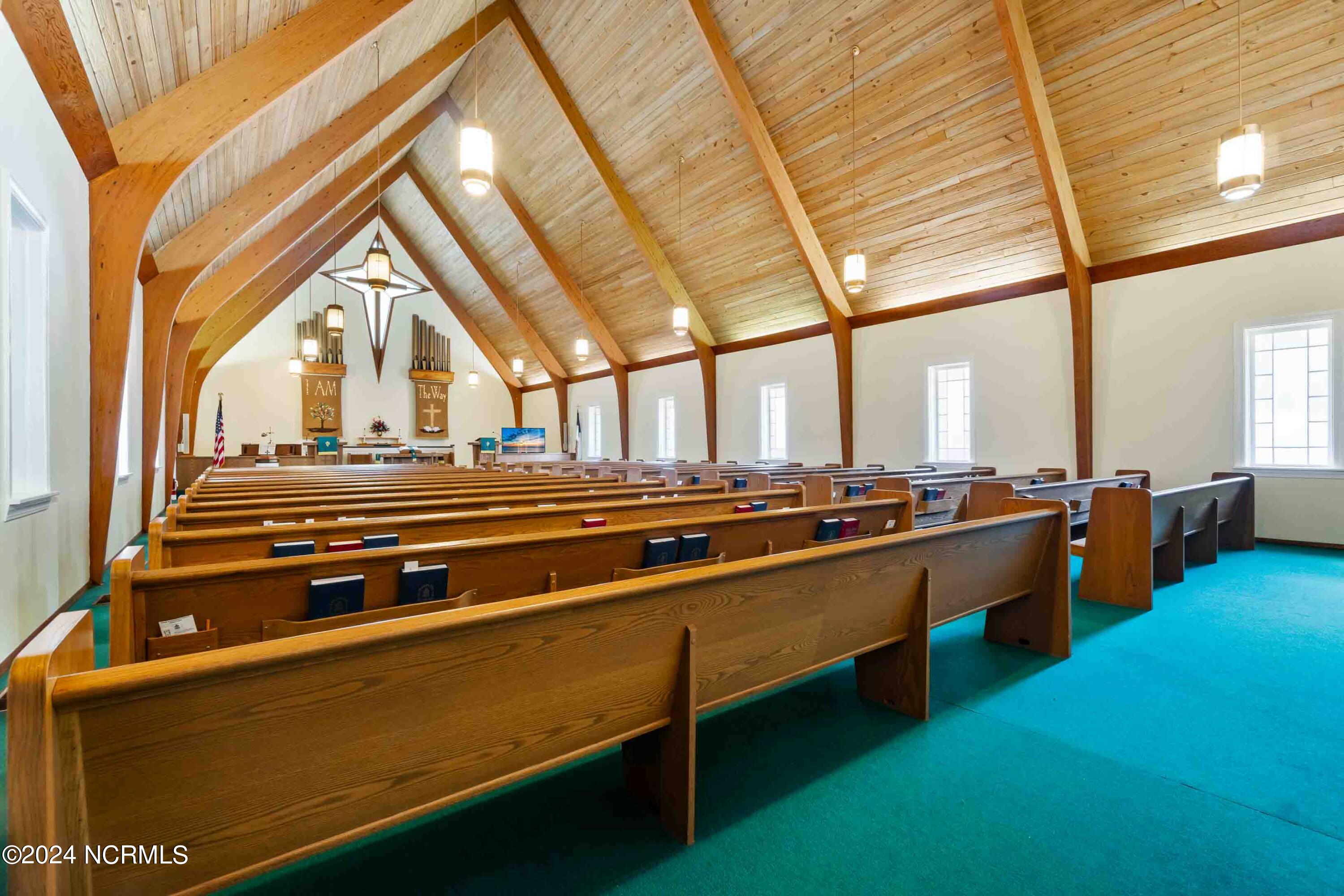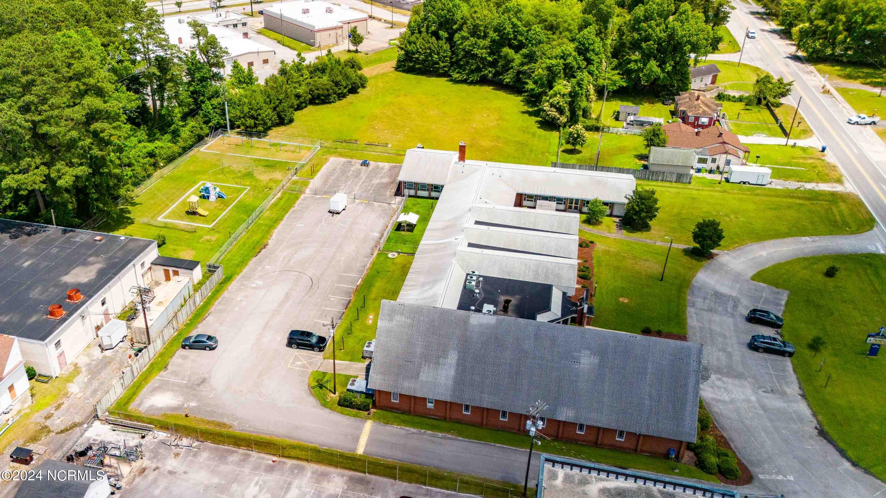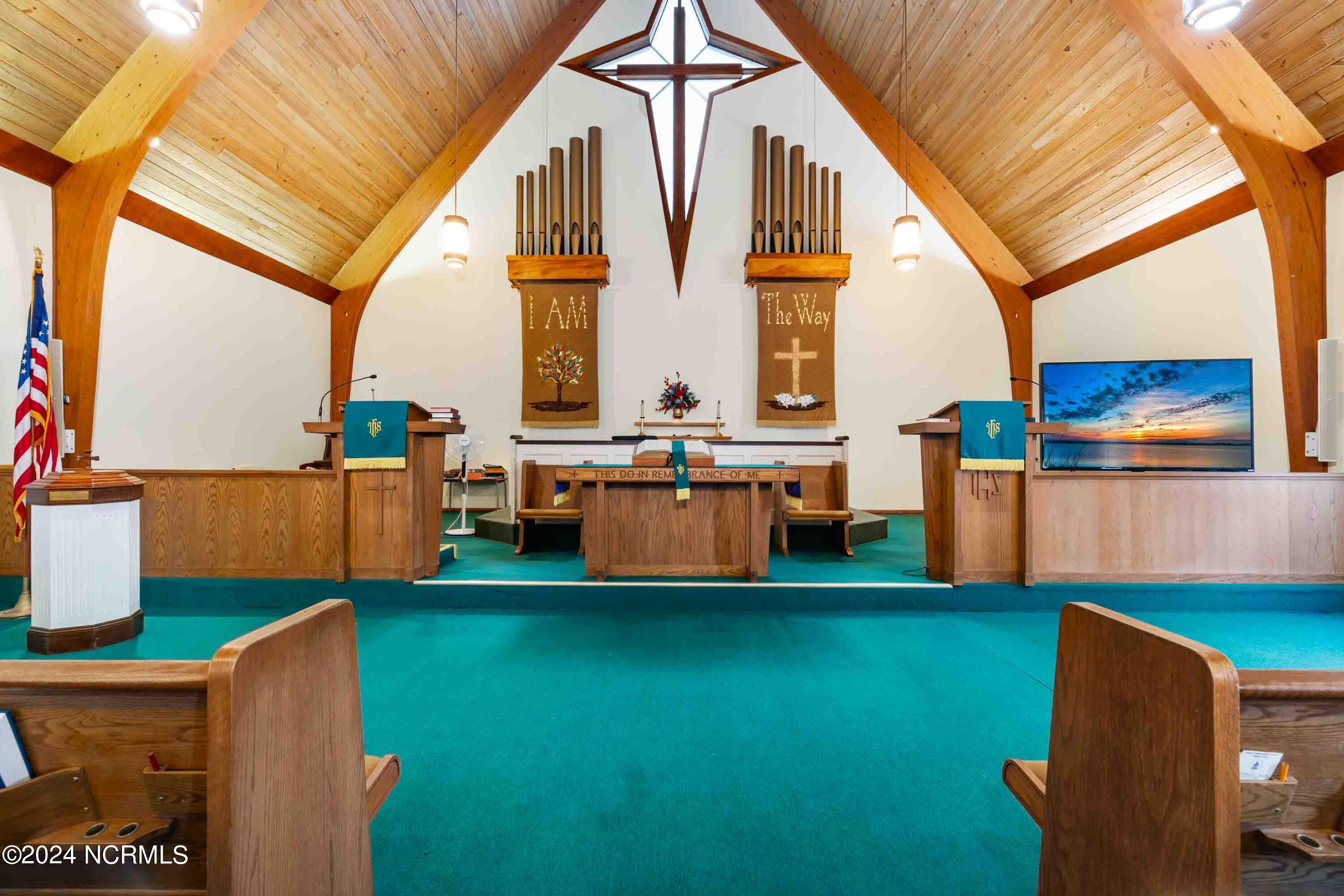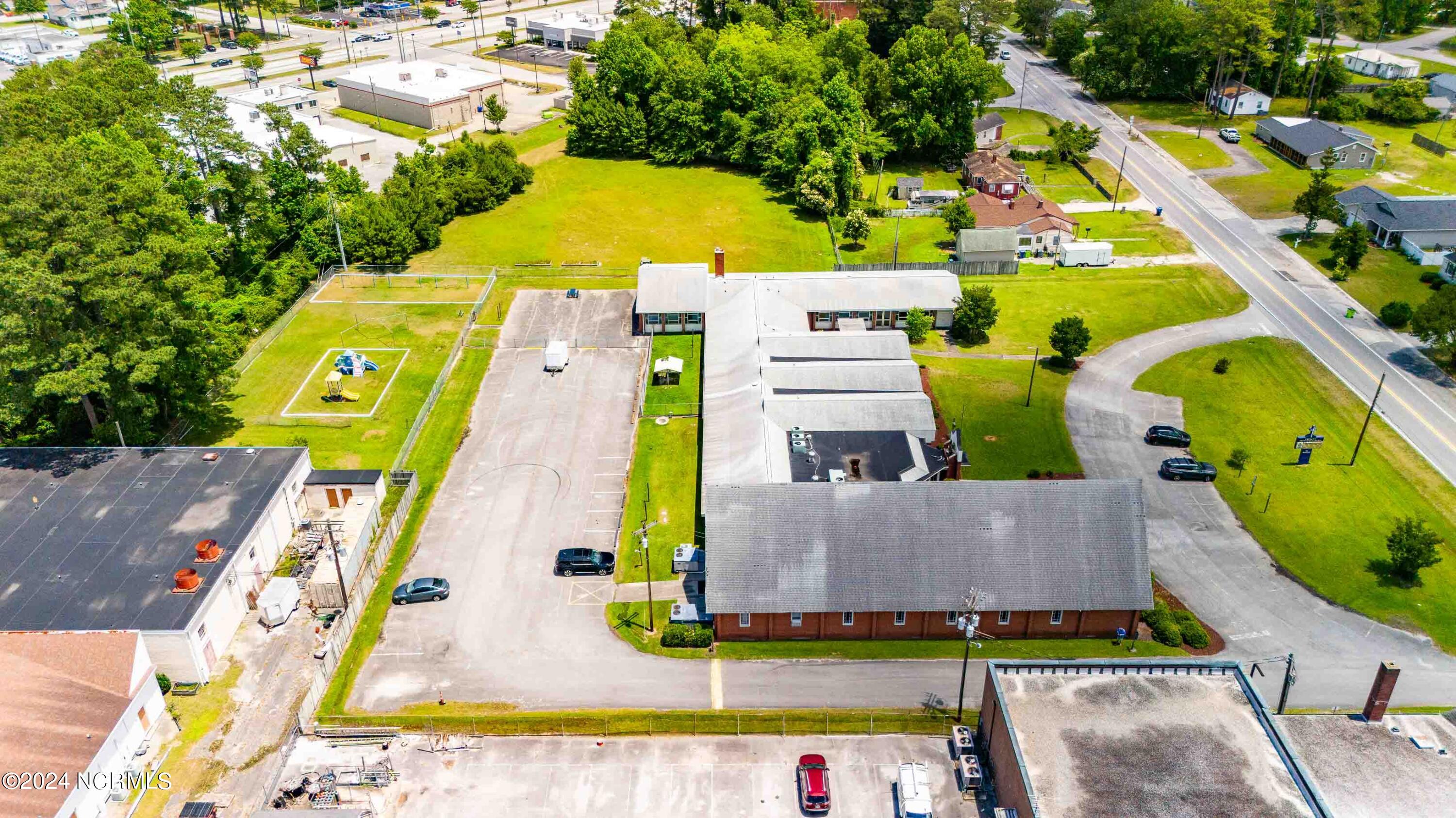 The property features an existing 12,407-square-foot building situated on over 3 acres in Havelock. The building includes a sanctuary with a gallery, a fellowship hall, classrooms, and two offices. Located approximately 0.2 miles from Highway 70, the property is surrounded by a mix of single-family residential and neighborhood commercial developments. The property includes parcel ID 6-060-069.