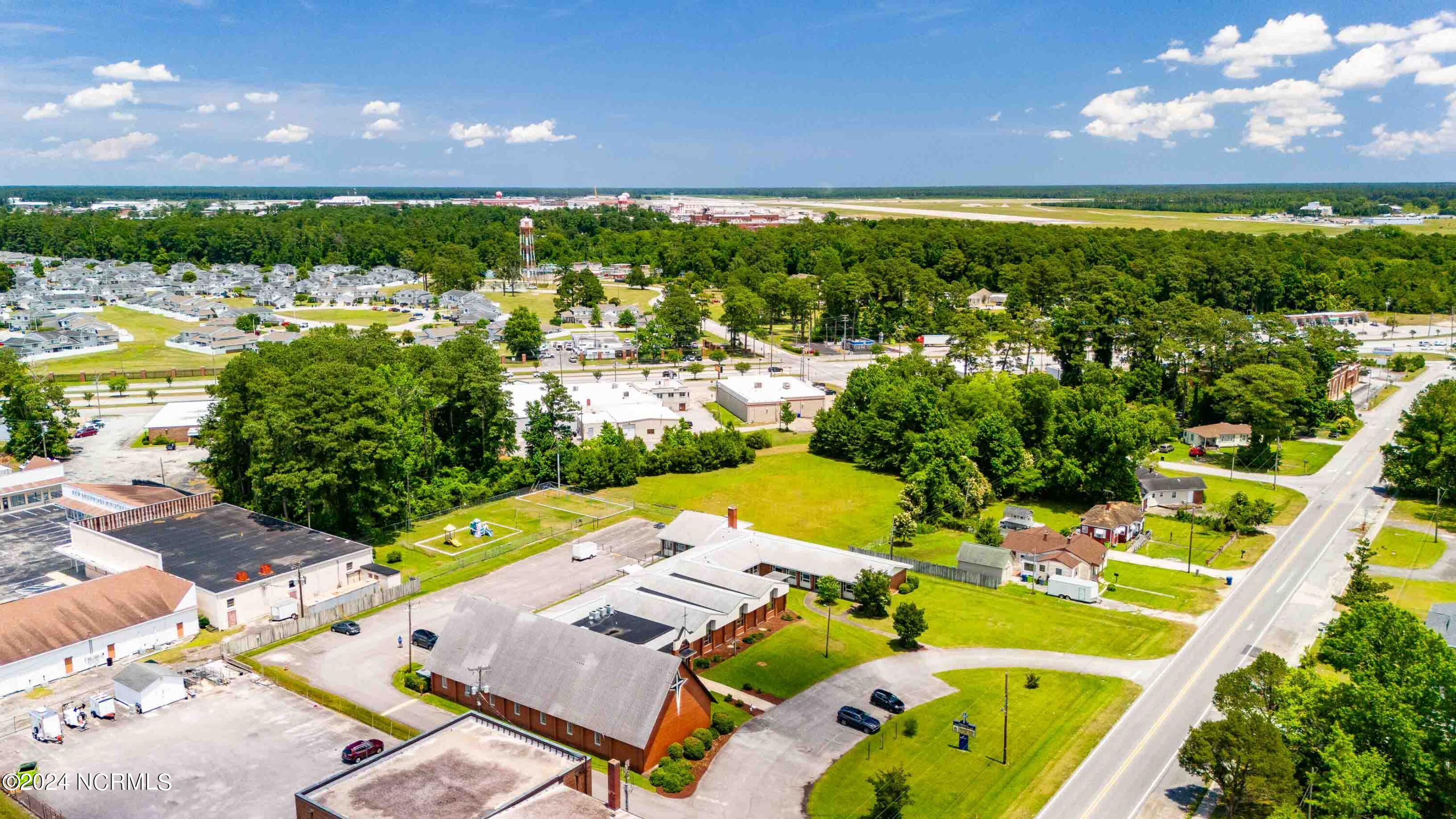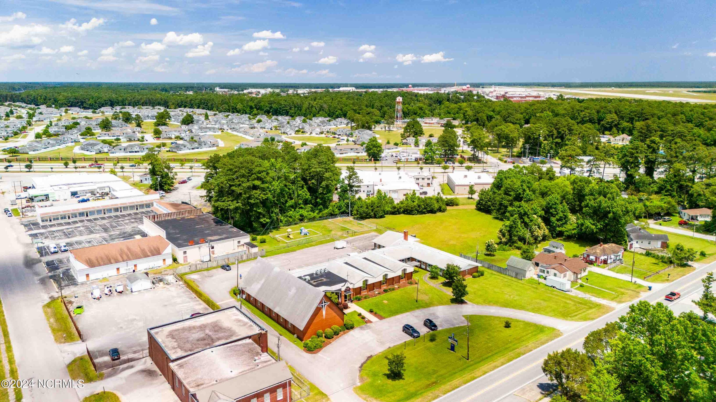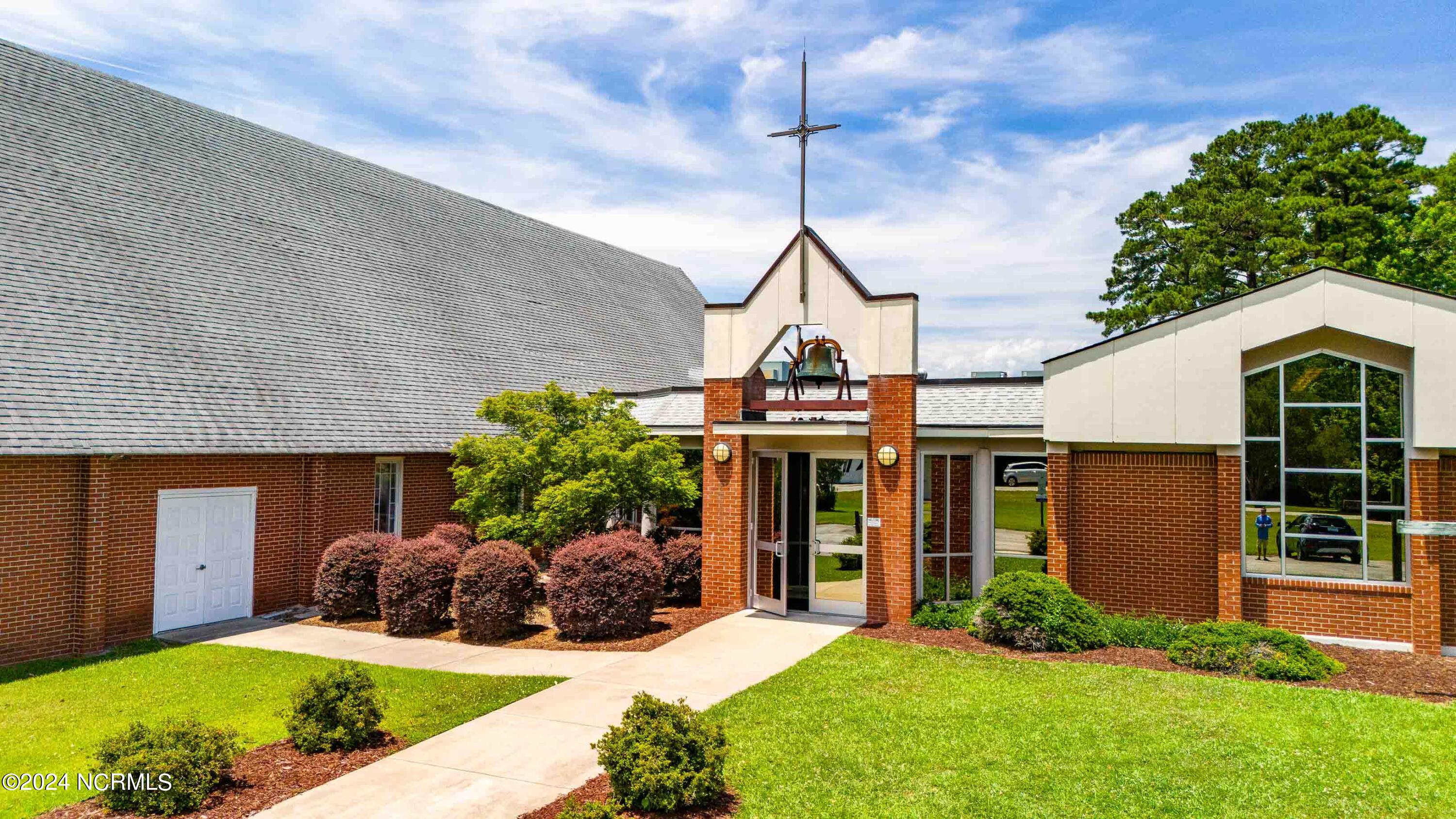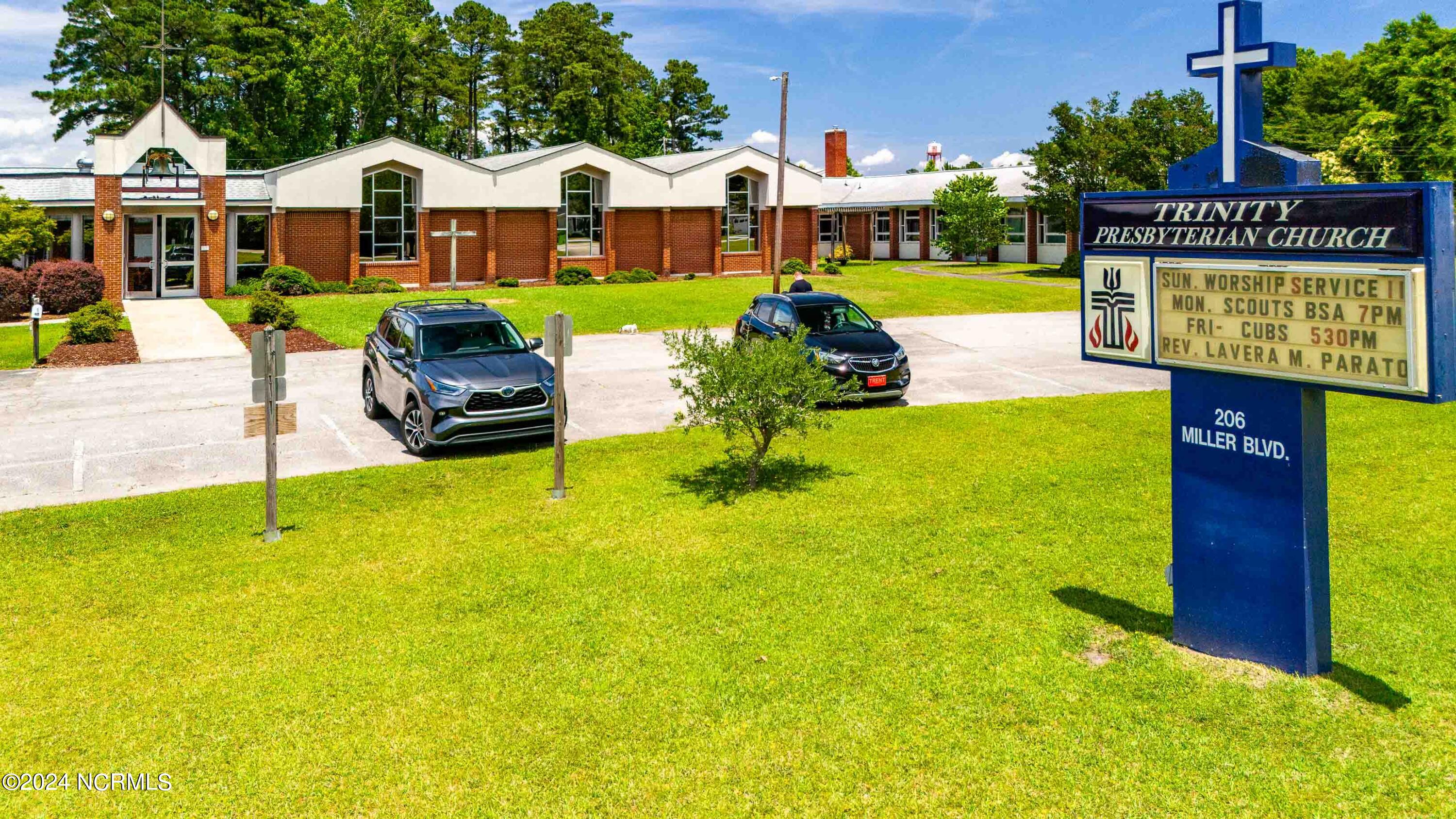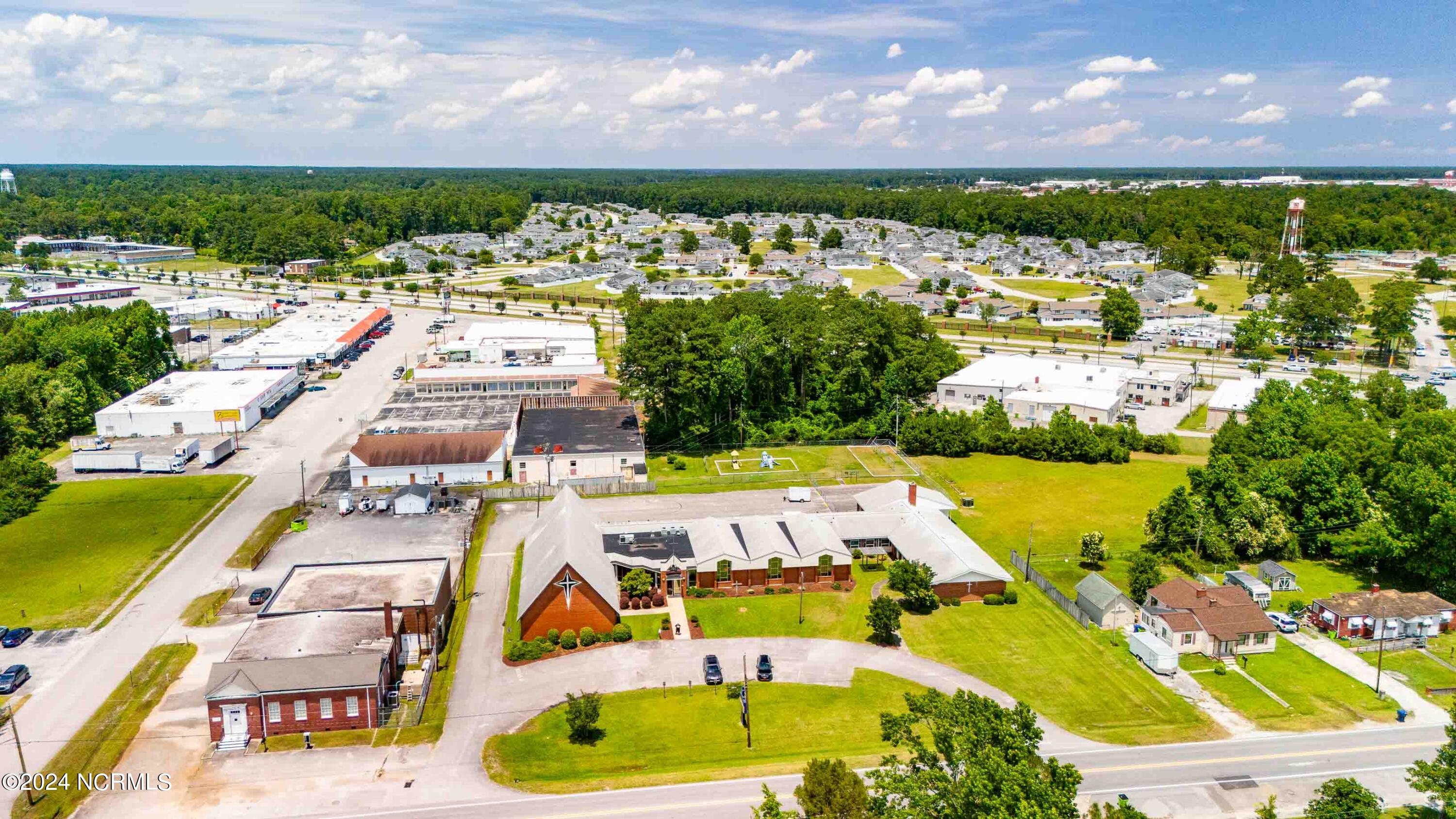 The property features an existing 12,407-square-foot building situated on over 3 acres in Havelock. The building includes a sanctuary with a gallery, a fellowship hall, classrooms, and two offices. Located approximately 0.2 miles from Highway 70, the property is surrounded by a mix of single-family residential and neighborhood commercial developments. The property includes parcel ID 6-060-069.