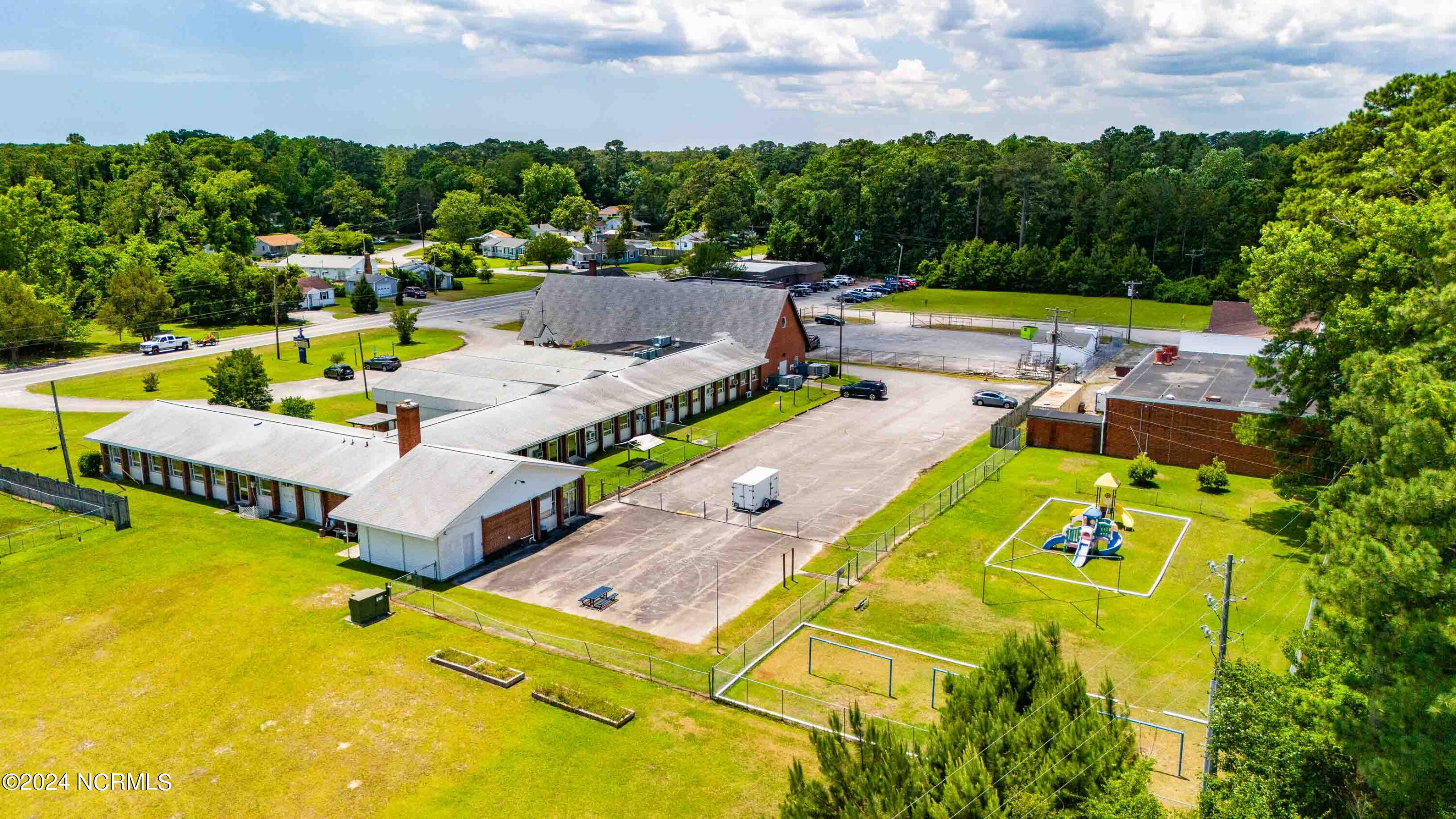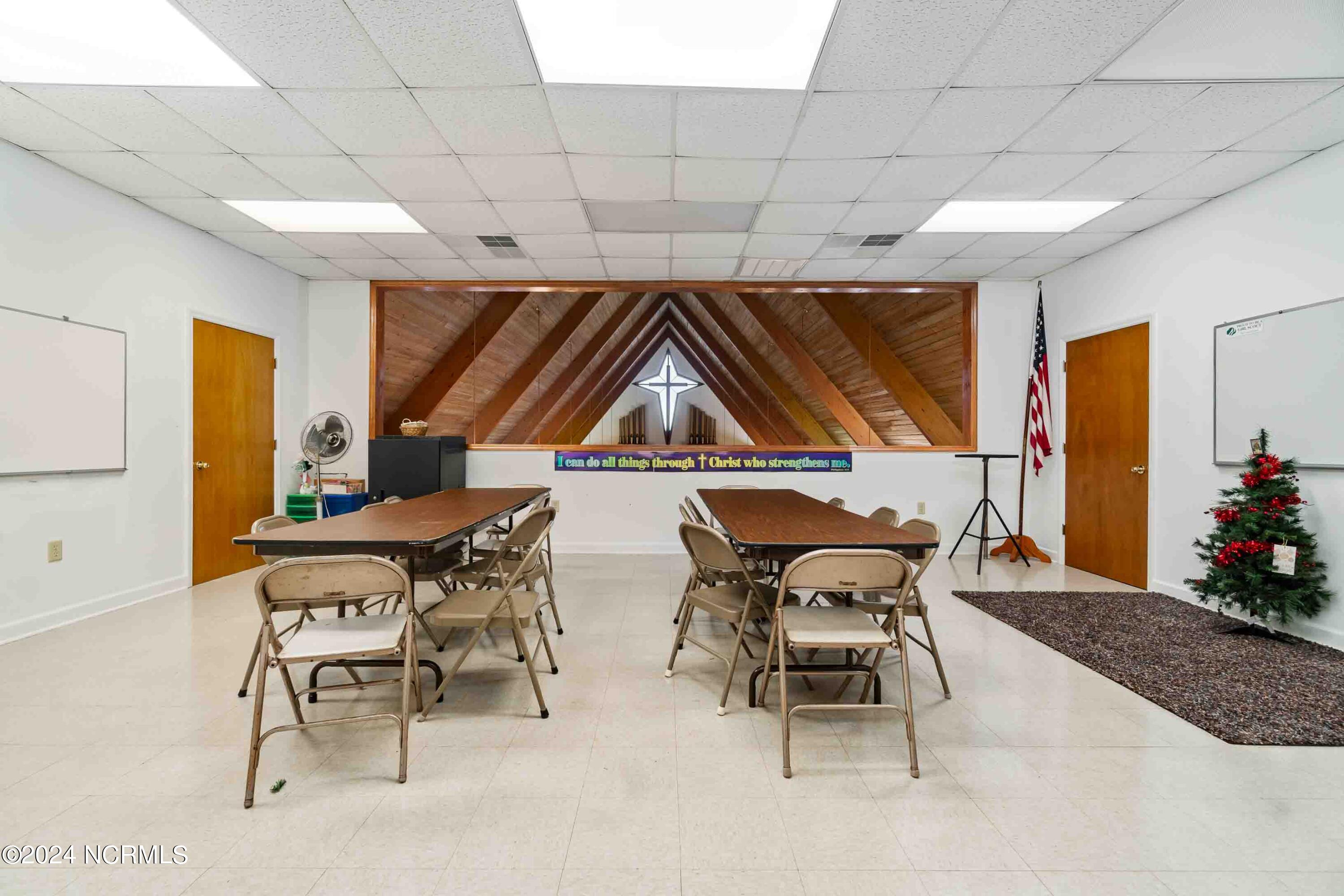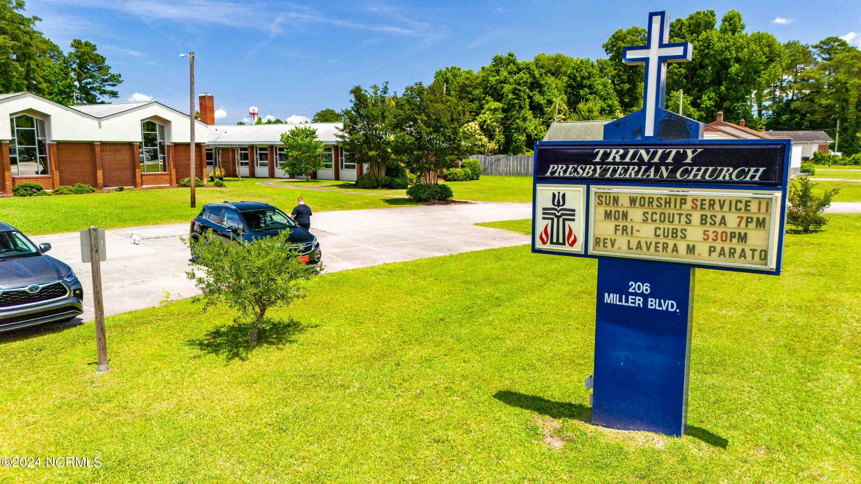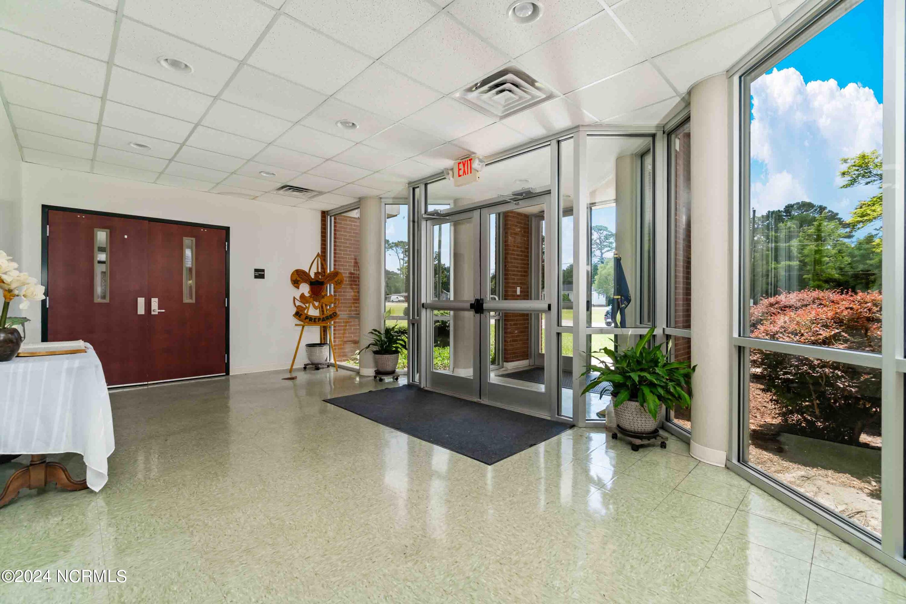 The property features an existing 12,407-square-foot building situated on over 3 acres in Havelock. The building includes a sanctuary with a gallery, a fellowship hall, classrooms, and two offices. Located approximately 0.2 miles from Highway 70, the property is surrounded by a mix of single-family residential and neighborhood commercial developments. The property includes parcel ID 6-060-069.