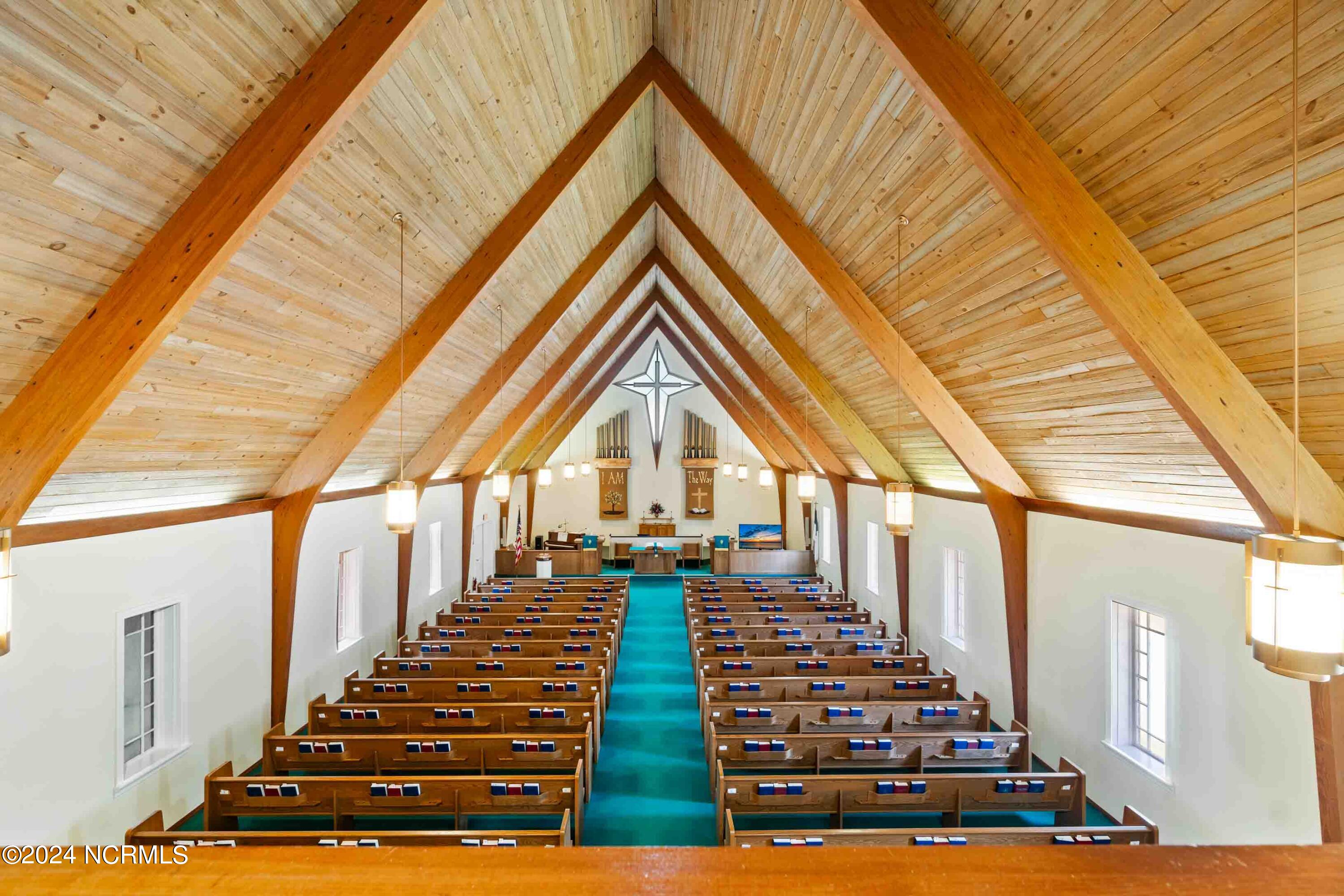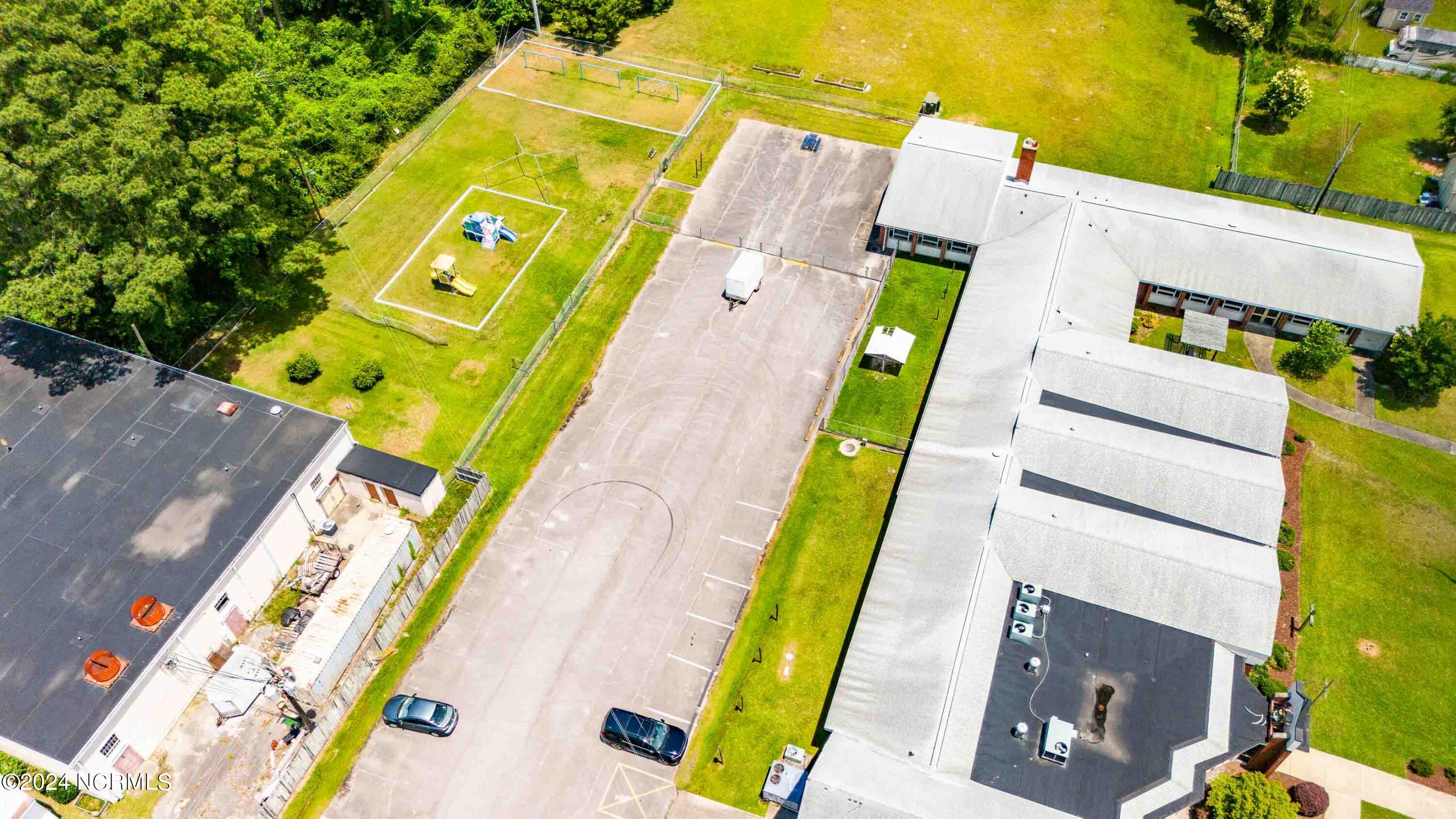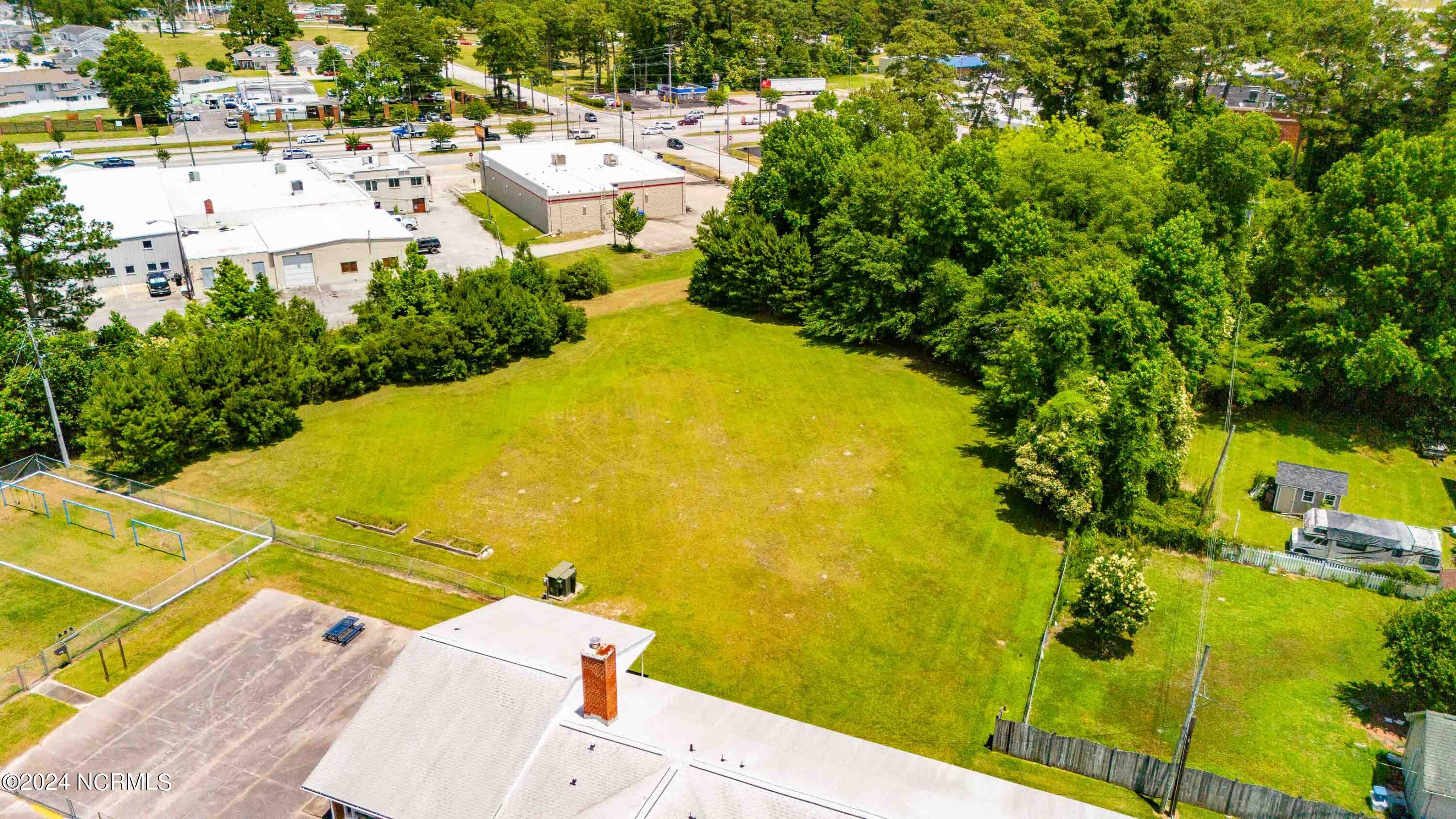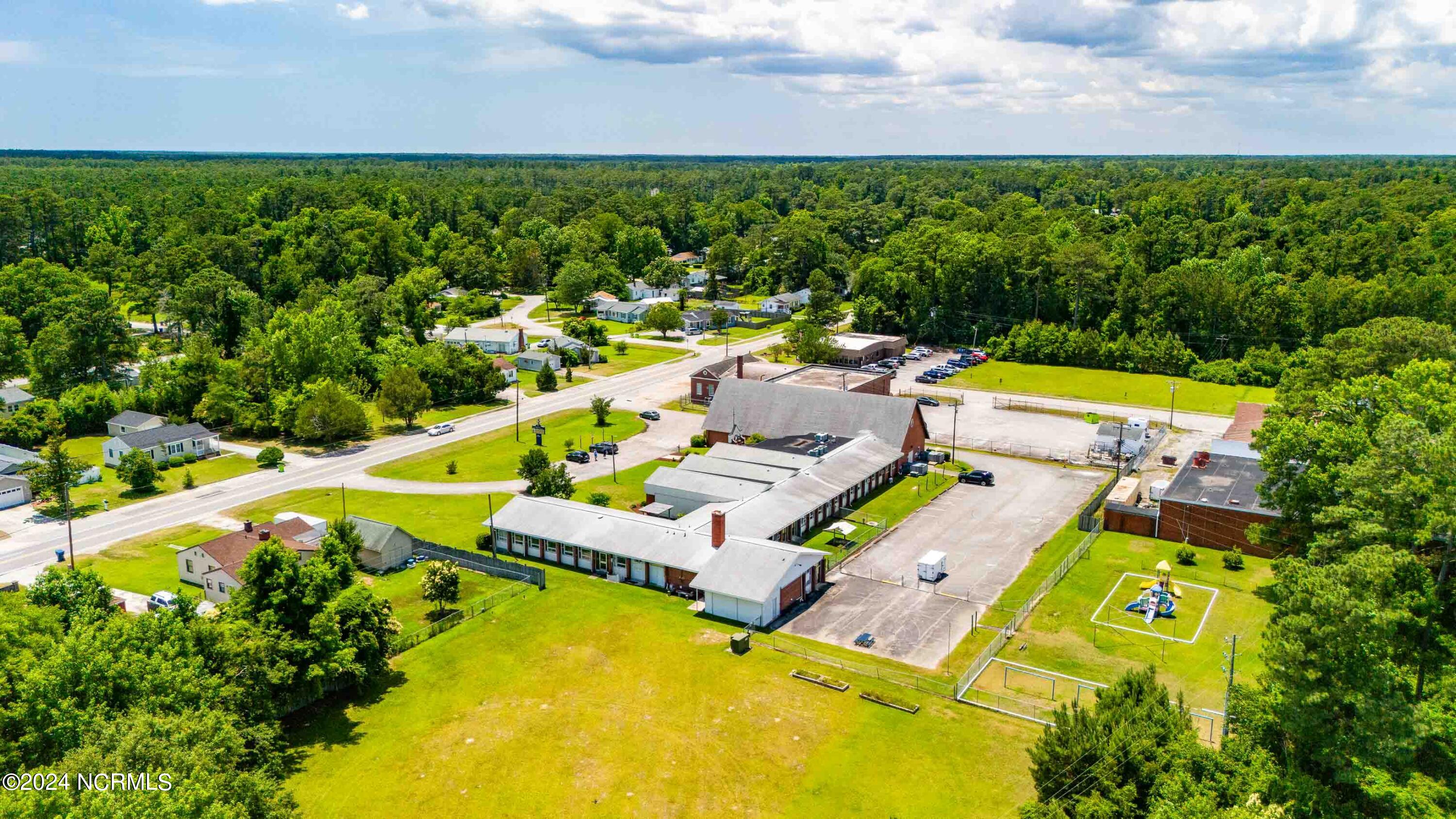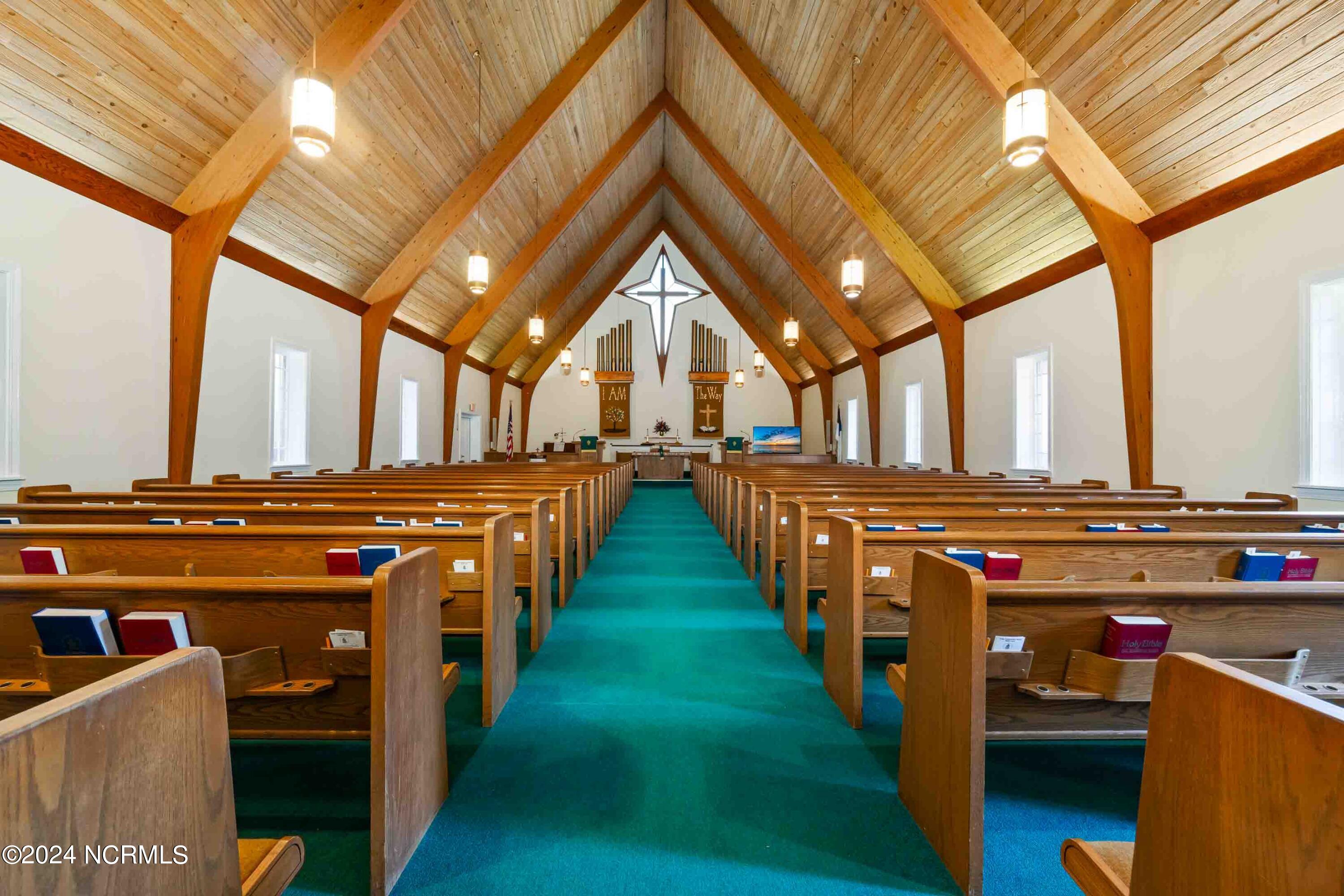 The property features an existing 12,407-square-foot building situated on over 3 acres in Havelock. The building includes a sanctuary with a gallery, a fellowship hall, classrooms, and two offices. Located approximately 0.2 miles from Highway 70, the property is surrounded by a mix of single-family residential and neighborhood commercial developments. The property includes parcel ID 6-060-069.