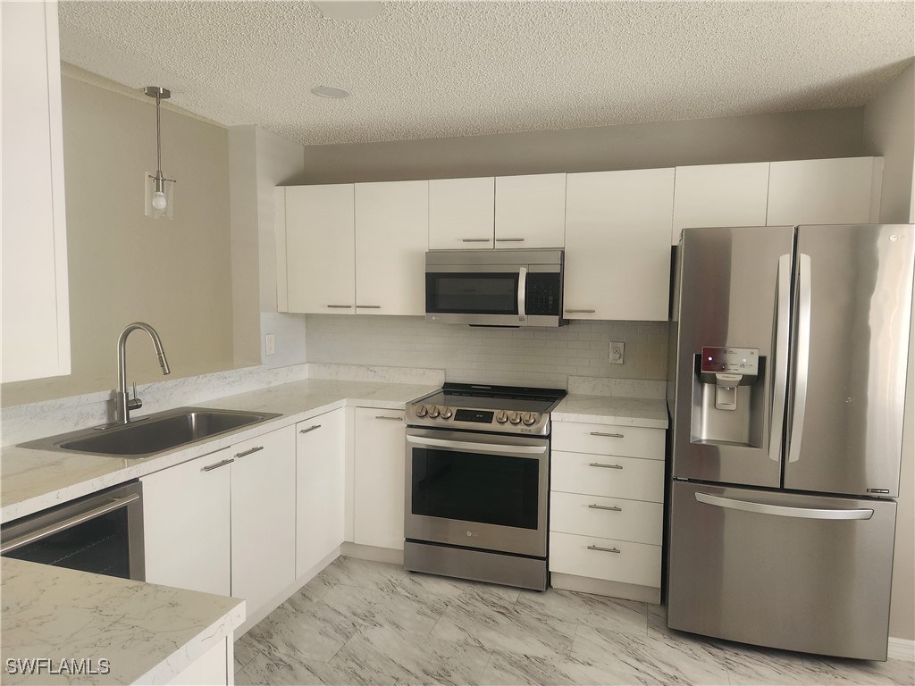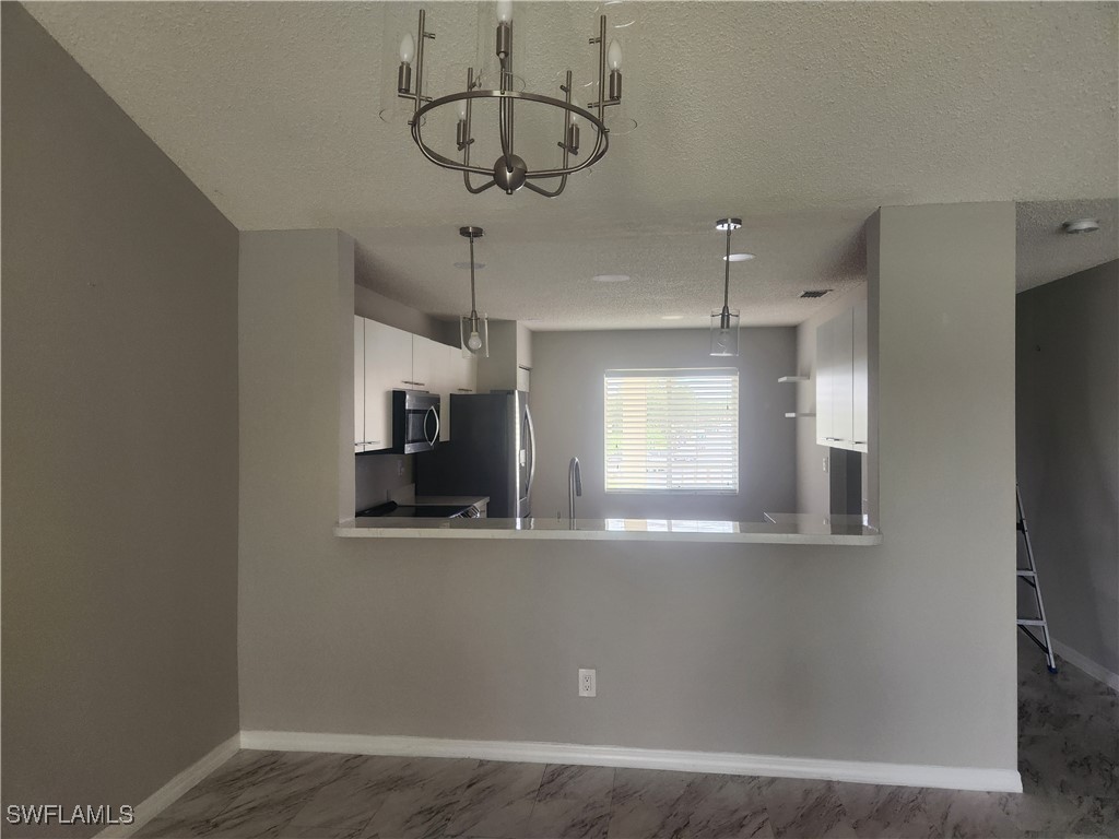 This condominium offers a view of a pond. The unit features a vaulted ceiling that provides lighting. It includes a large living and dining area suitable for entertaining. The bedrooms are arranged in a split floor plan, offering privacy. The property is conveniently located within a 5-minute drive to pharmacies, grocery stores, restaurants, bowling alleys, and gas stations. Additionally, I-75 is within 10 minutes, and downtown Naples and beaches are within 15 minutes. The property has a size of 1239 square feet.