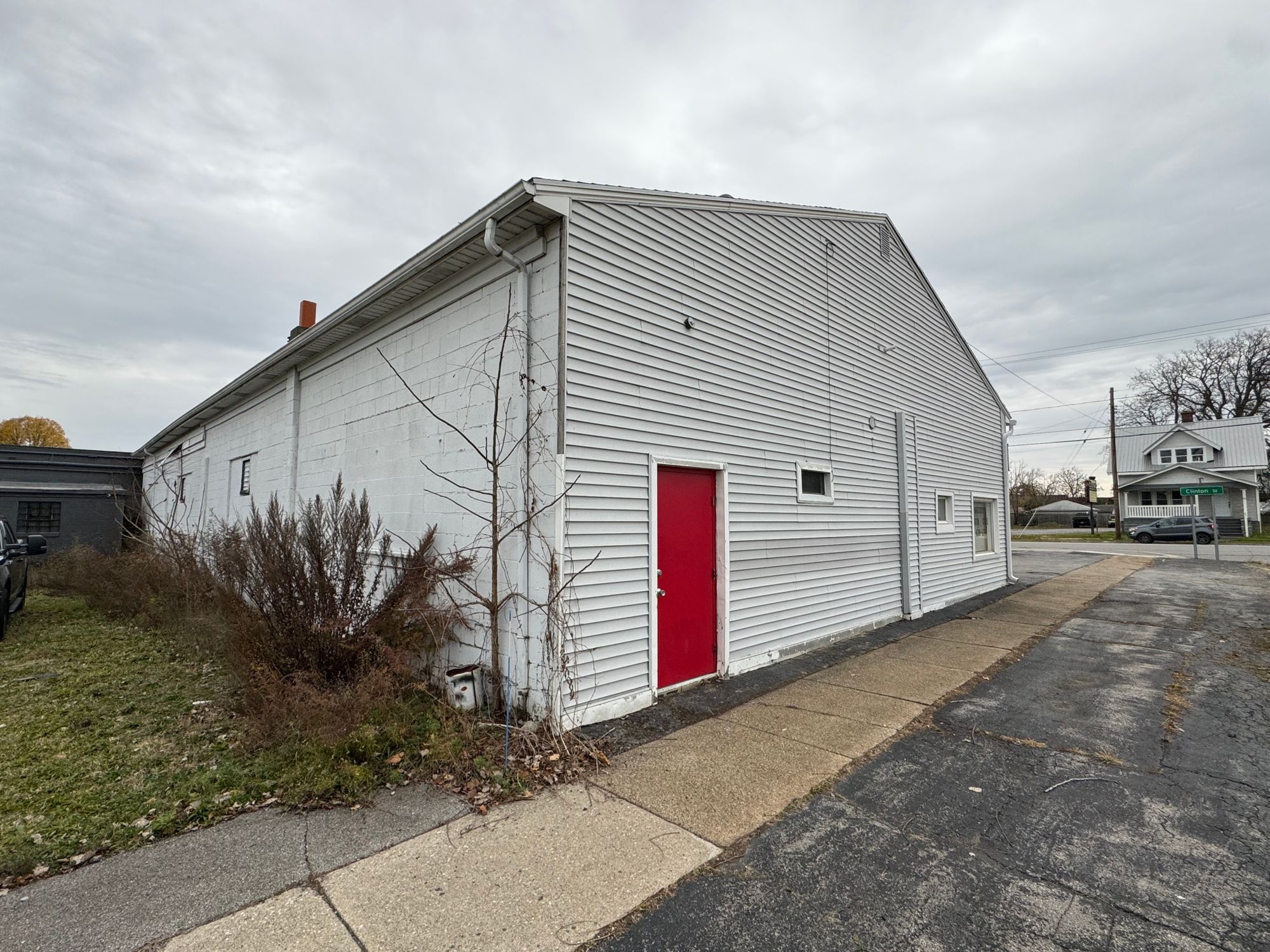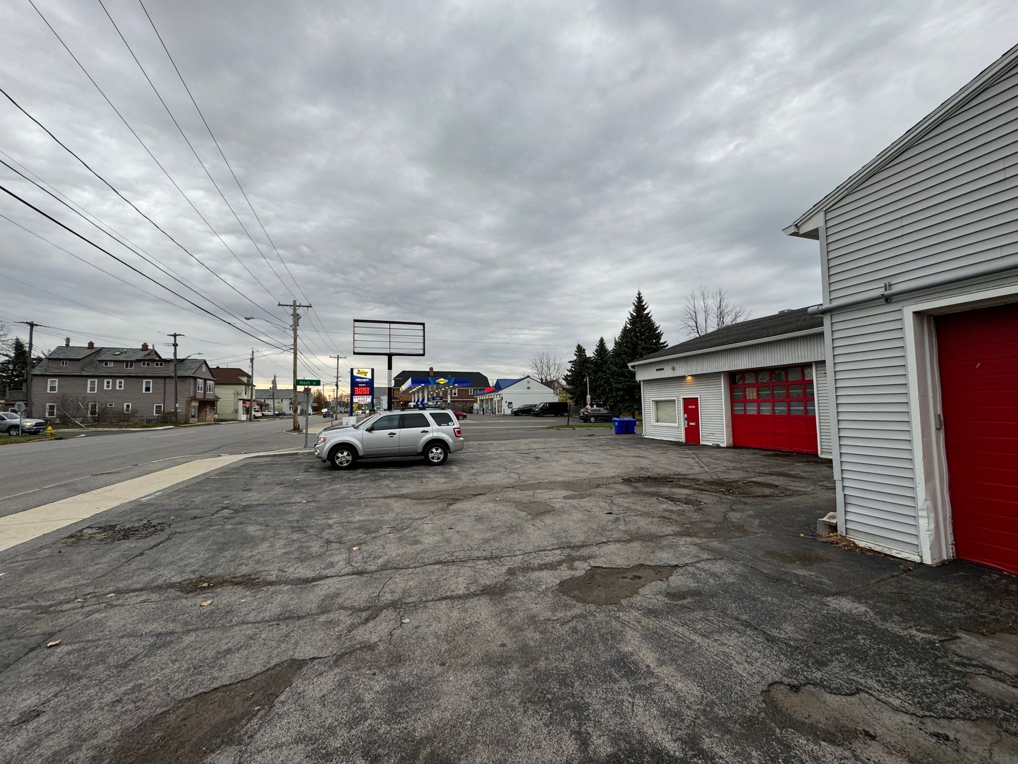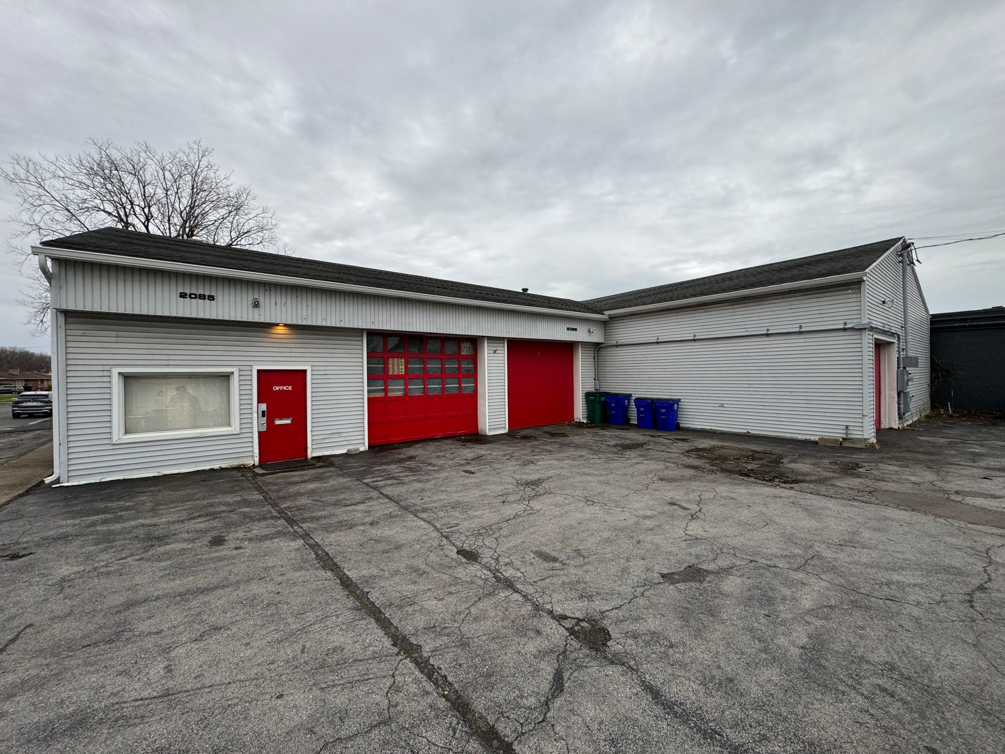 This auto repair shop at 2085 Clinton St in Kaisertown is being sold with a two-year lease in place for $12,000 NNN per month. The property is suited for auto or industrial workshop uses. It features three bays, two measuring 10x12 and one measuring 8x10, with 10 ft ceiling heights from floor to the bottom of the joist. The shop includes an office area with a conference room and a second-floor mezzanine suitable for additional working space. It is heated throughout and has two 200 AMP electrical services. The exterior features maintenance-free vinyl siding and an architectural shingled roof. There are eight parking spaces available on the visible corner lot. The property size is 4694 square feet.