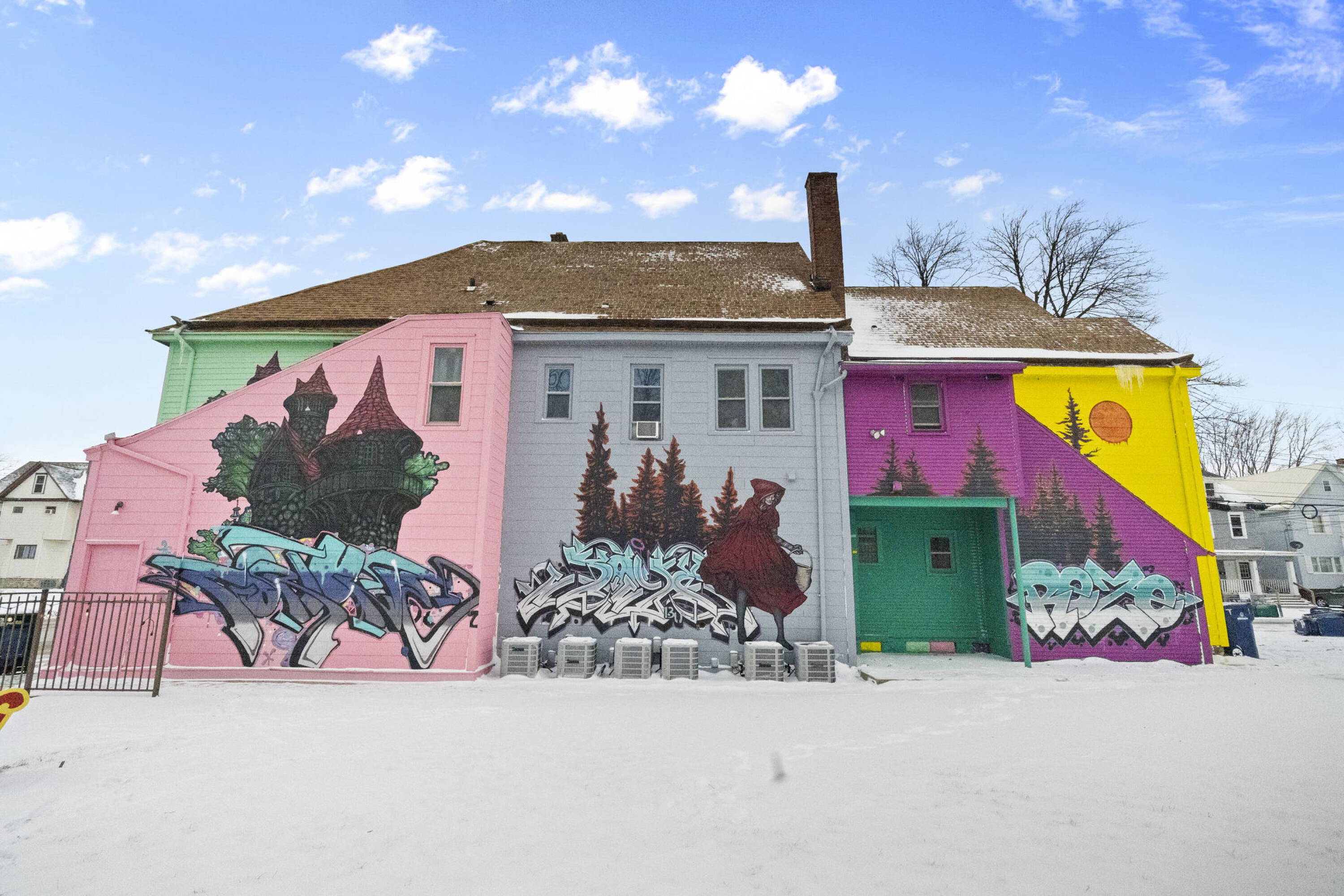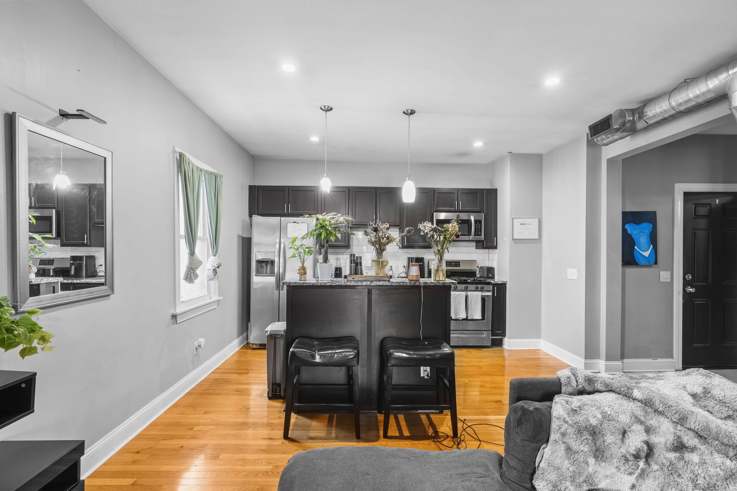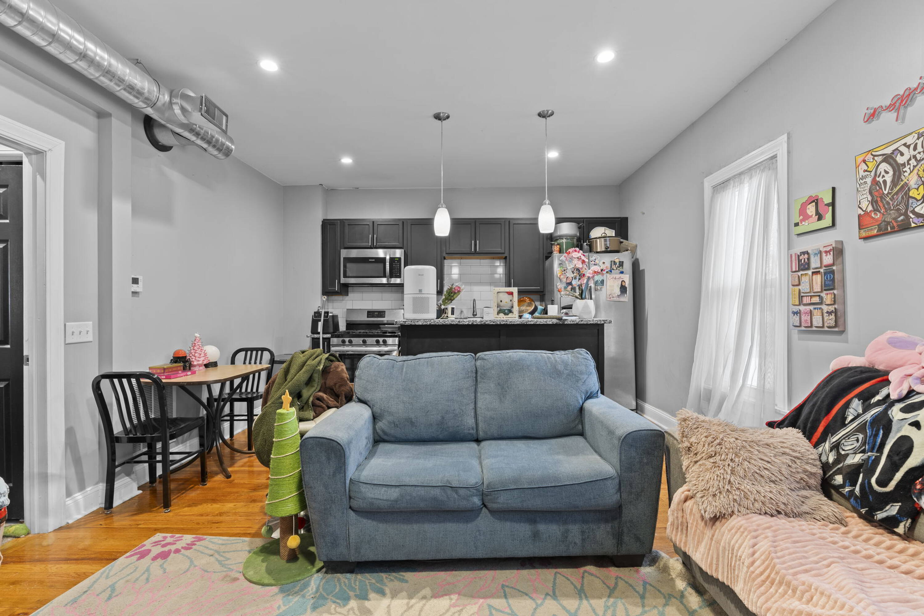 Mixed-use building with storefronts and updated apartments in vibrant district.