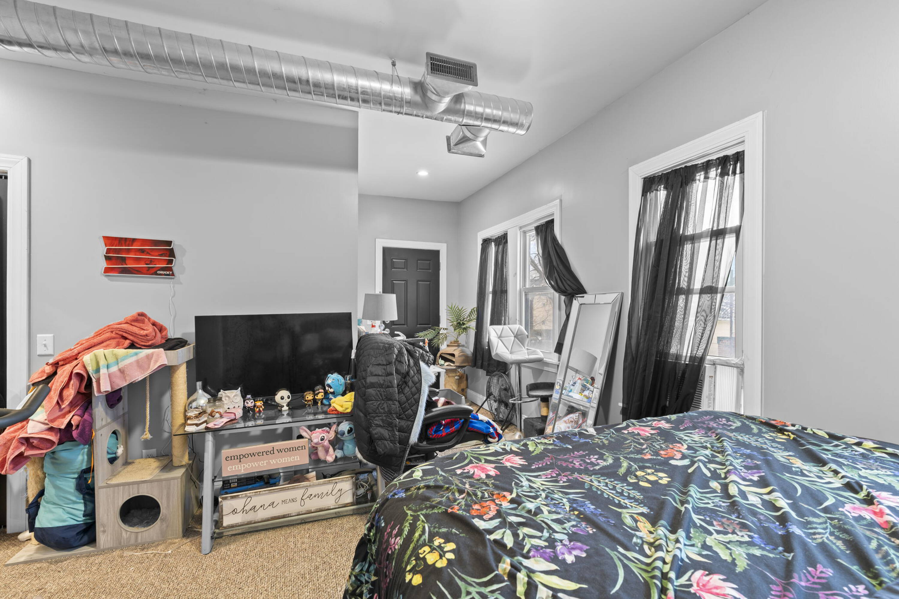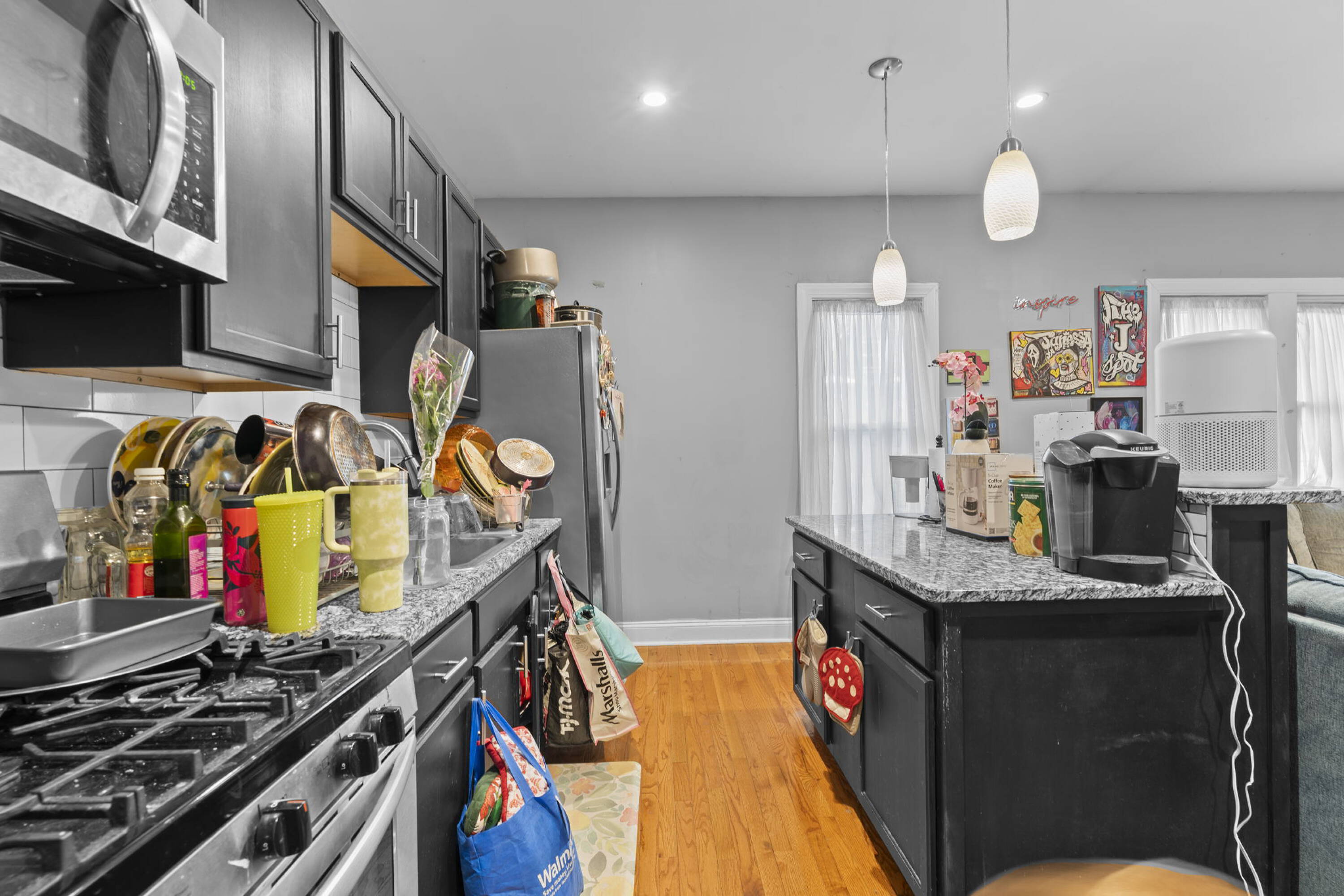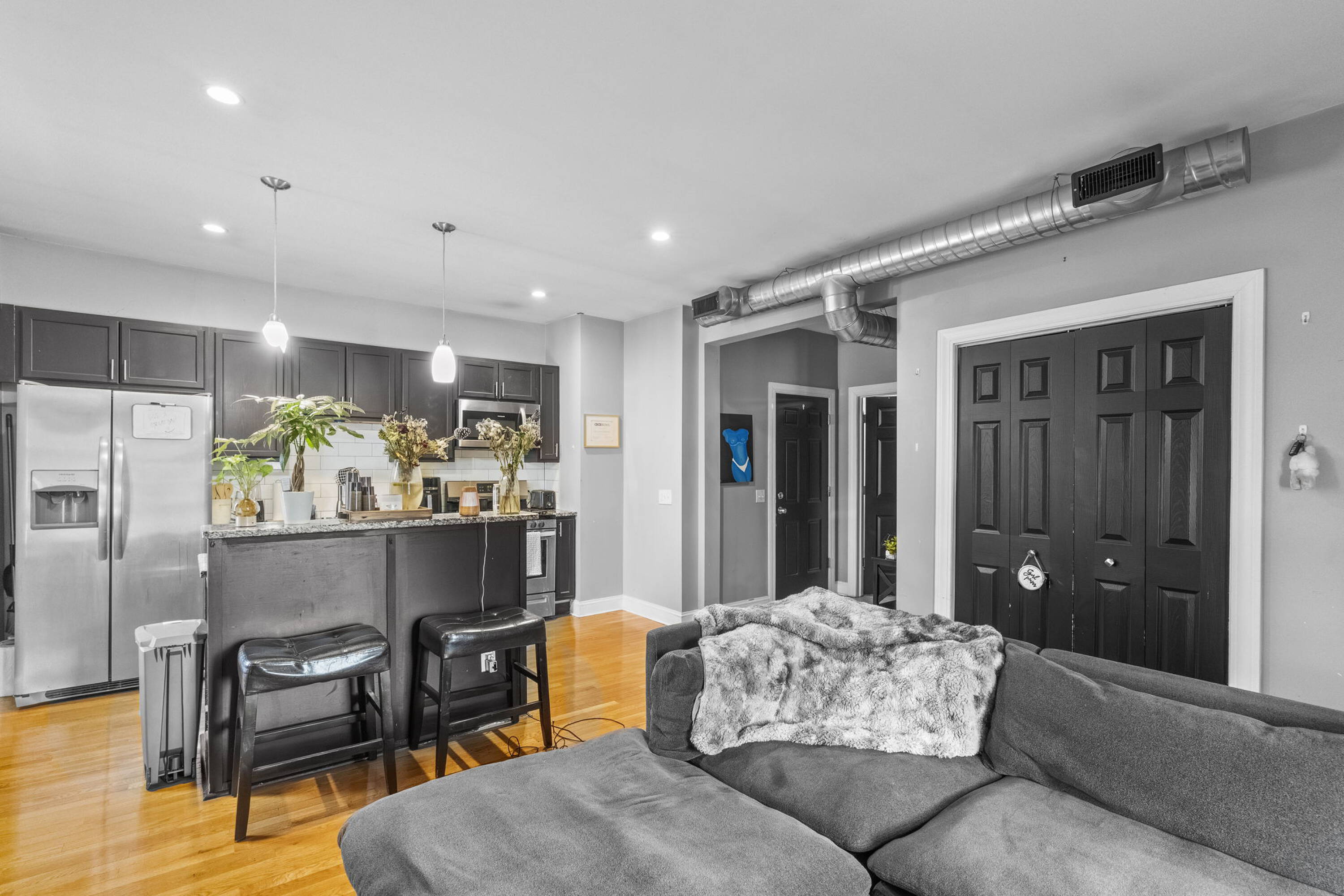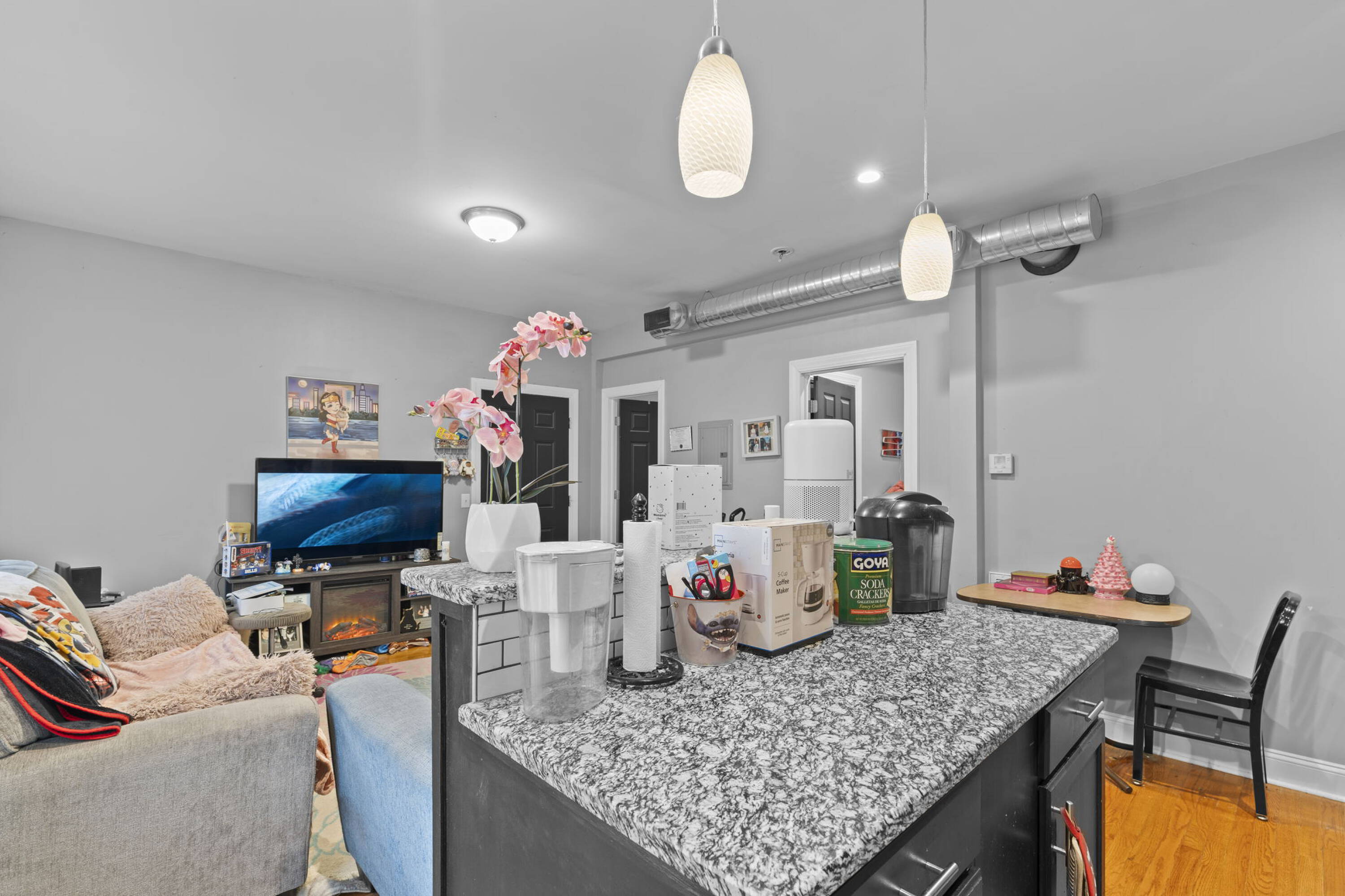 Mixed-use building with storefronts and updated apartments in vibrant district.