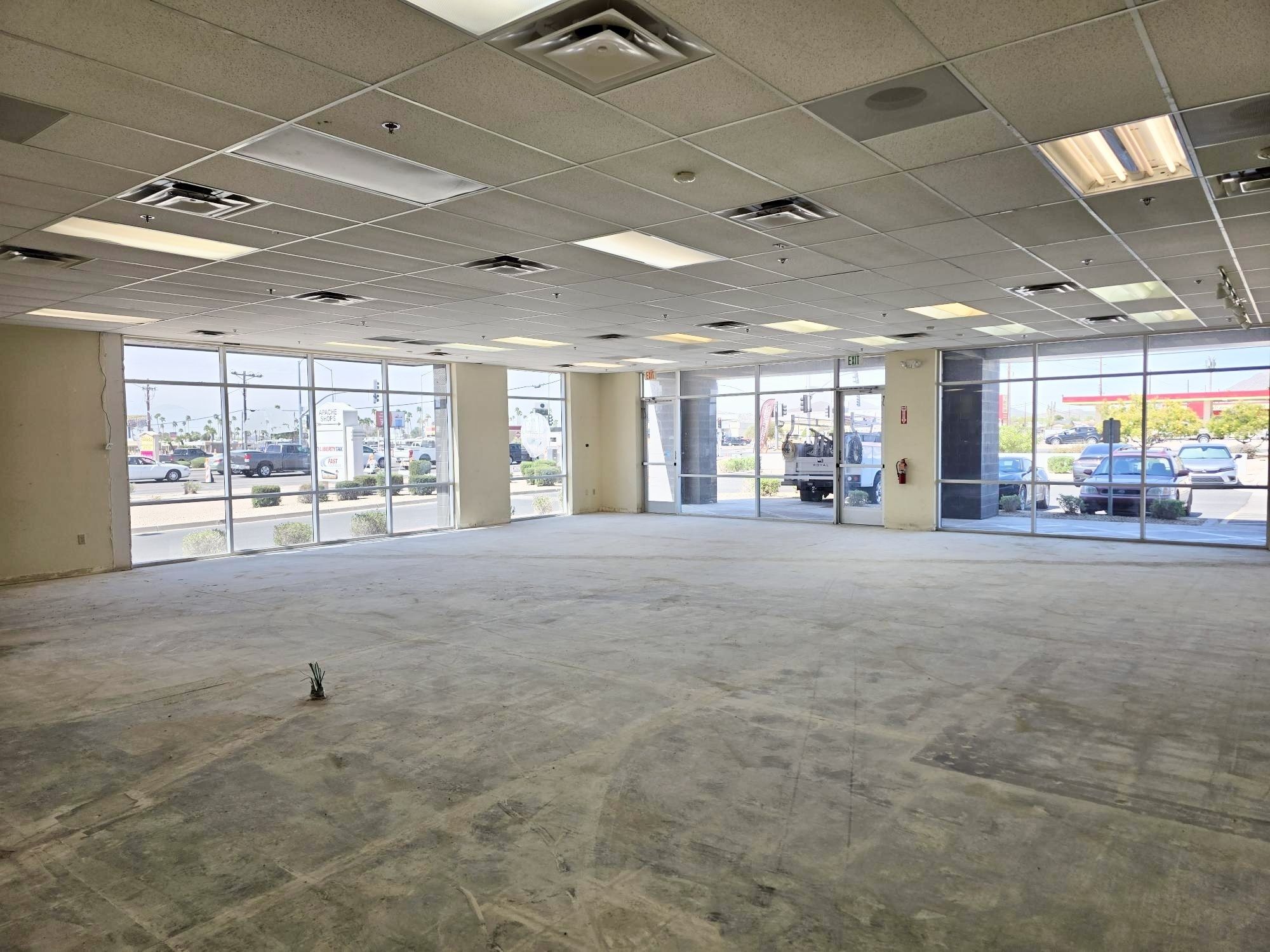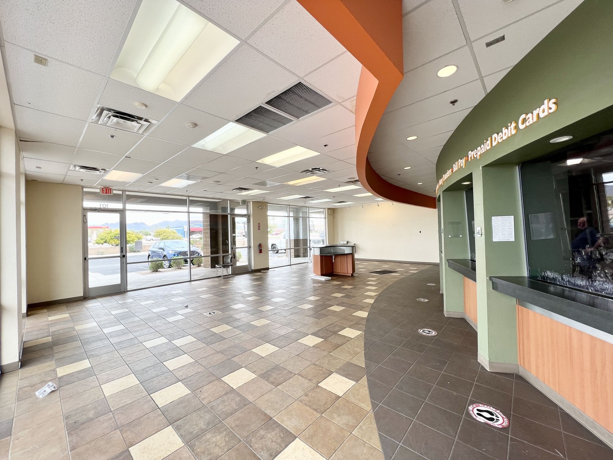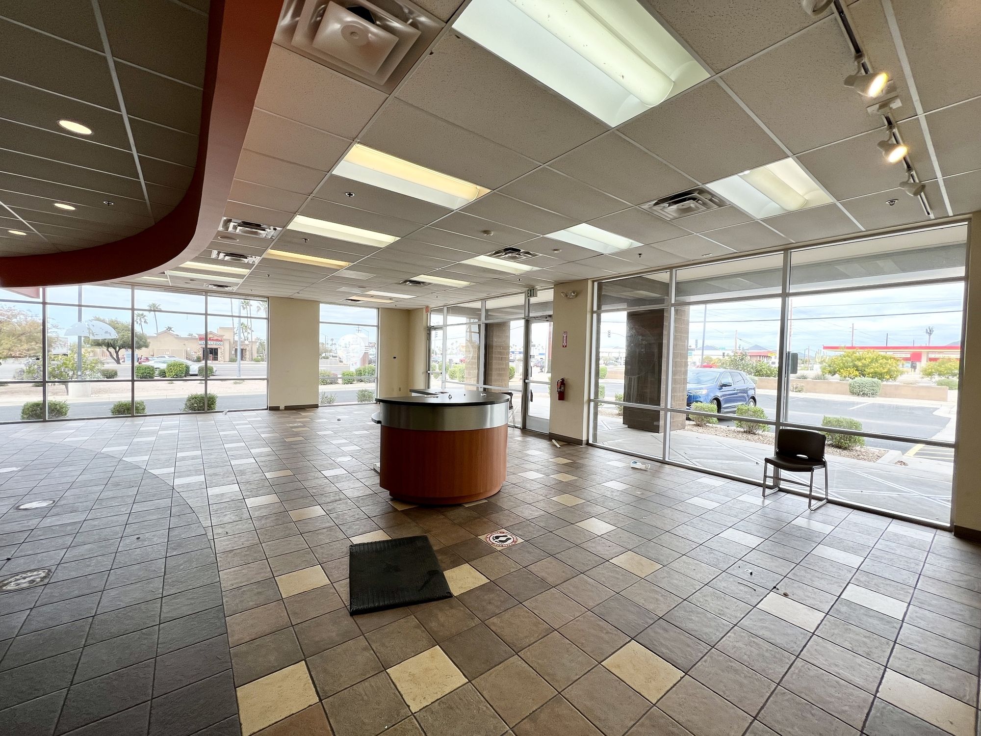 Retail space for lease with drive-thru, monument signage.