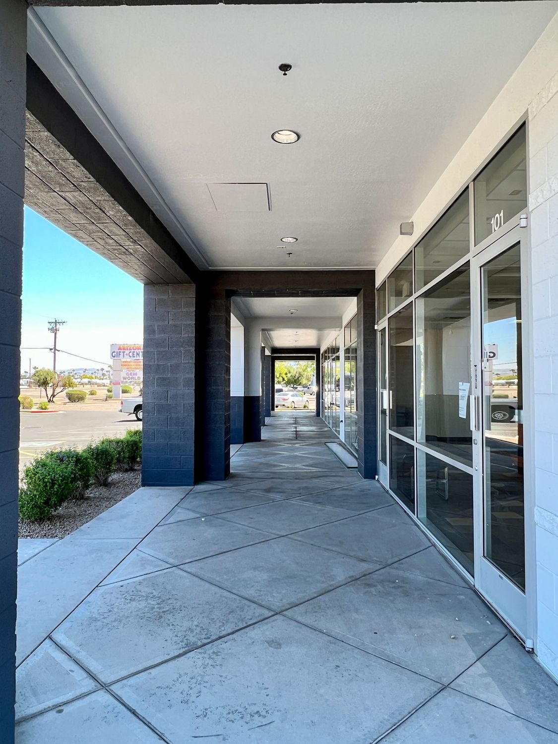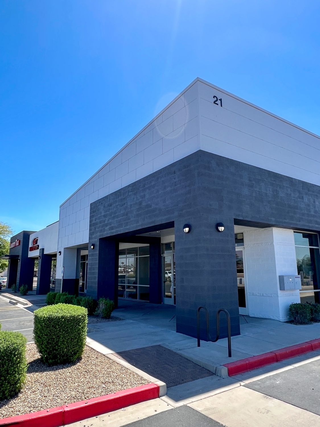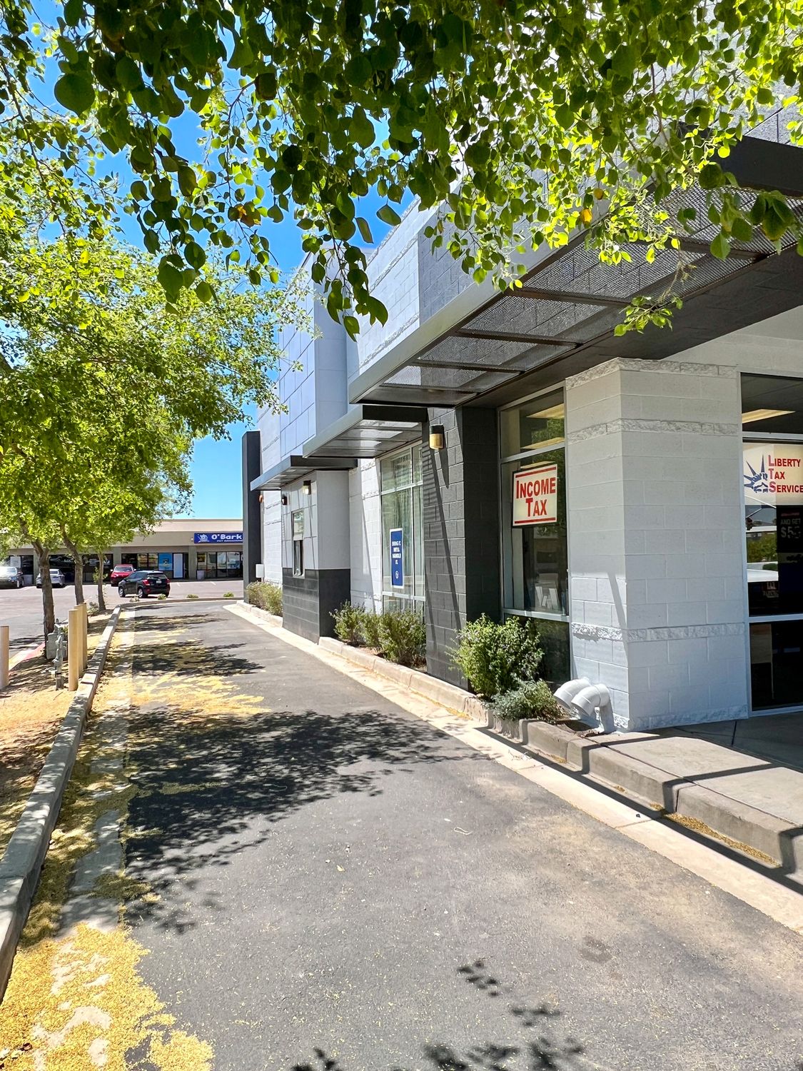 Retail space for lease with drive-thru, monument signage.