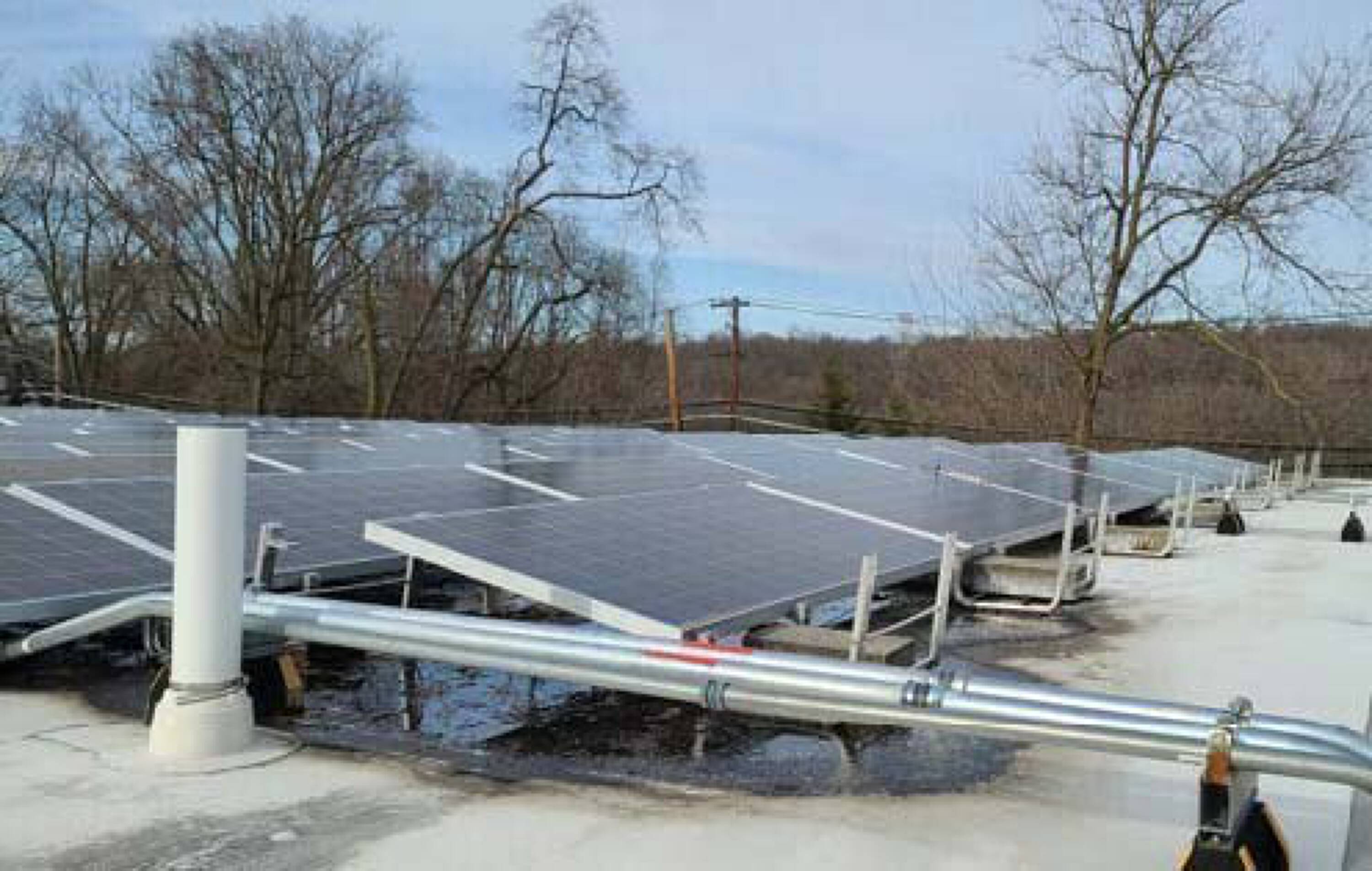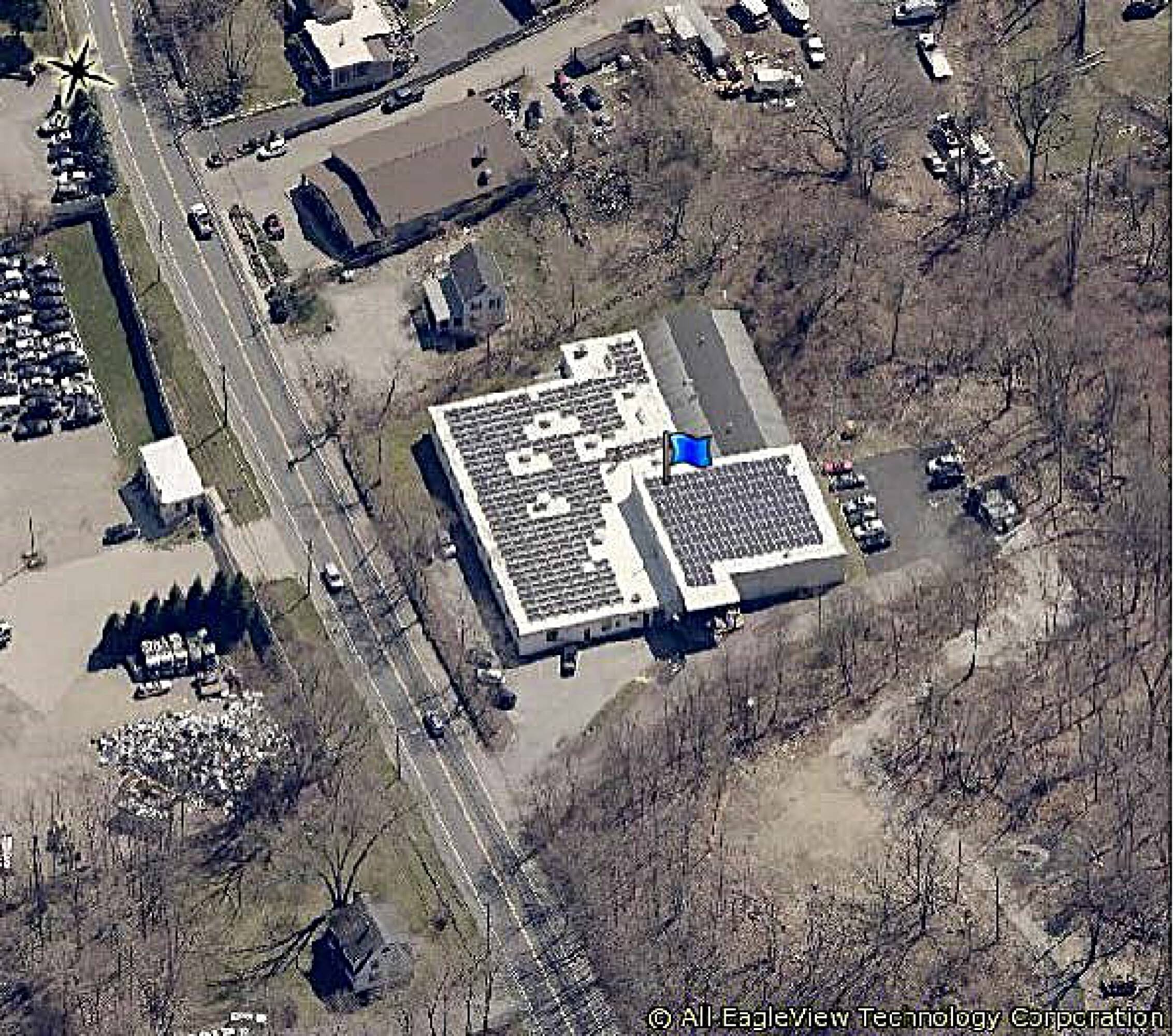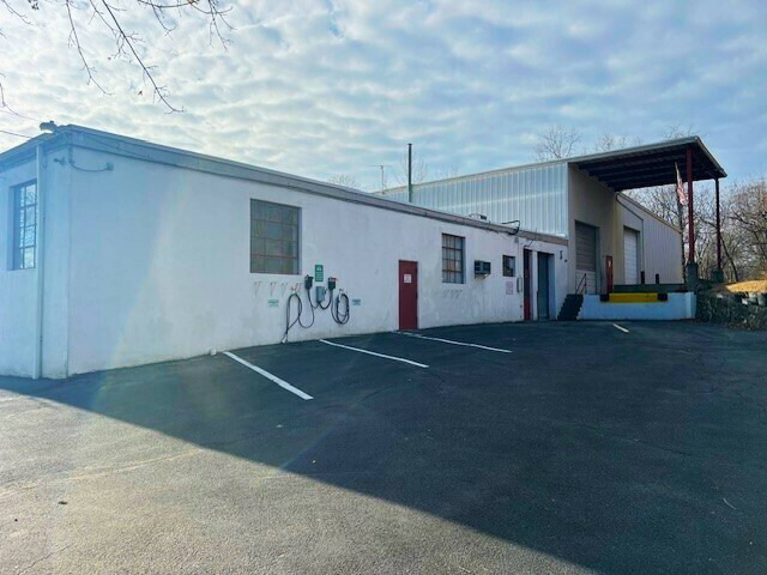 Industrial warehouse with income-producing solar panels for sale.