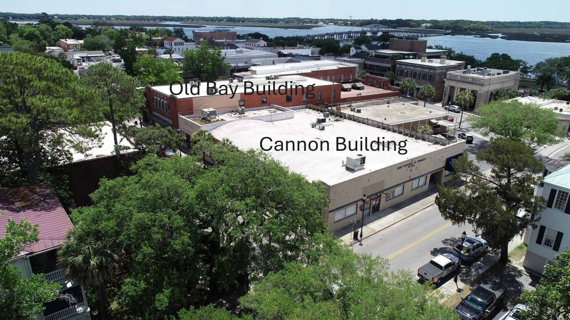 Two adjoining properties with redevelopment potential in historic downtown Beaufort.