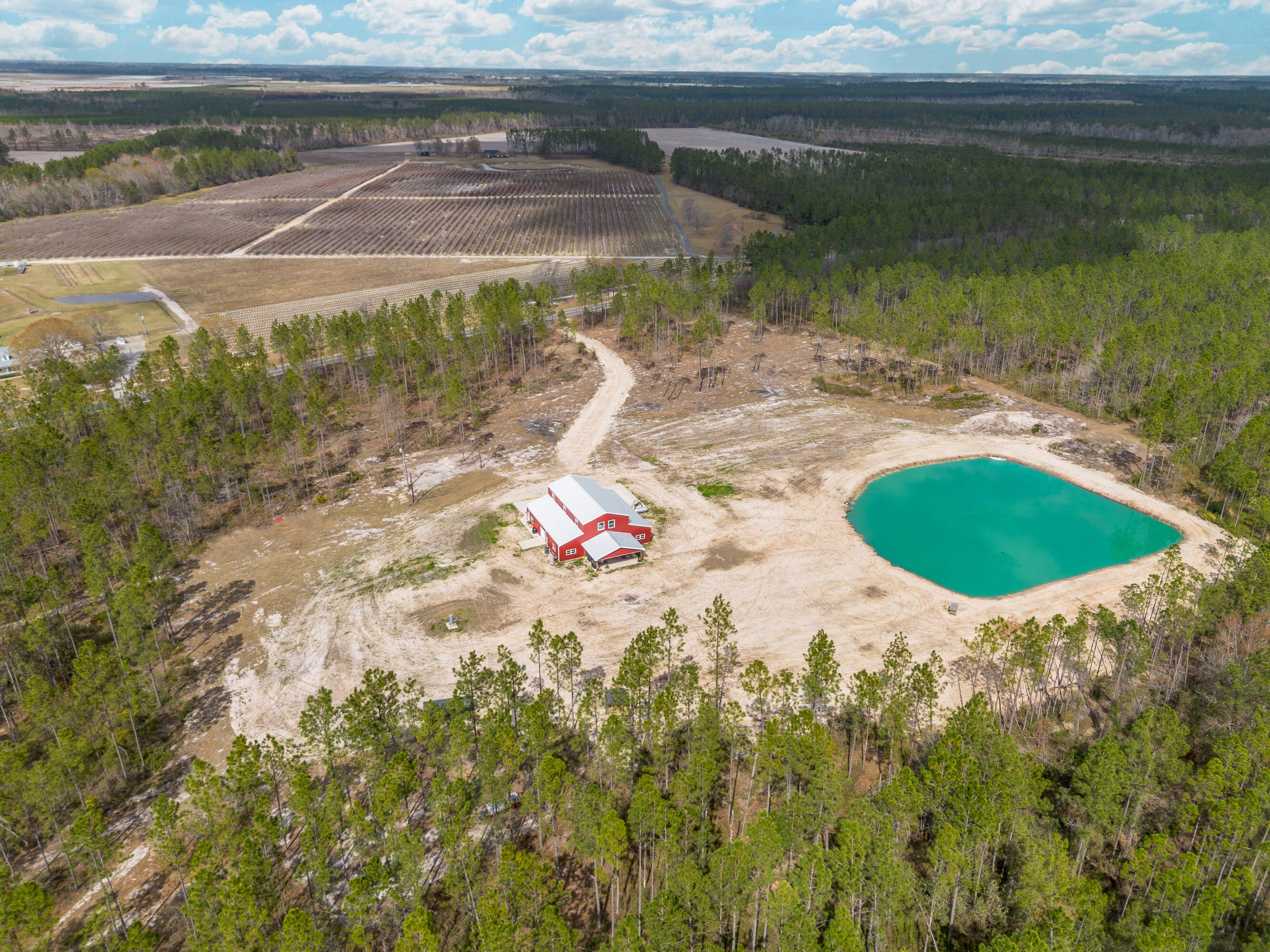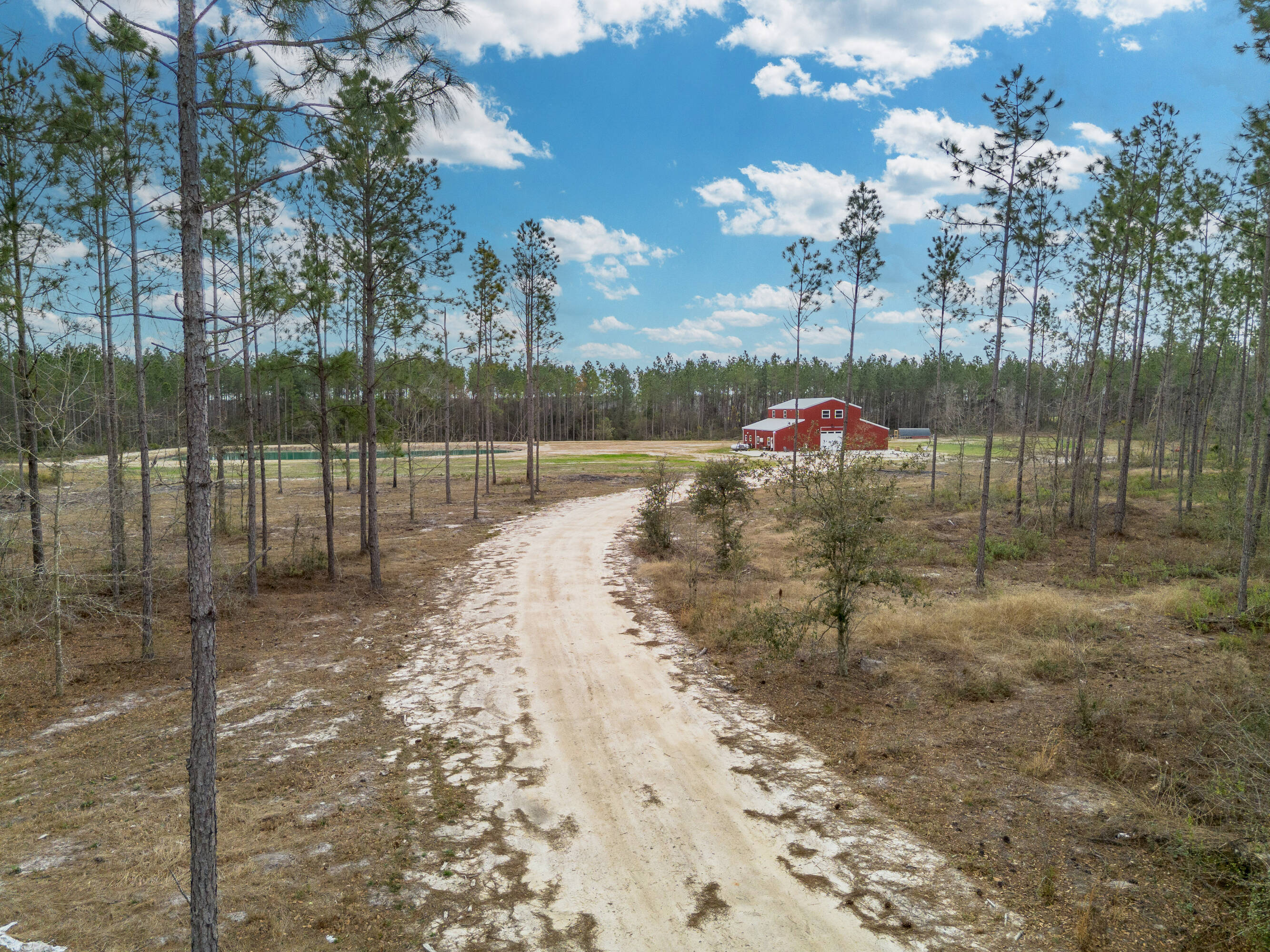 Barndominium on 65 acres with shop, pond, and trails.