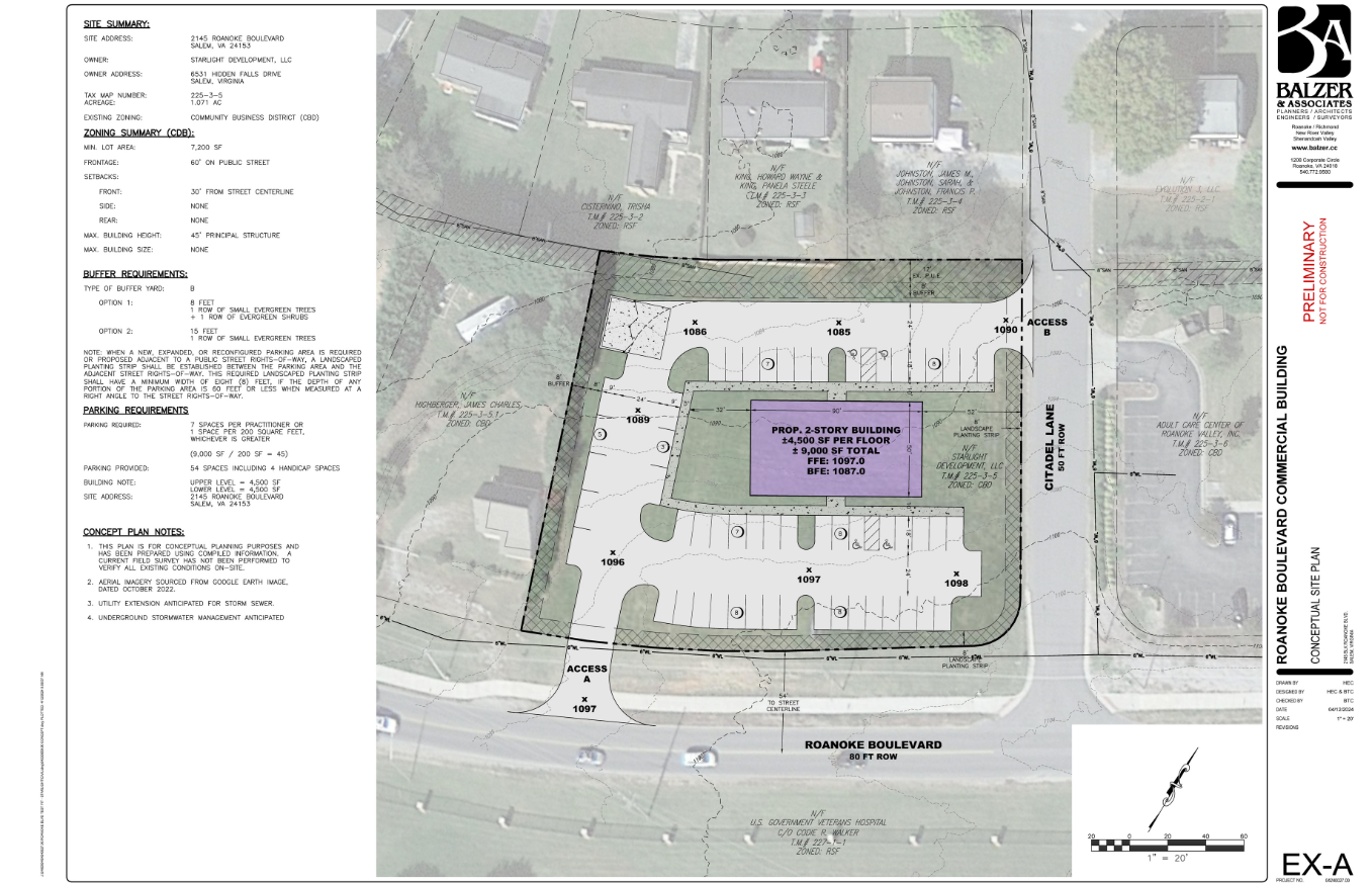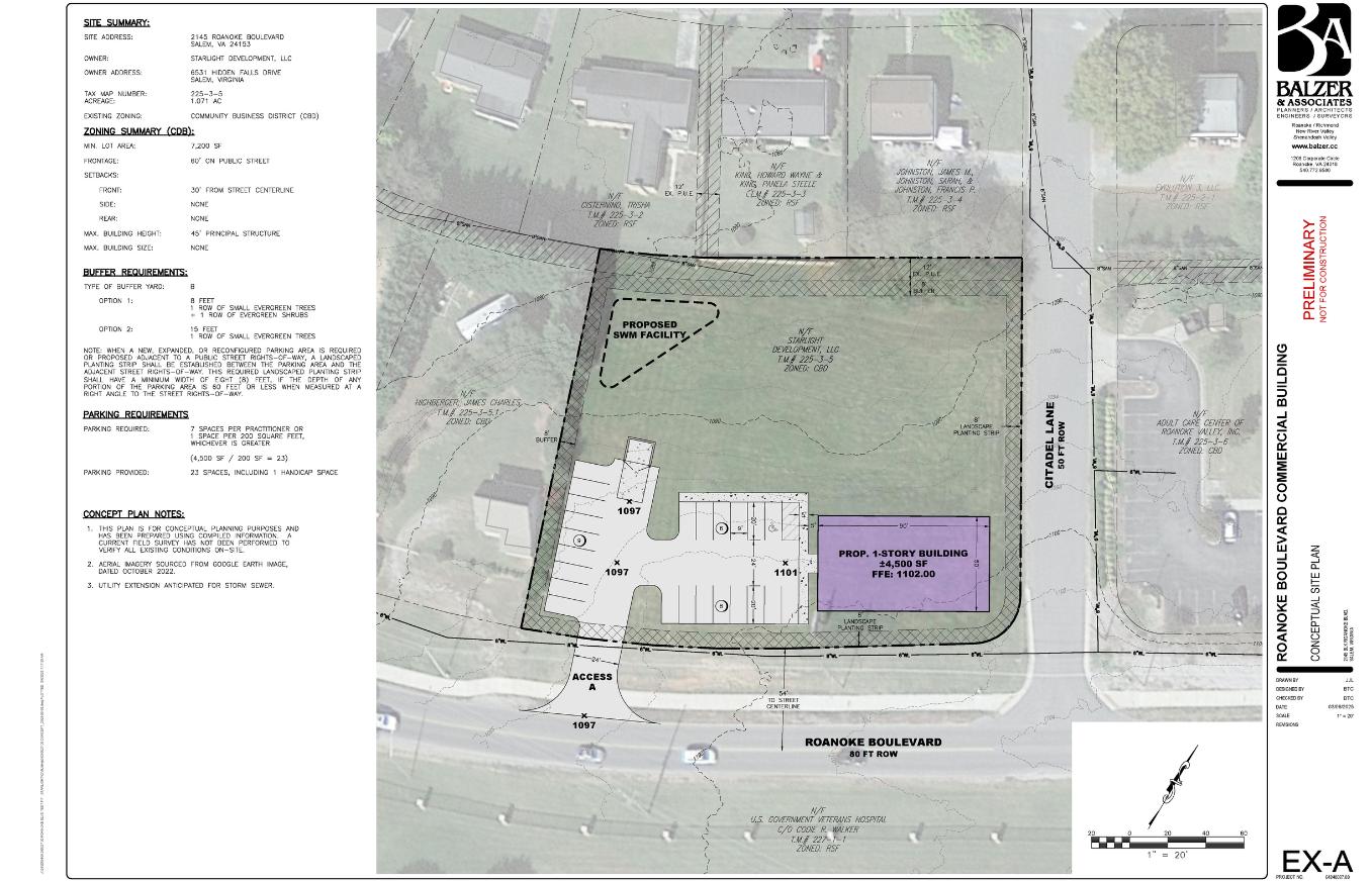 Prime commercial corner lot across from Salem VA Medical Center.
