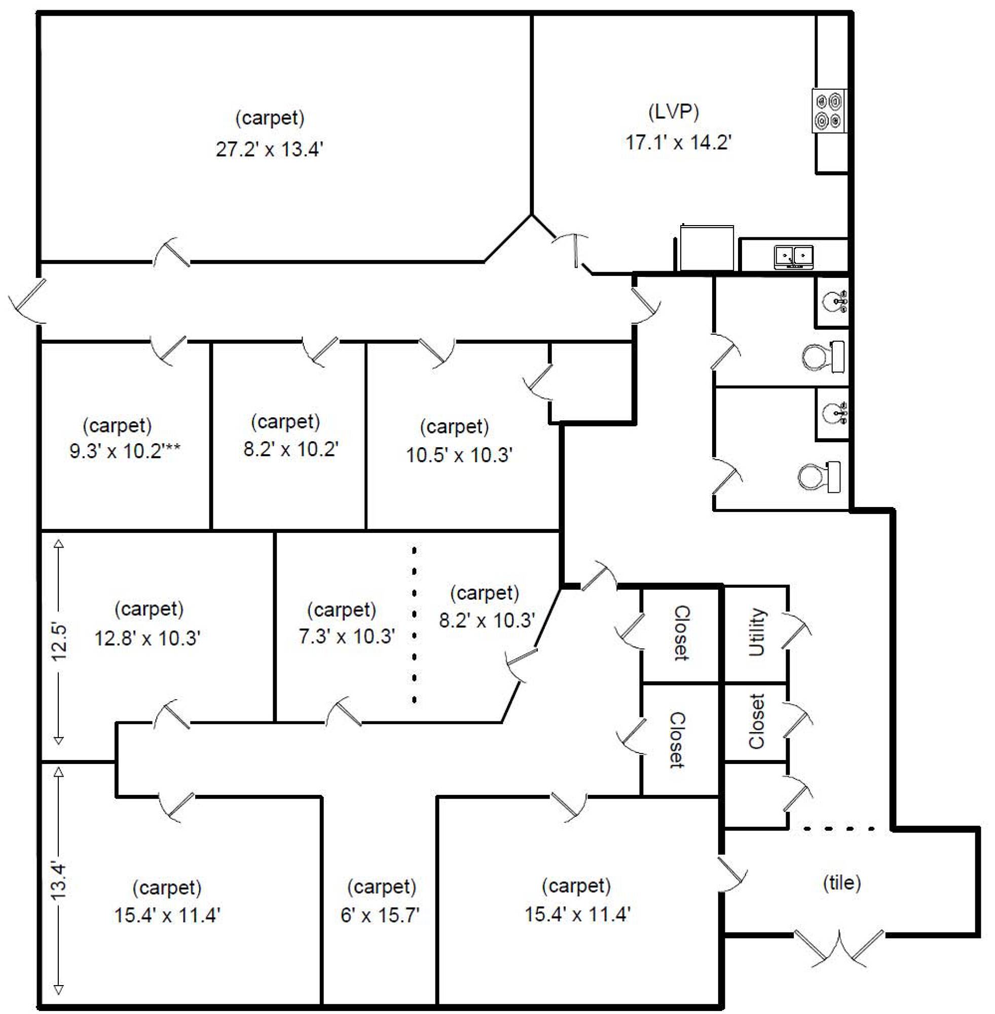 - 1,076 SF